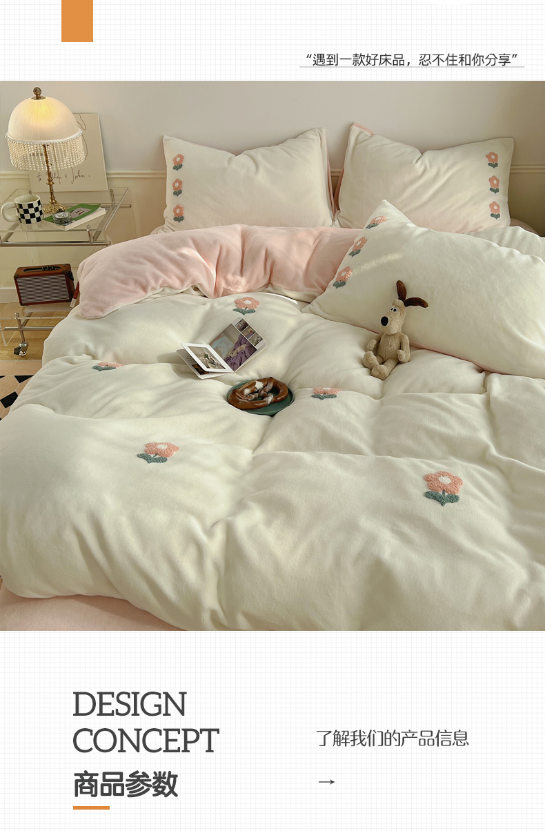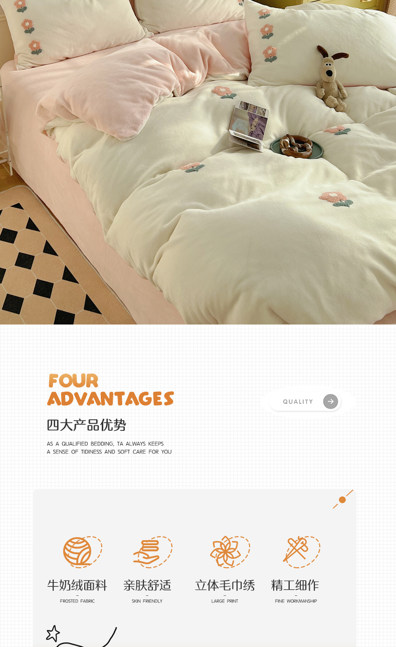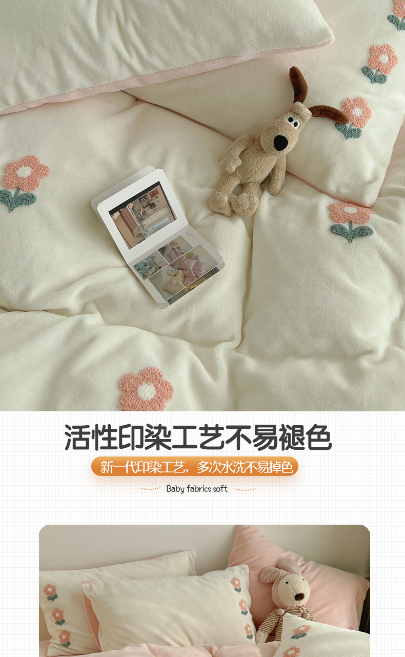 (总)三朵家纺 2025新款3D立体加厚雕花绒牛奶绒花边款四件套,花边宽条-灰色,花边宽条-蓝色,花边宽条-玉色,花边宽条-紫