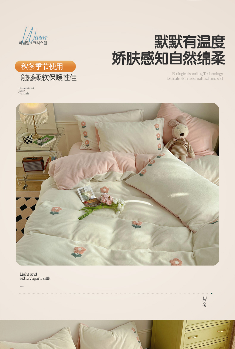 (总)三朵家纺 2024新款3D立体浮雕花边保暖加厚四件套,馥郁芳芬,花园小径粉,花园小径黄,绿野仙踪,暖暖花语