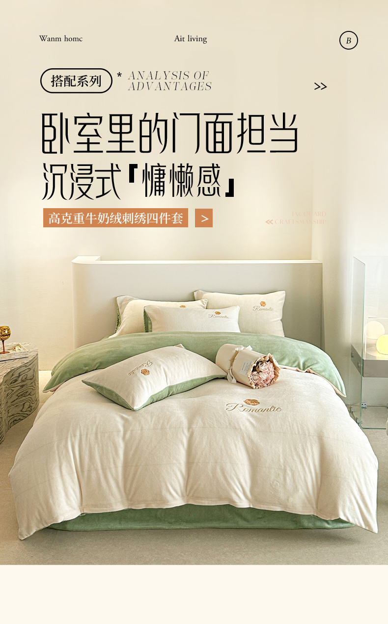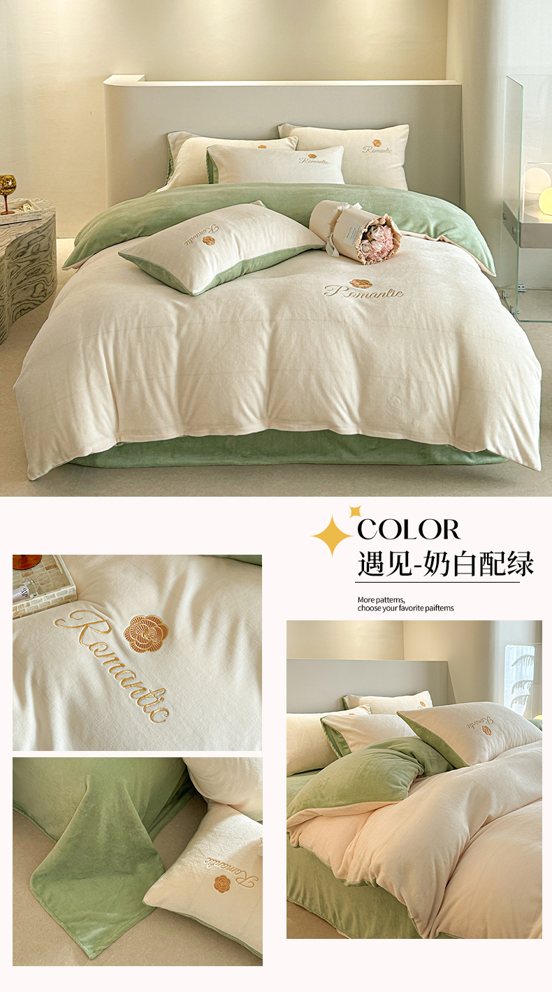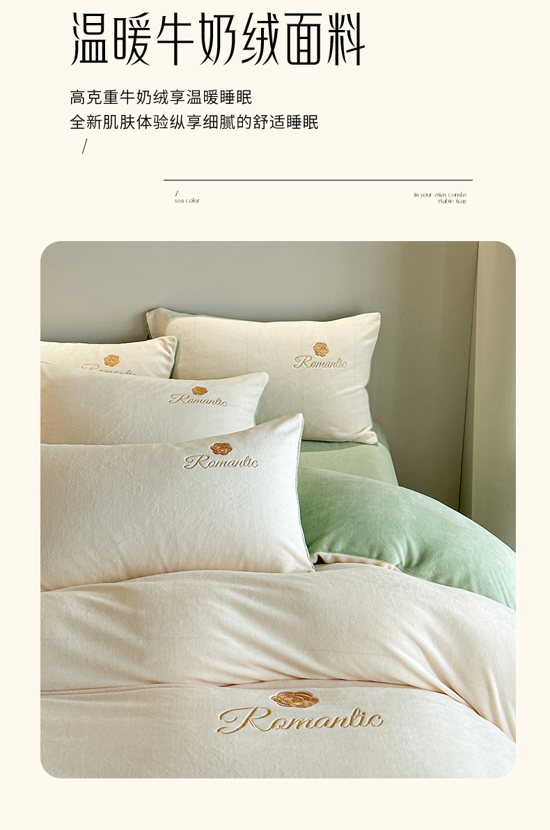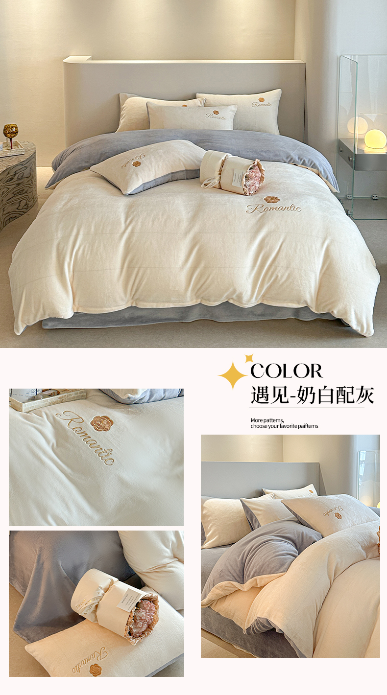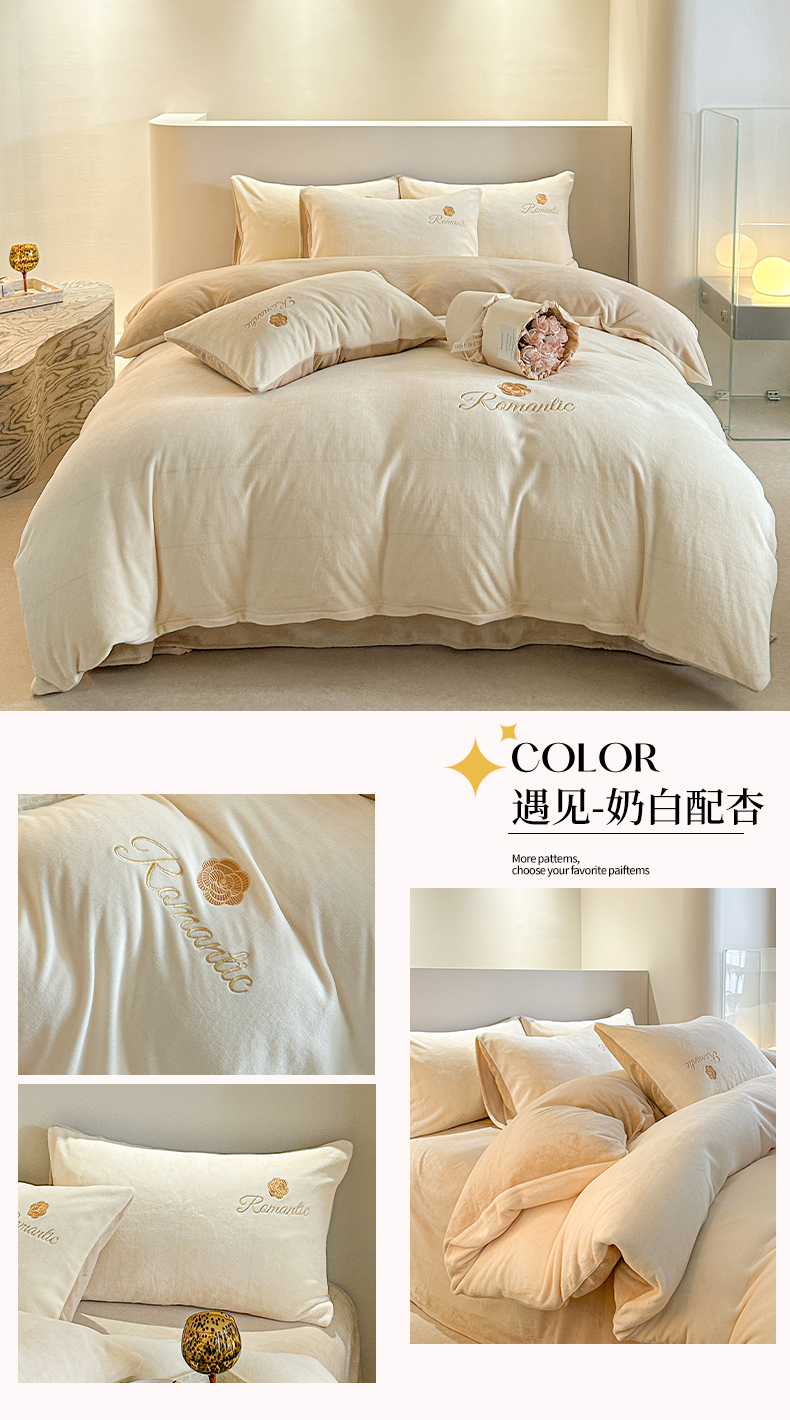 商品名称:(总)木堇家居 2023新款高克重刺绣牛奶绒四件套-遇见