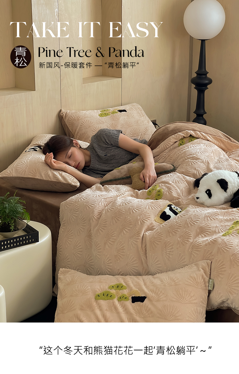 当前位置: 91家纺网 > 商品网购 > 床品套件 > 四件套 > 牛奶绒四件套 > 安莱生活 2023新款雕花绒牛奶绒毛巾绣青松躺平四件套 放青松-棕松