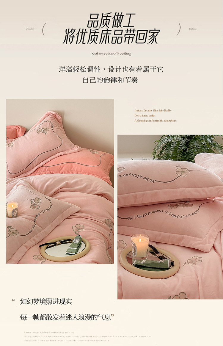 商品名称:名品优仓 2023新款高克重230克牛奶绒绣花款四件套-小时光 小时光-粉玉