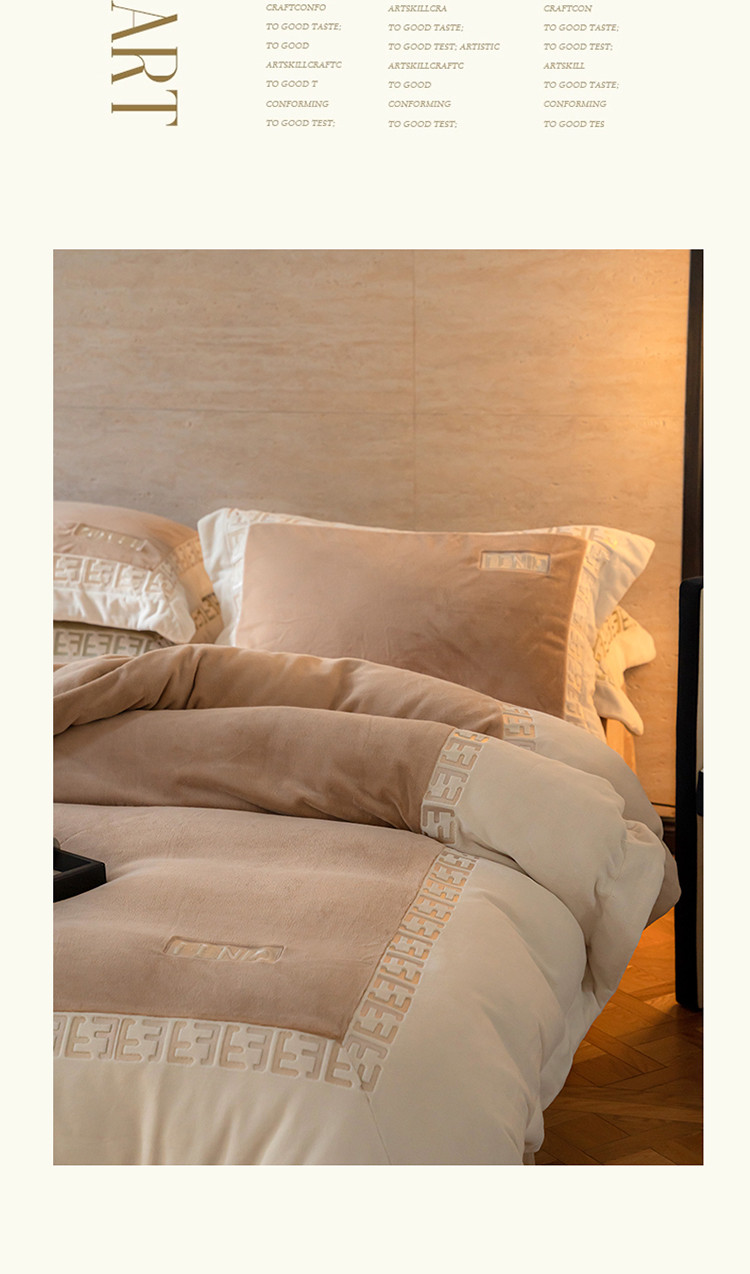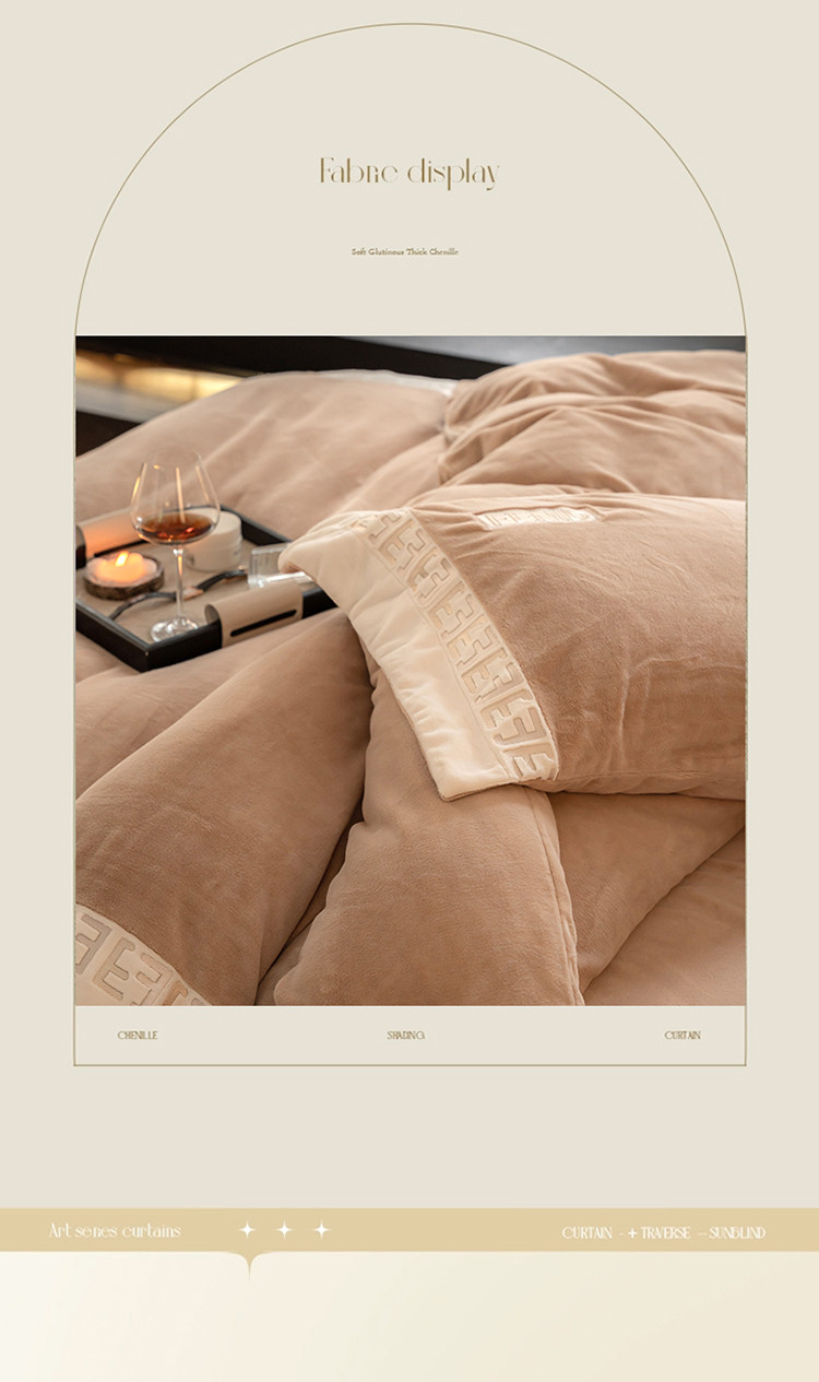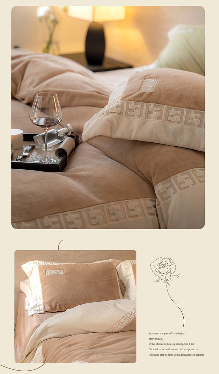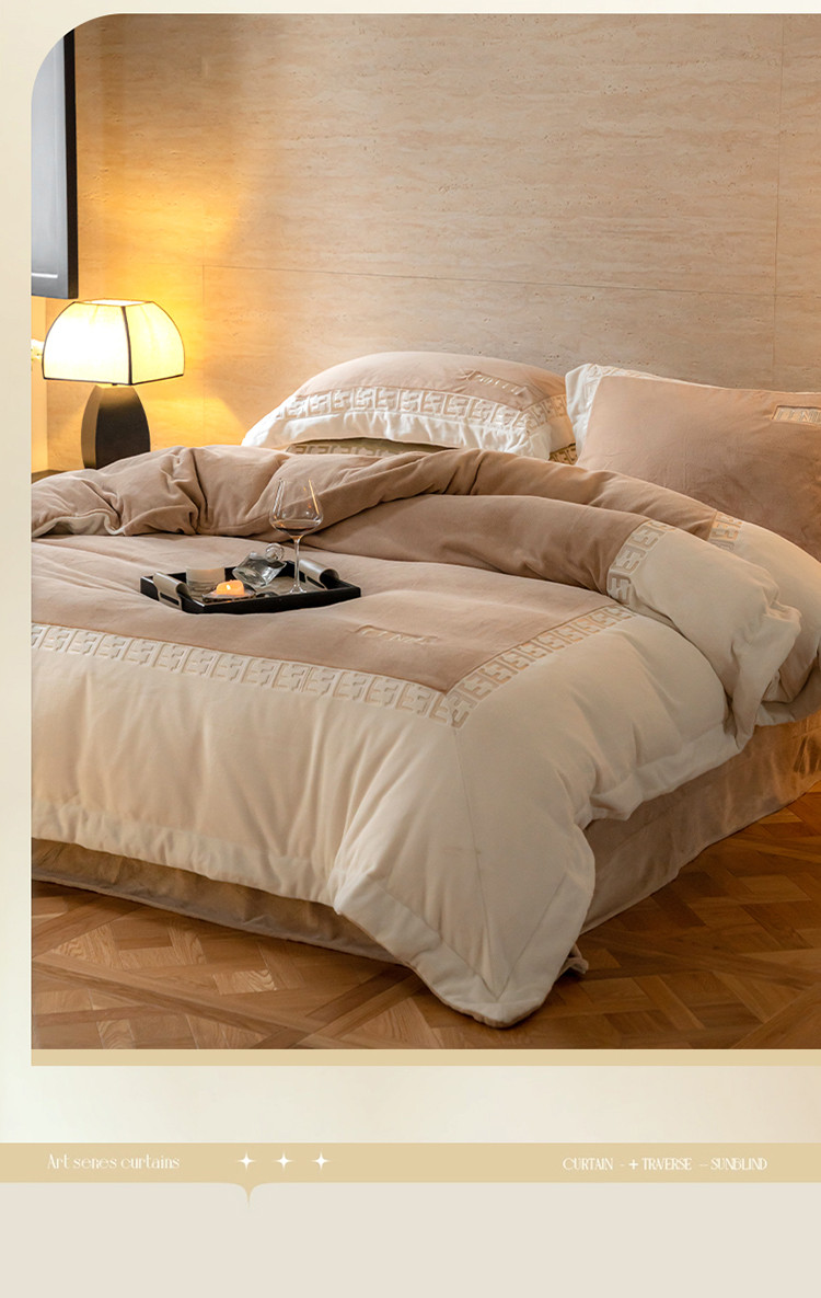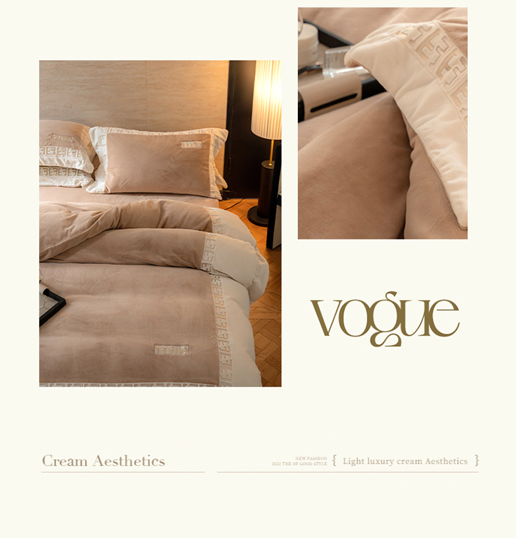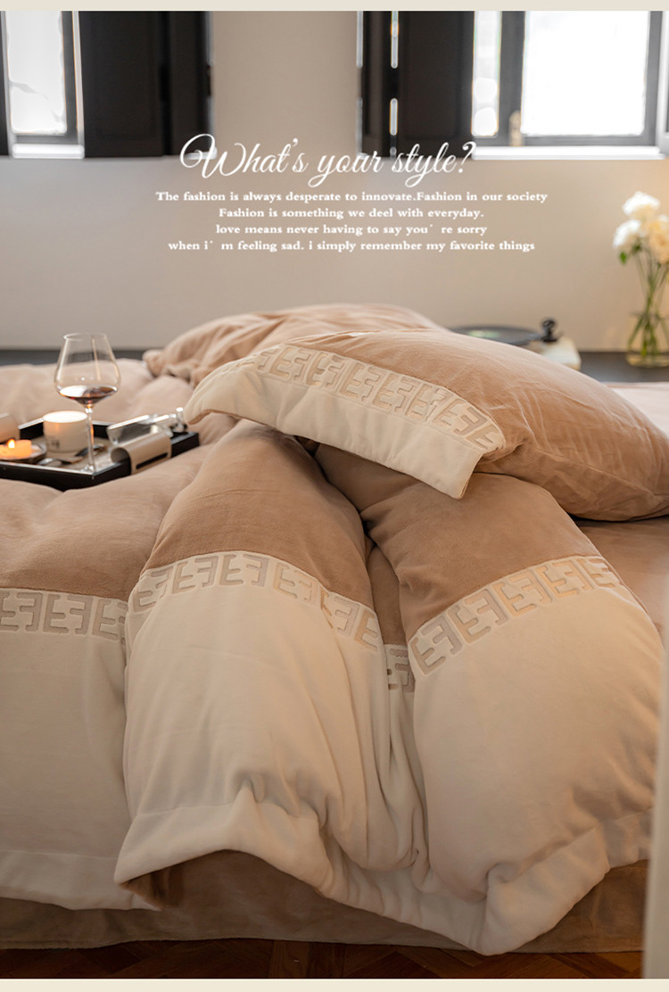 名品优仓 2023新款高克重230克牛奶绒绣花款四件套-玛丽 玛丽-星奶油驼