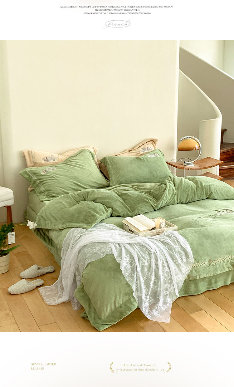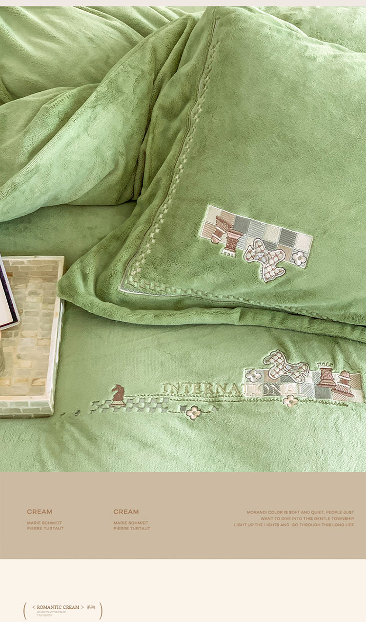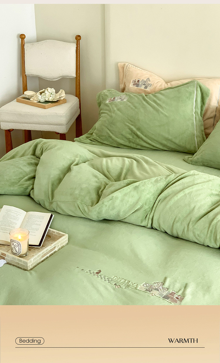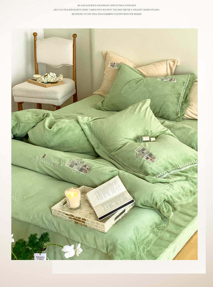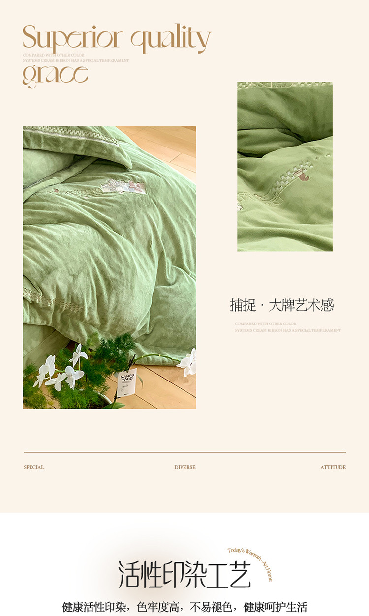 名品优仓 2023新款高克重230克牛奶绒绣花款四件套-极简 极简-月白绿