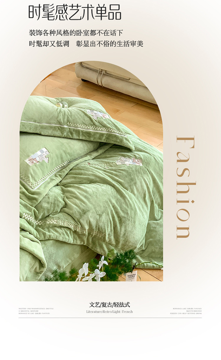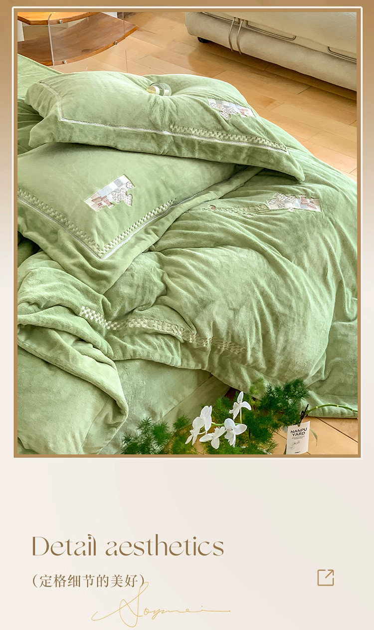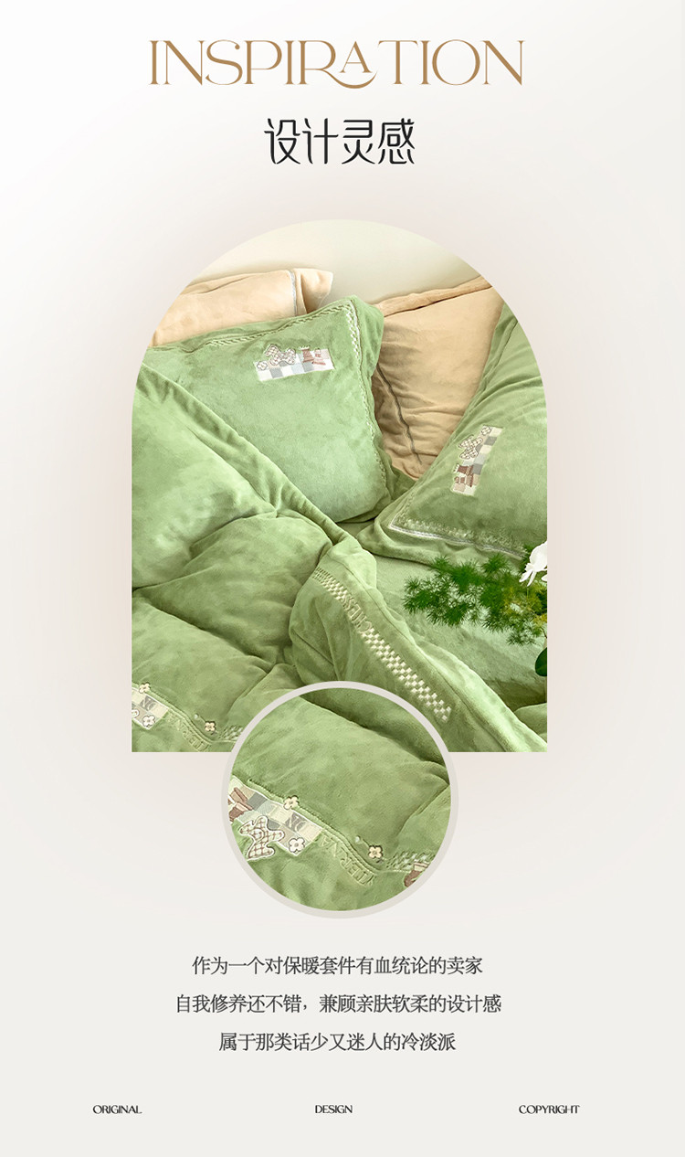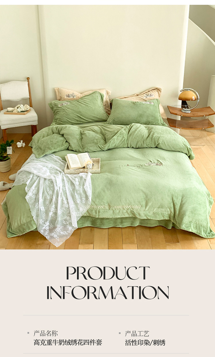商品名称:名品优仓 2023新款高克重230克牛奶绒绣花款四件套-极简 极简-月白绿