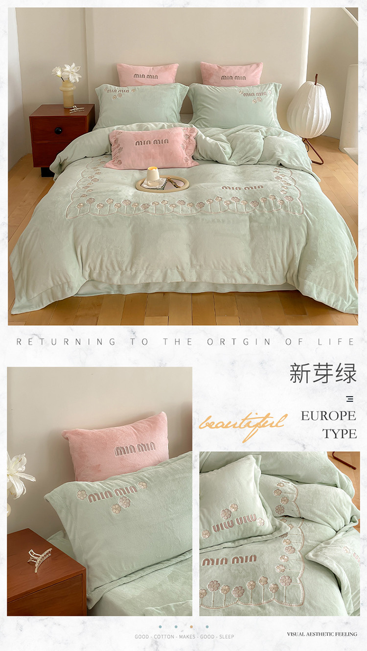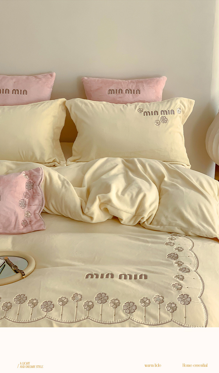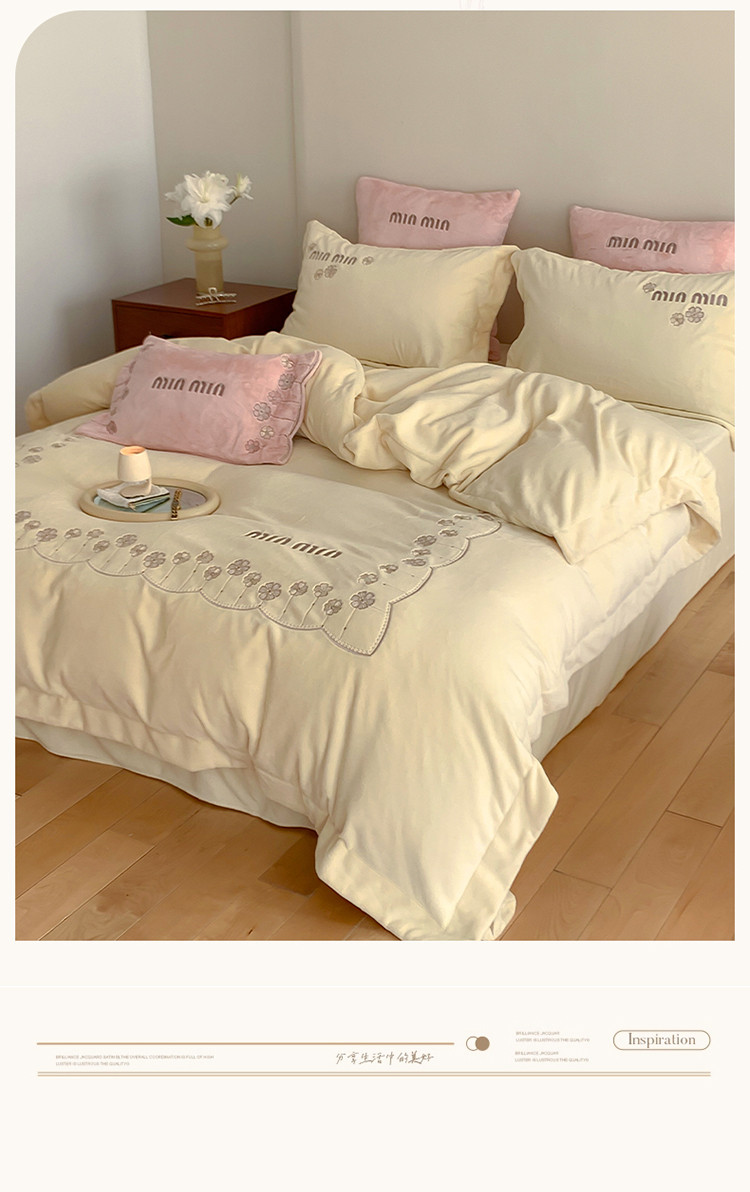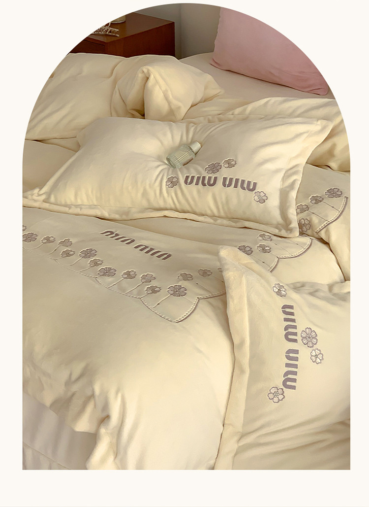 (总)名品优仓 高克重230克牛奶绒绣花款四件套系列-林娜伊尔