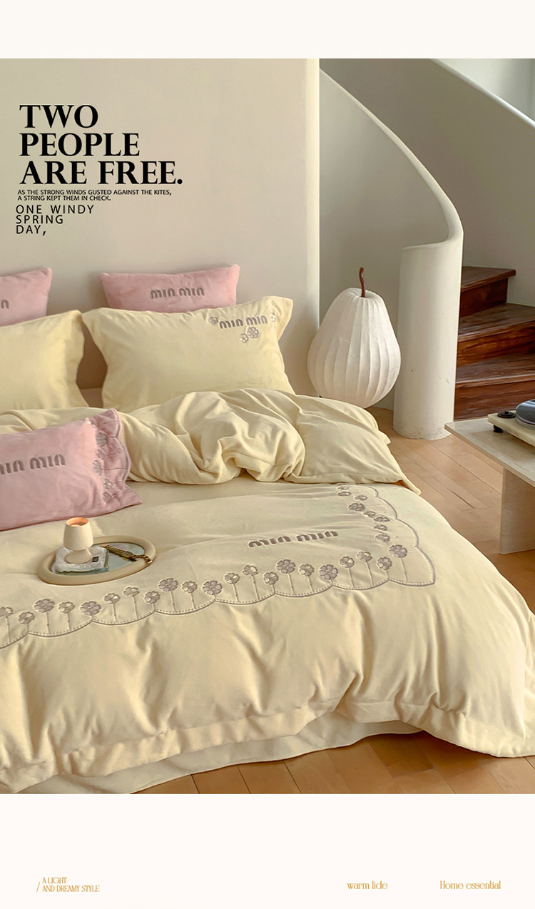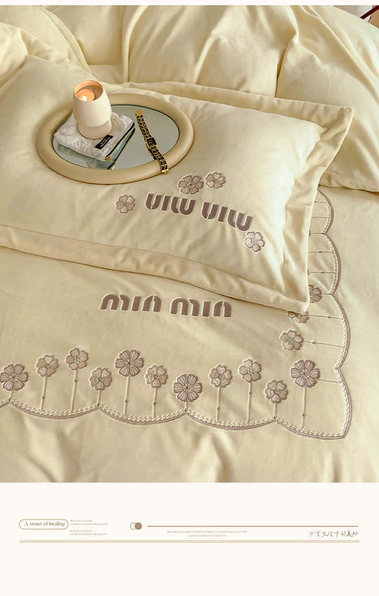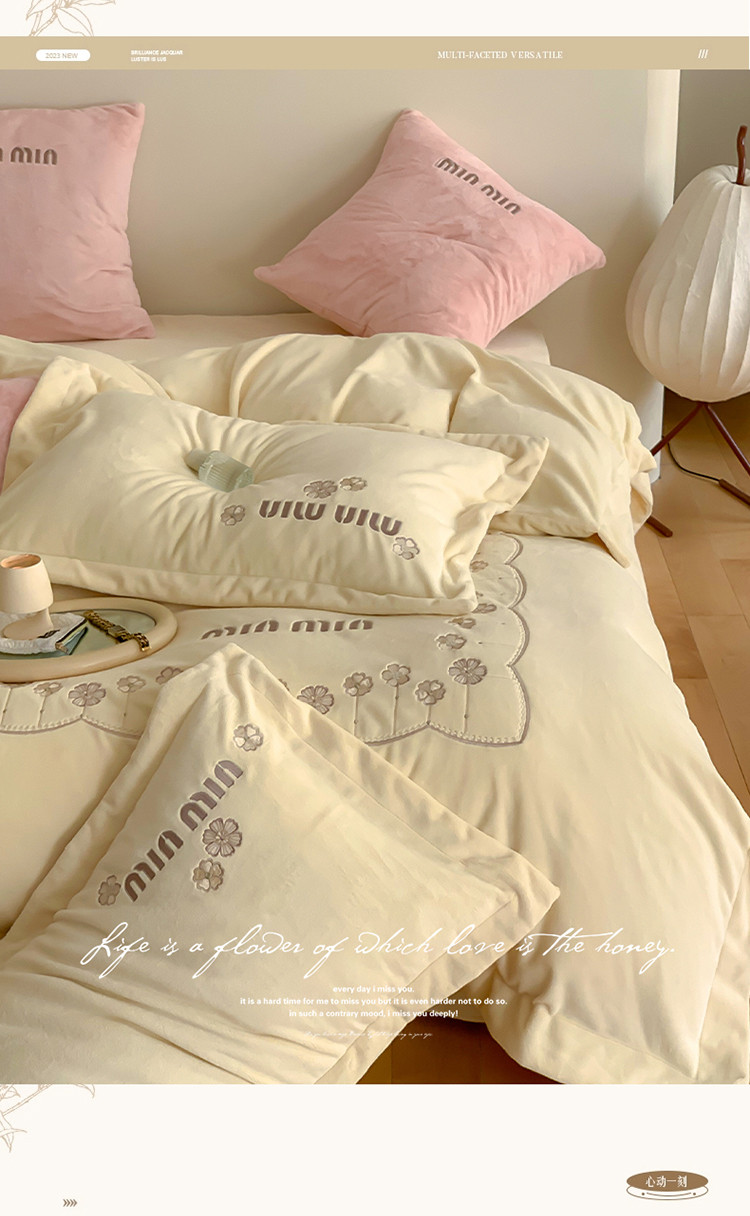 (总)名品优仓 高克重230克牛奶绒绣花款四件套系列-林娜伊尔