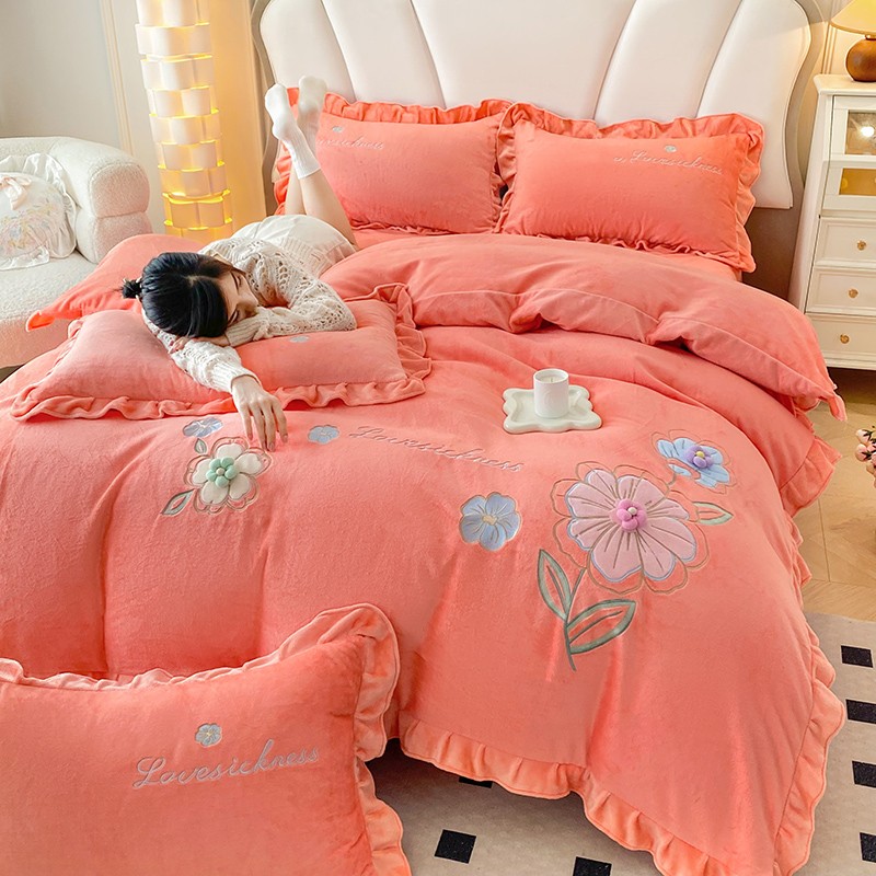(总)漫布云2025秋冬新款全消光大版花卉平绣牛奶绒刺绣款四件套--绽放系列,绽放-艾玛橙, 绽放-豆沙红 ,绽放-樱花粉, 绽放-婴儿蓝 ,绽放-高级灰,绽放-梦幻紫