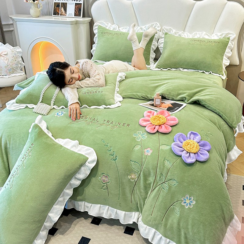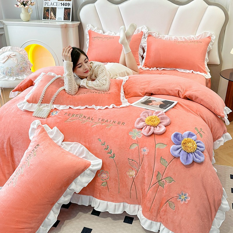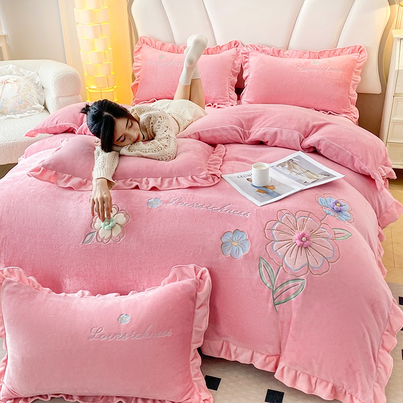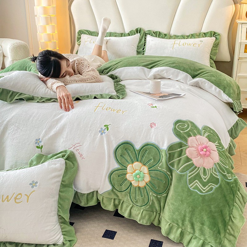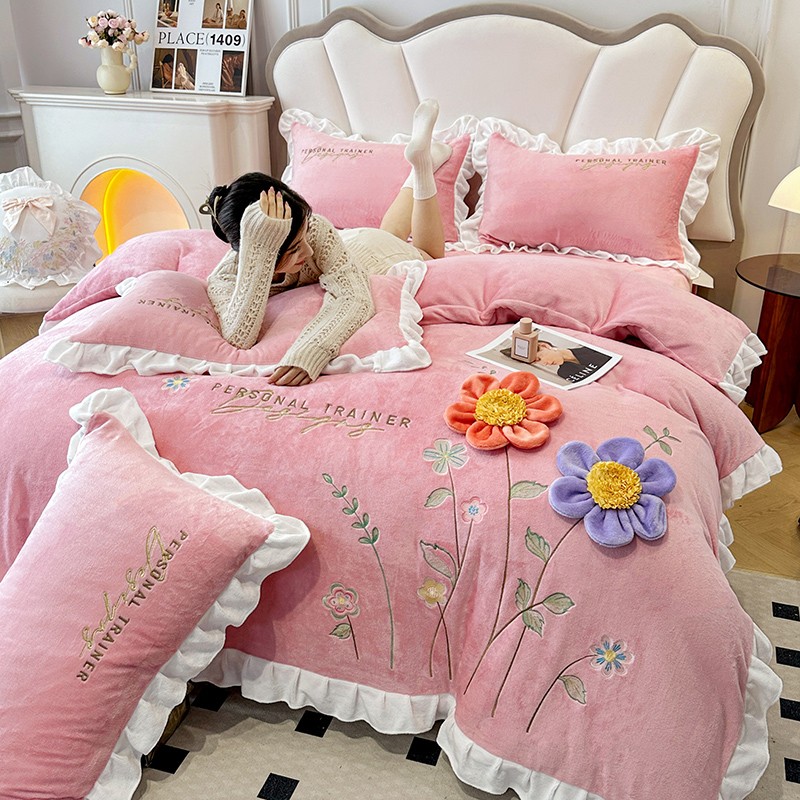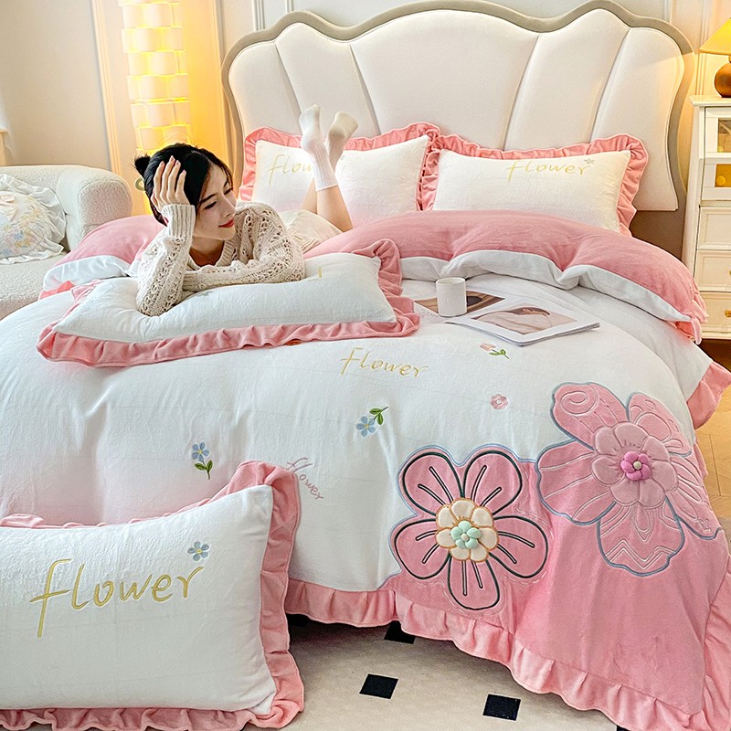 漫布云9斤230g全消光婴儿绒被套兔毛绒牛奶绒贴布绣刺绣花四件套小清新