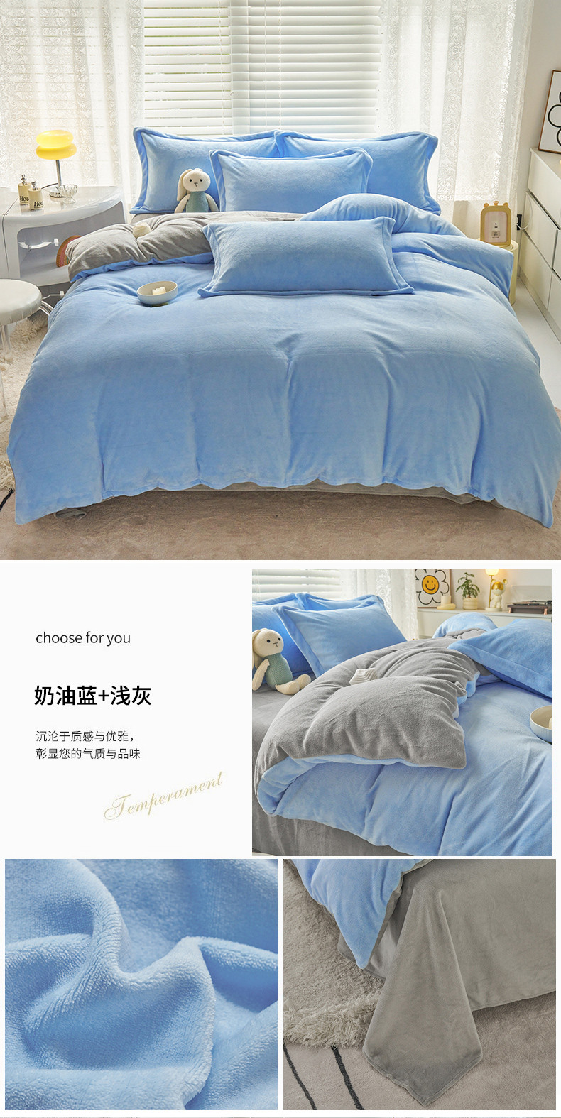 商品名称:慕晨 2023新款纯色牛奶绒双拼四件套 奶油蓝+浅灰