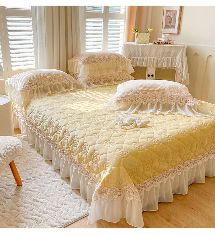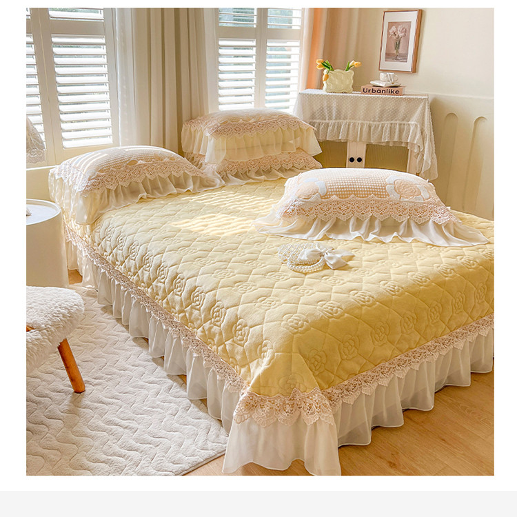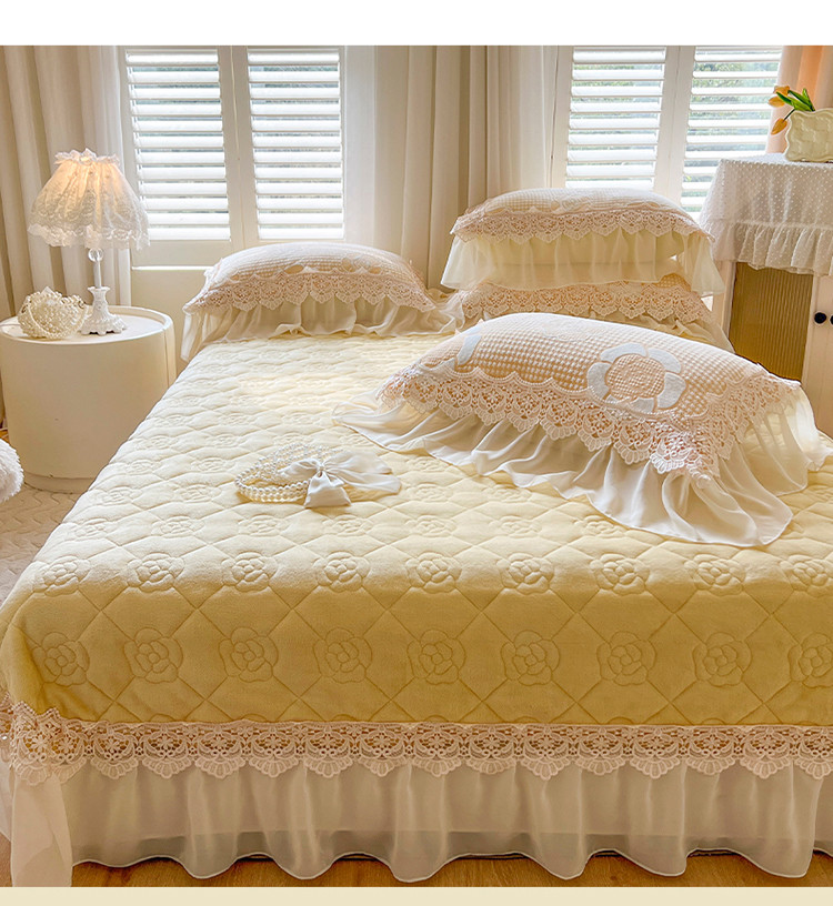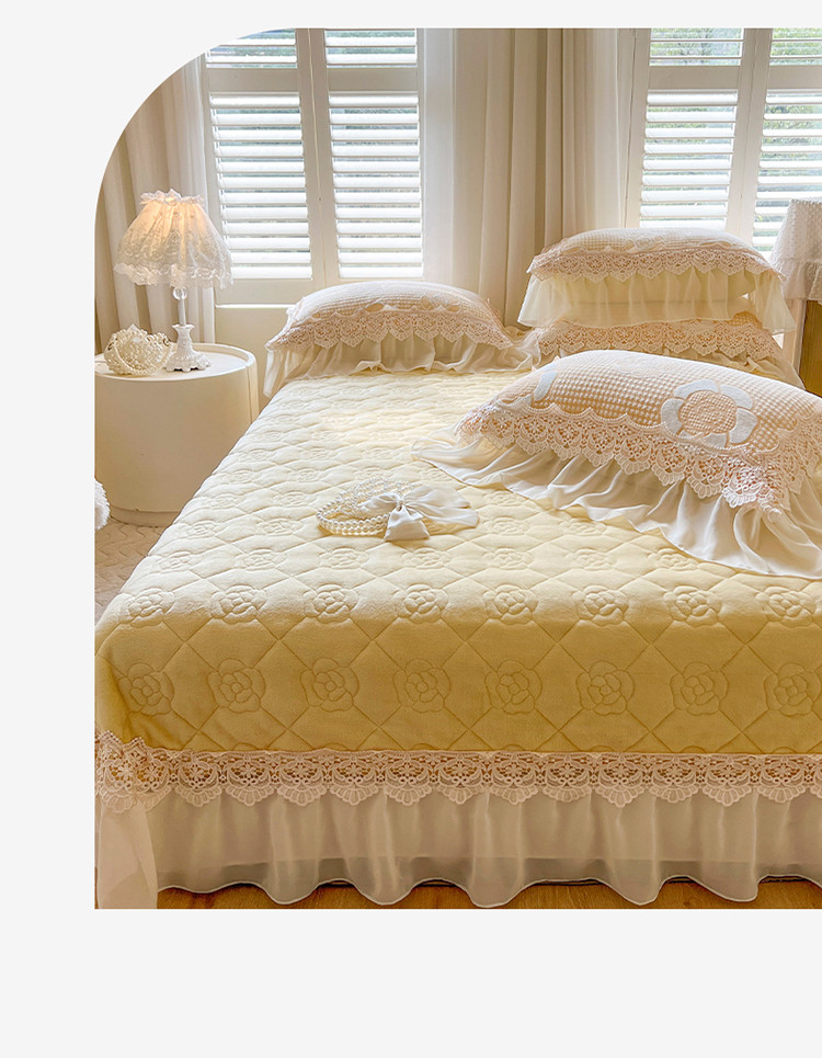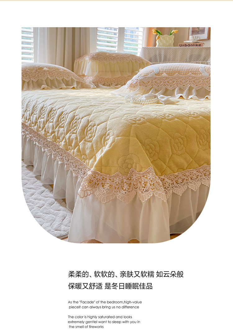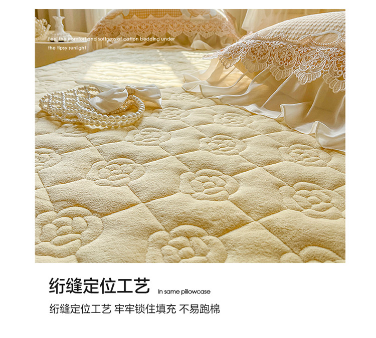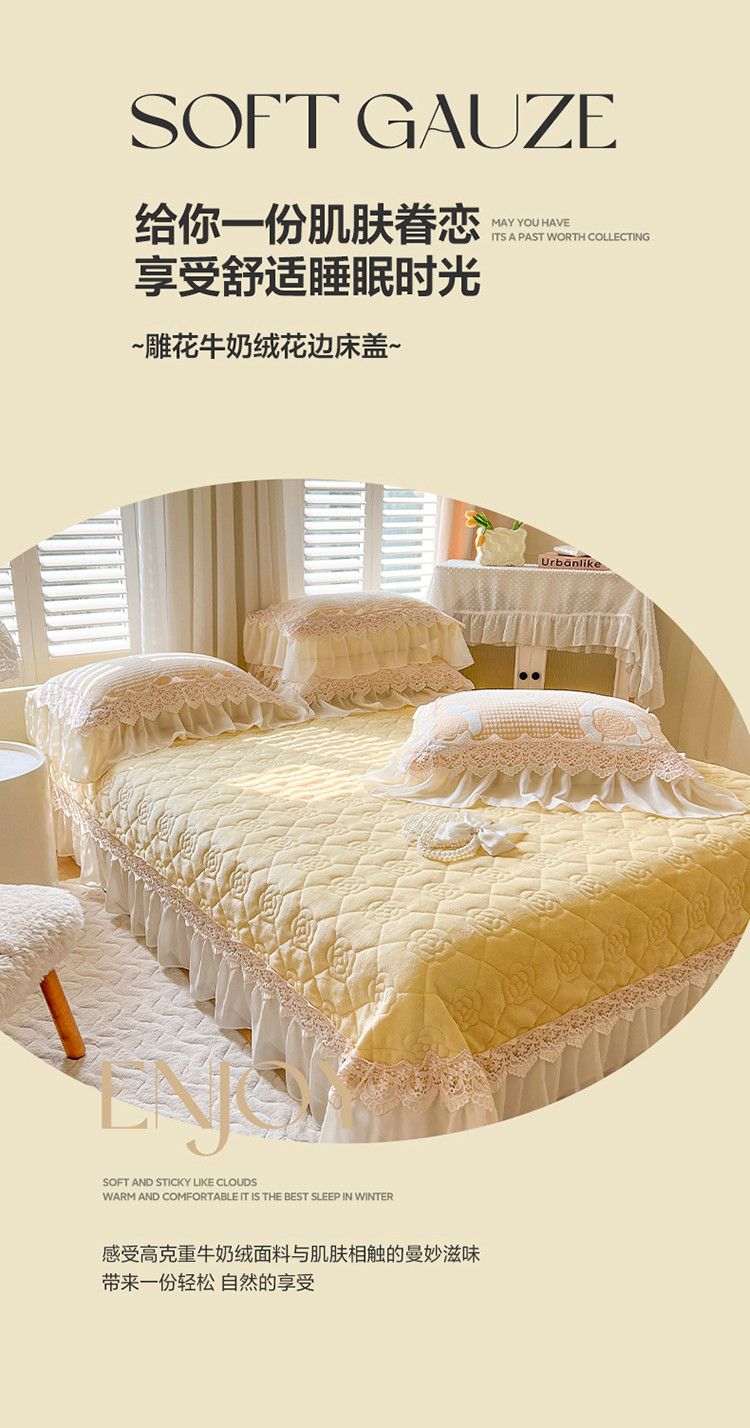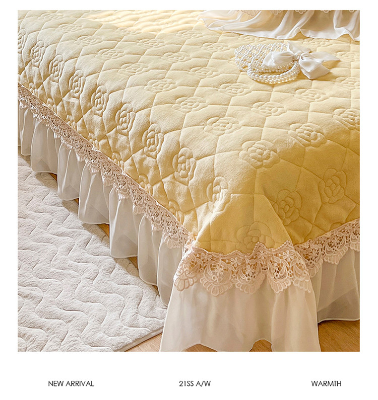 商品名称:麒豆豆 2023新款花间浪漫牛奶雕花绒床盖纳米黄