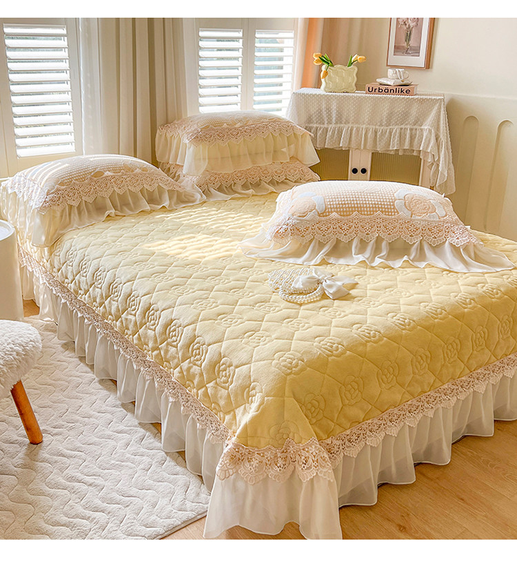 麒豆豆 2023新款花间浪漫牛奶雕花绒床盖纳米黄