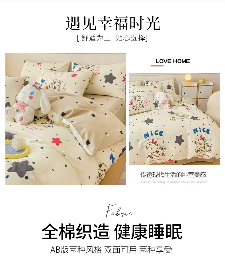 当前位置: 91家纺网 > 商品网购 > 床品套件 > 四件套 > 全棉普通四件套 > 金丝鸟家纺 2023新款全棉小清新四件套-第三批 星星奶狗
