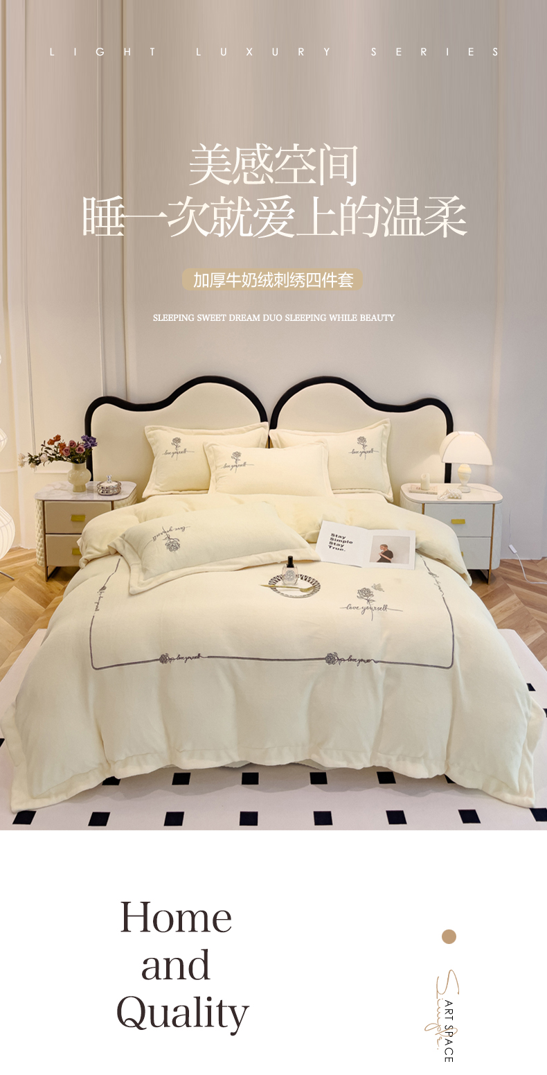 (总)宜家坊 2023秋冬新款高克重牛奶绒轻奢花卉刺绣-玫瑰庄园系列