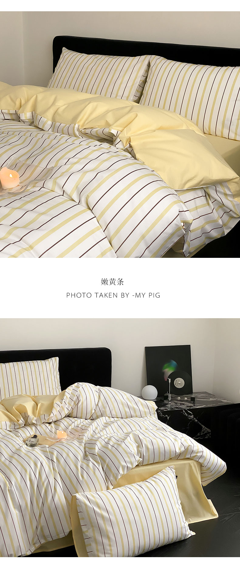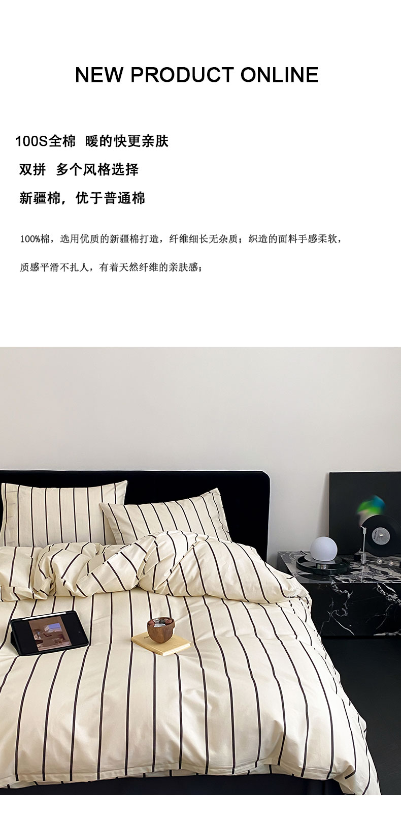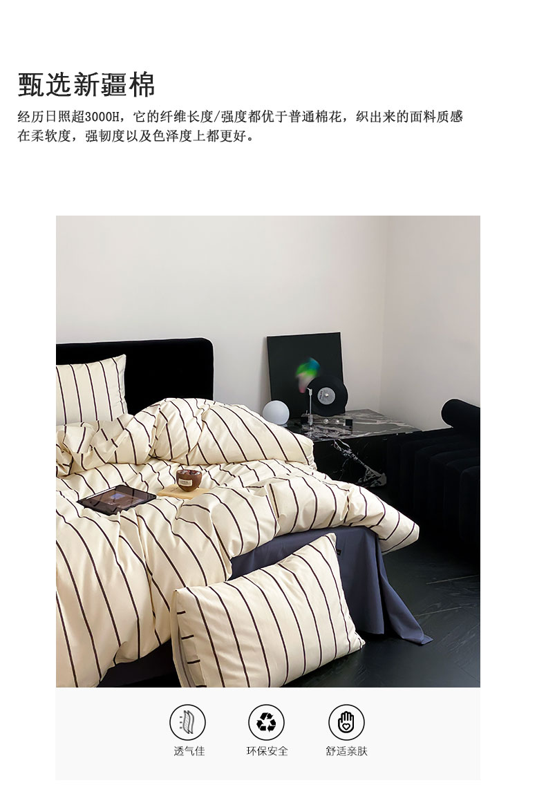 商品名称:Mr.pig猪先生水洗棉 2023新款A类全棉印花竖条纹四件套 复古黑