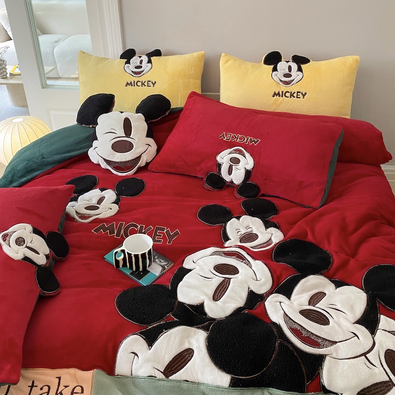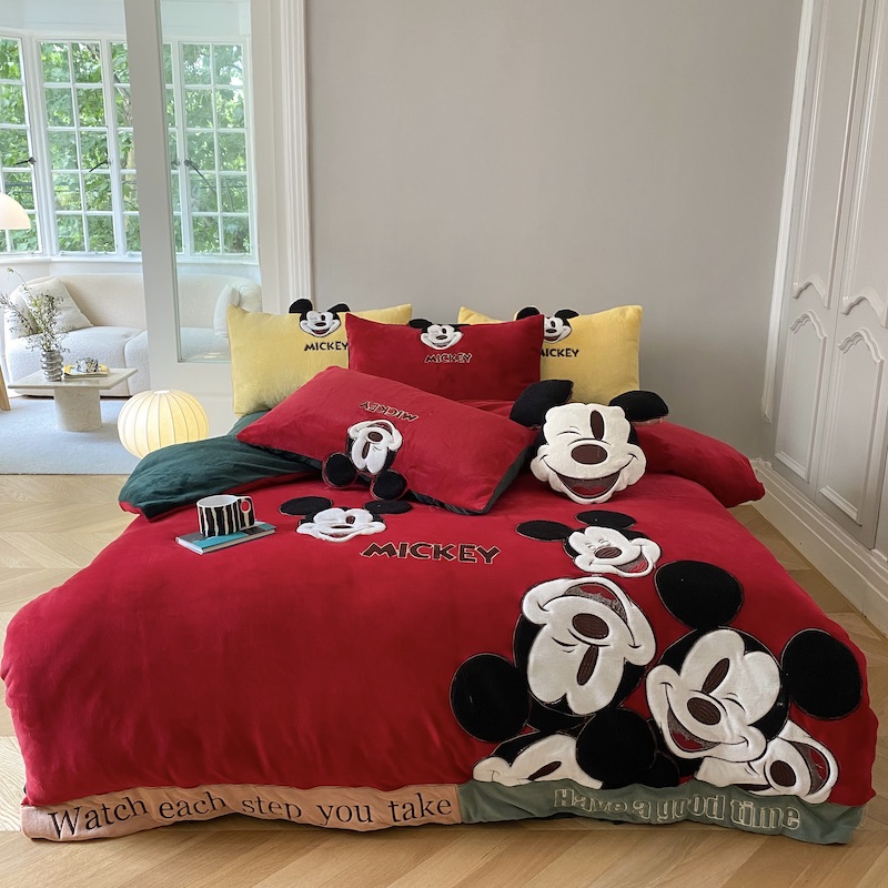 紫碧螺 2023新款牛奶绒系列四件套-米奇 米奇-红色