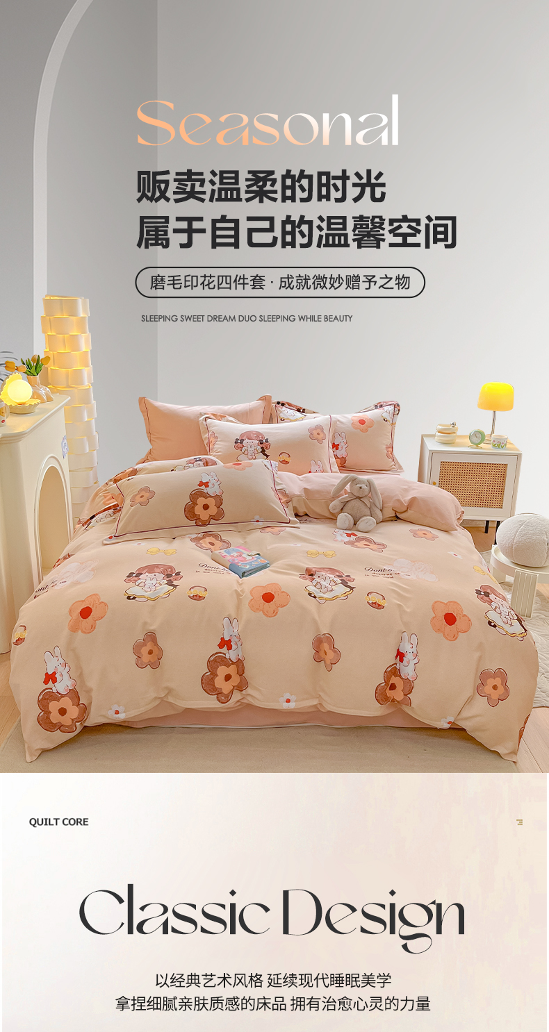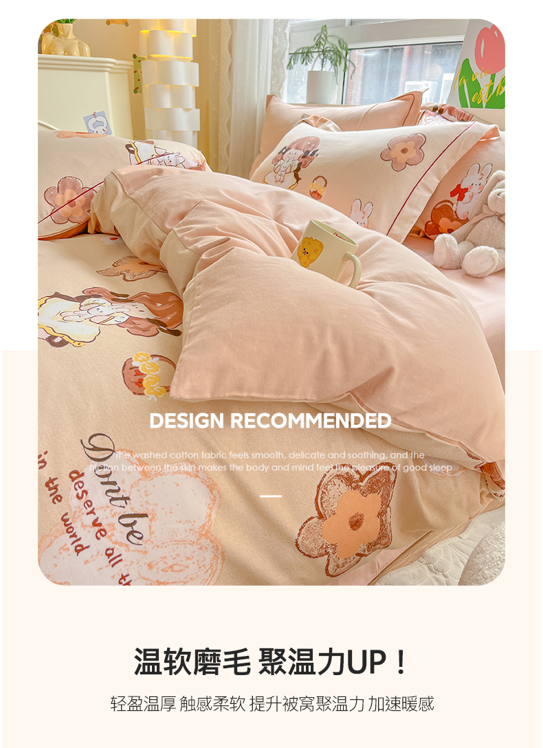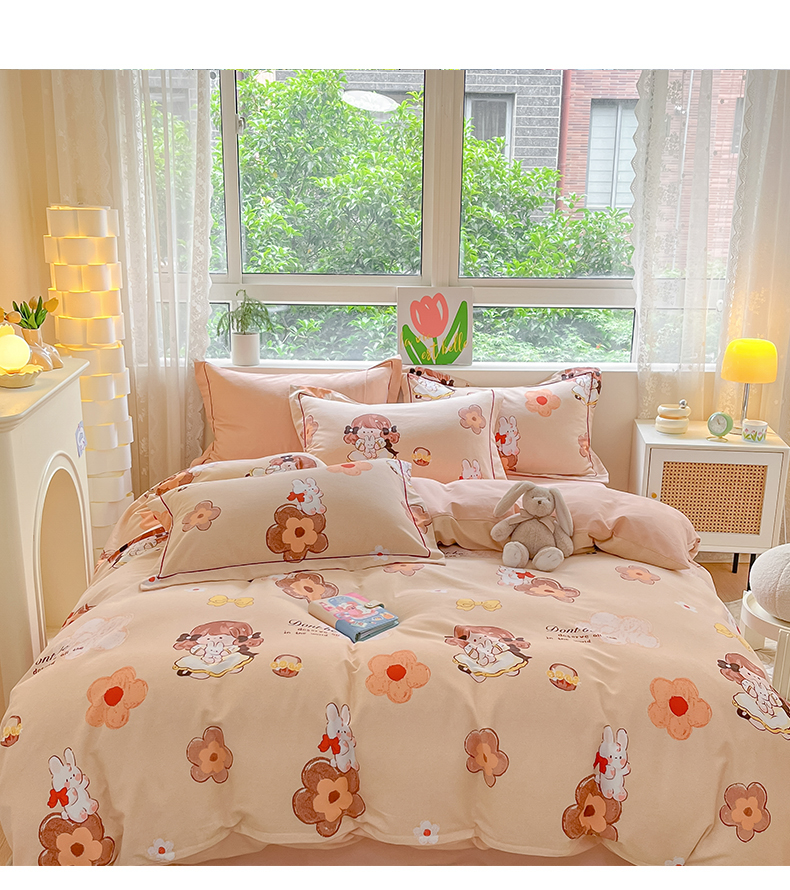 (总)宜家坊 2023新款直播韩版印花花边款牛奶绒四件套,比格熊,草莓兔,春暖花开,告白,加油鸭,流星花园,萌萌熊,牛油果,千鸟格,小女孩,一见倾心,郁金香