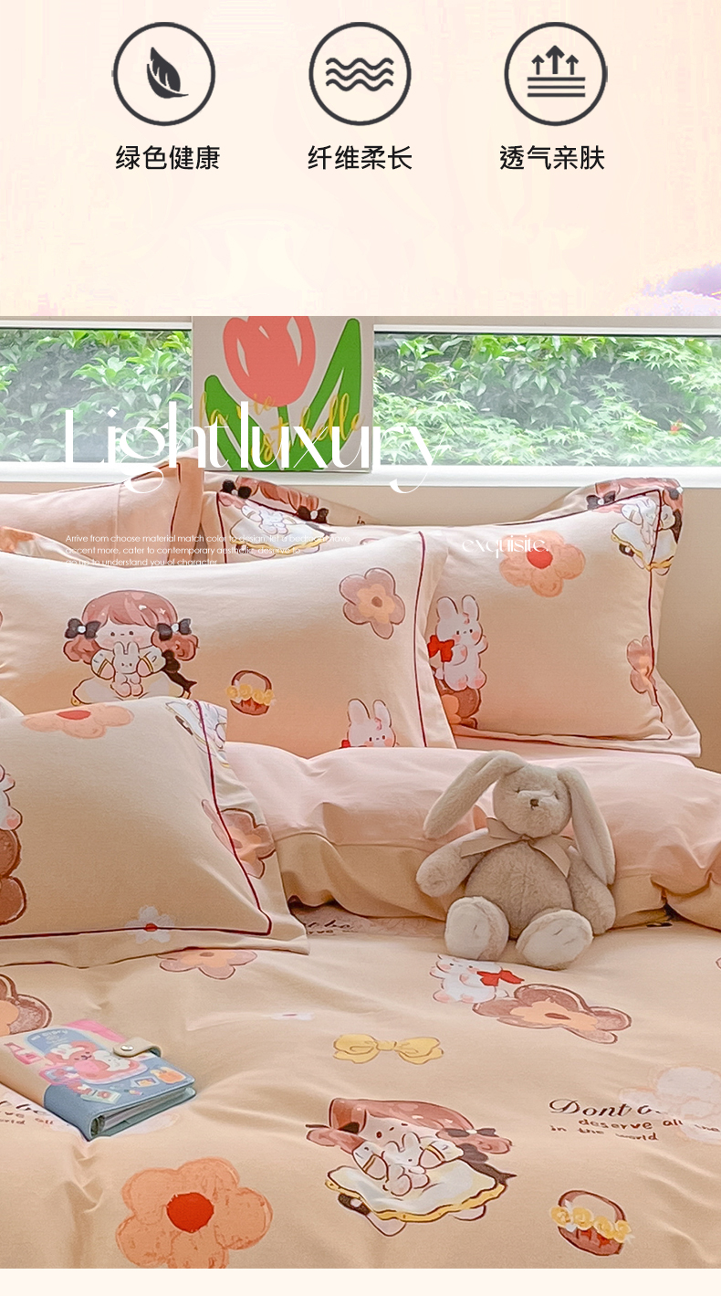 宜家坊 2024新款ins小清新磨毛印花四件套 花童