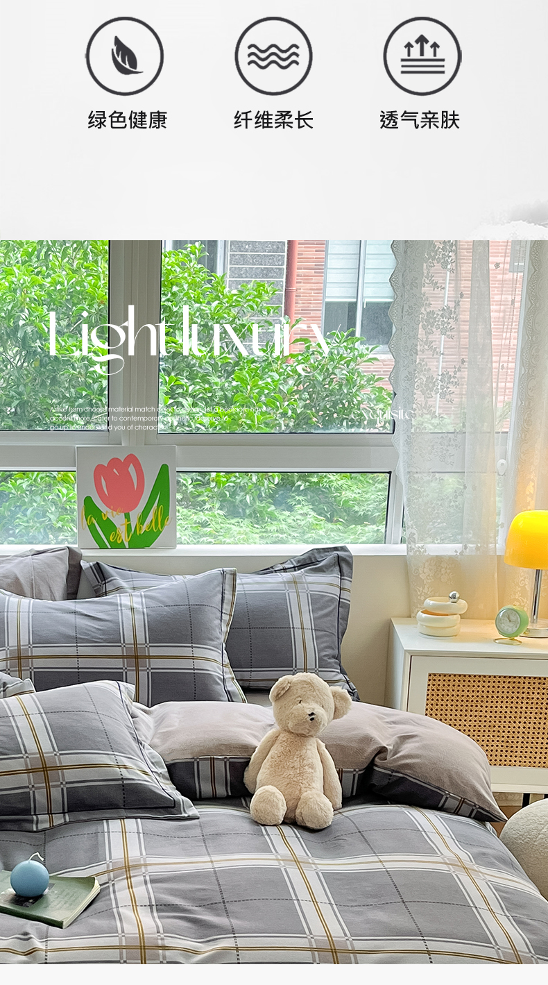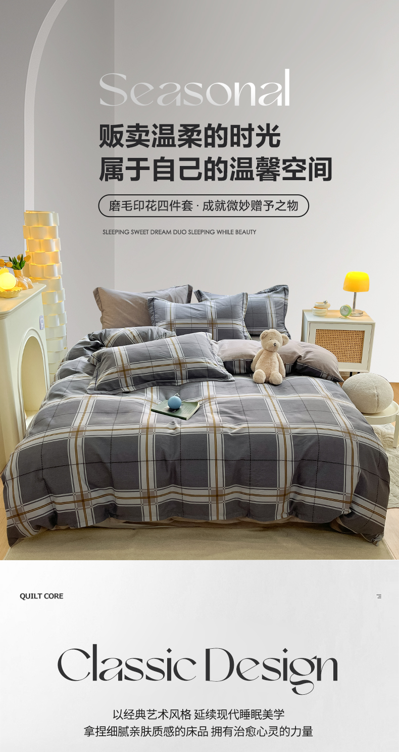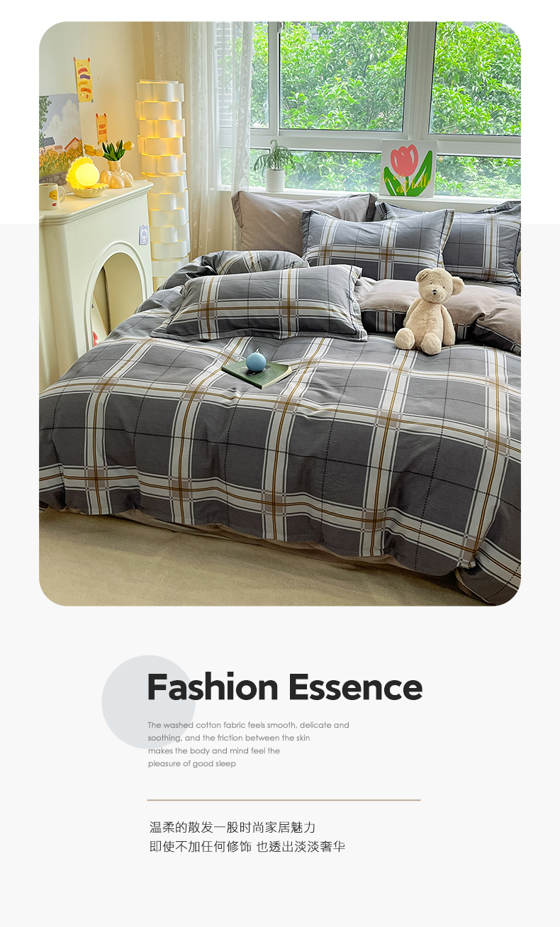 当前位置: 91家纺网 > 商品网购 > 床品套件 > 四件套 > 普通磨毛四件套 > 宜家坊 2024新款ins小清新磨毛印花四件套 知间-灰( 有小三件套 )