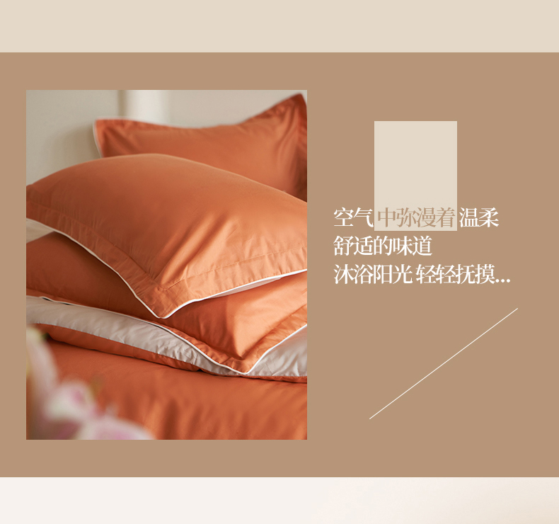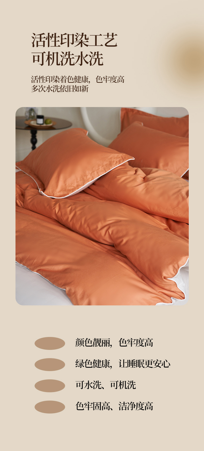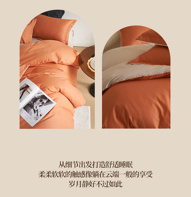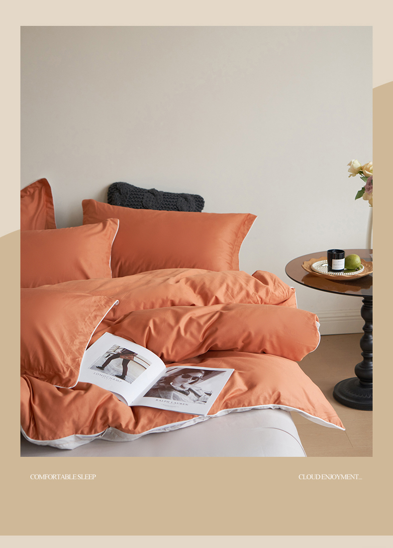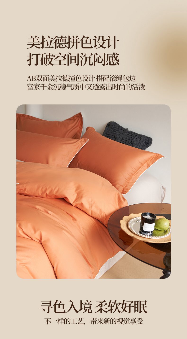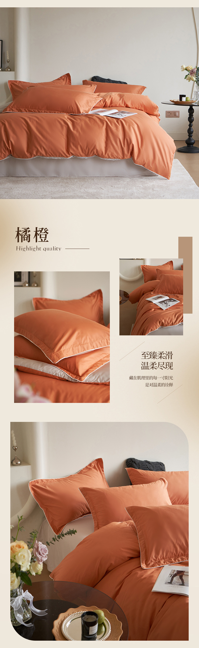 商品名称:盛馨 2024新款40长绒棉美拉德色系纯色双拼全棉四件套纯棉三件套床笠套件 橘橙