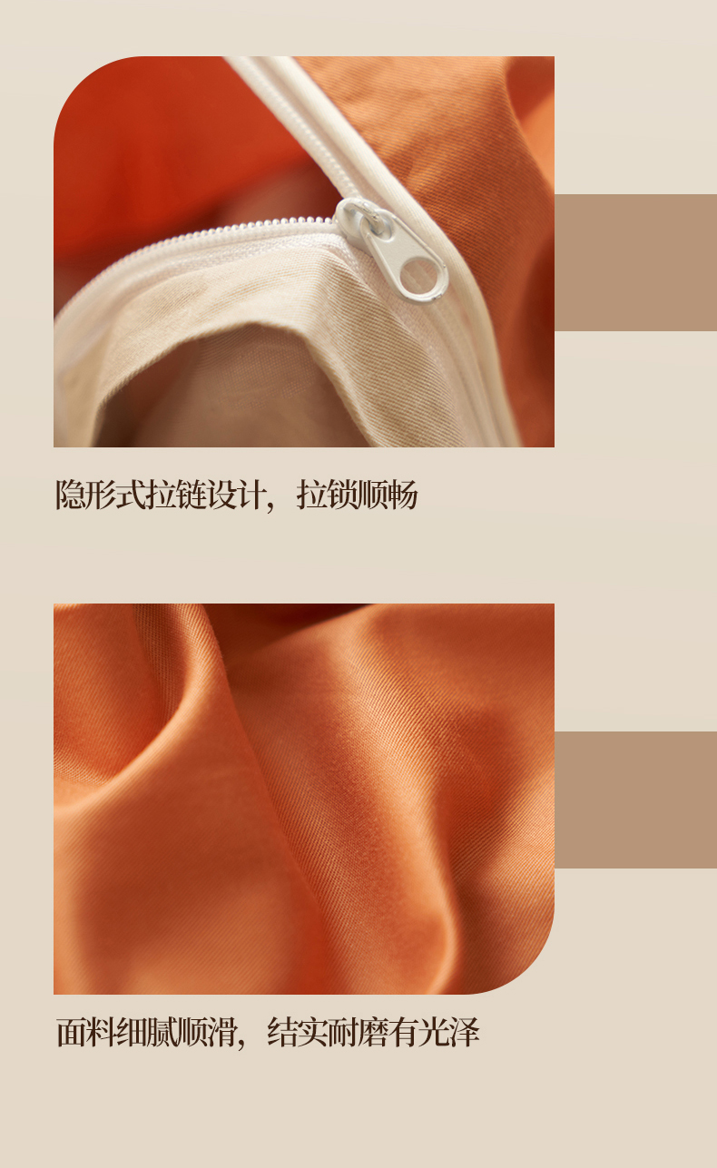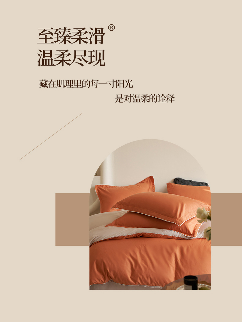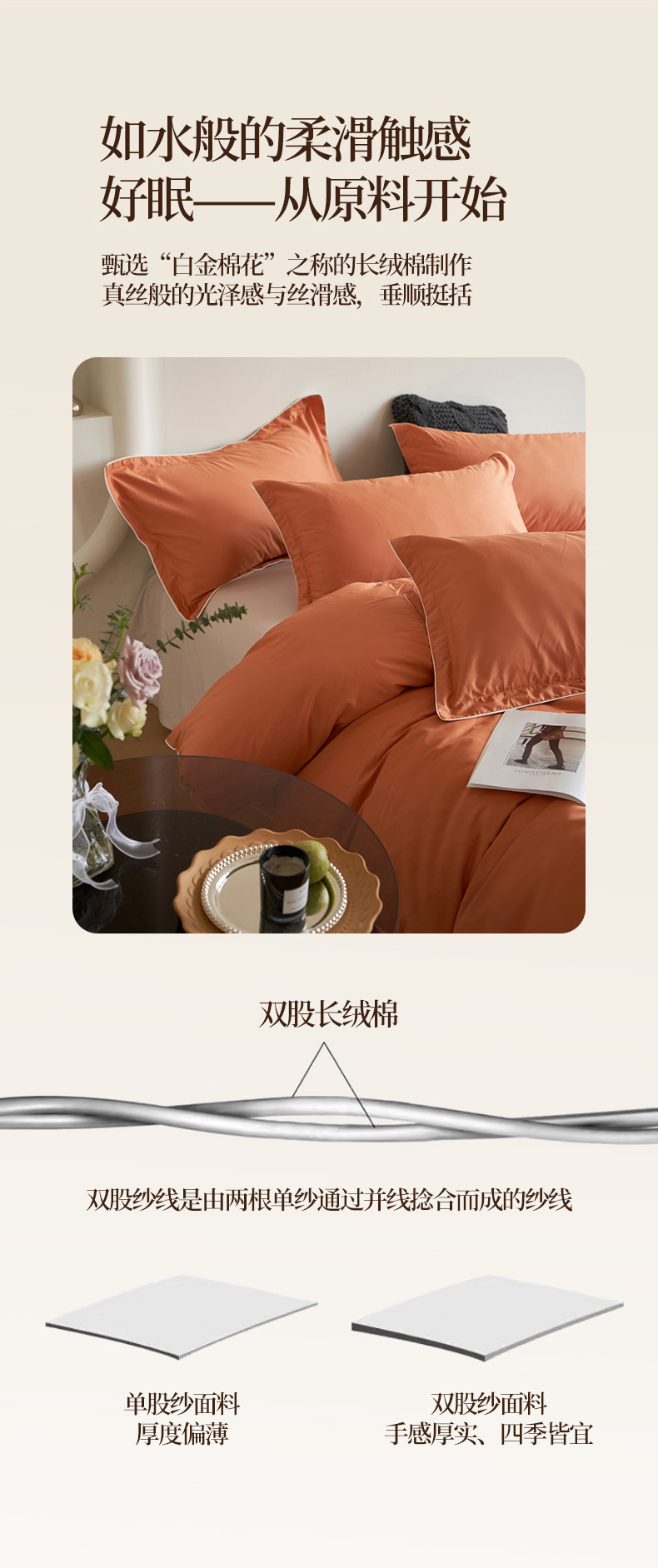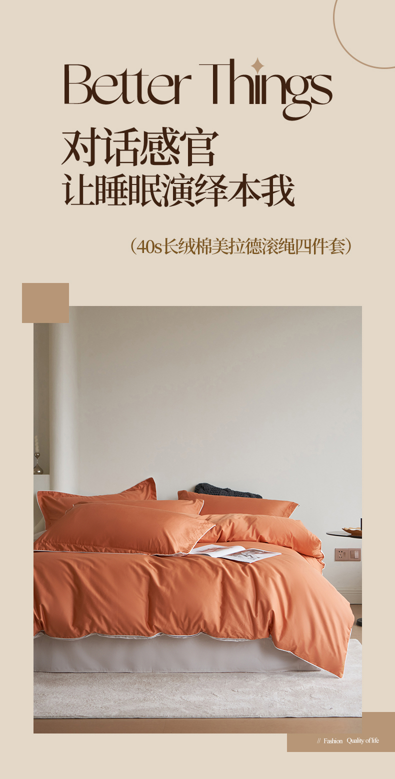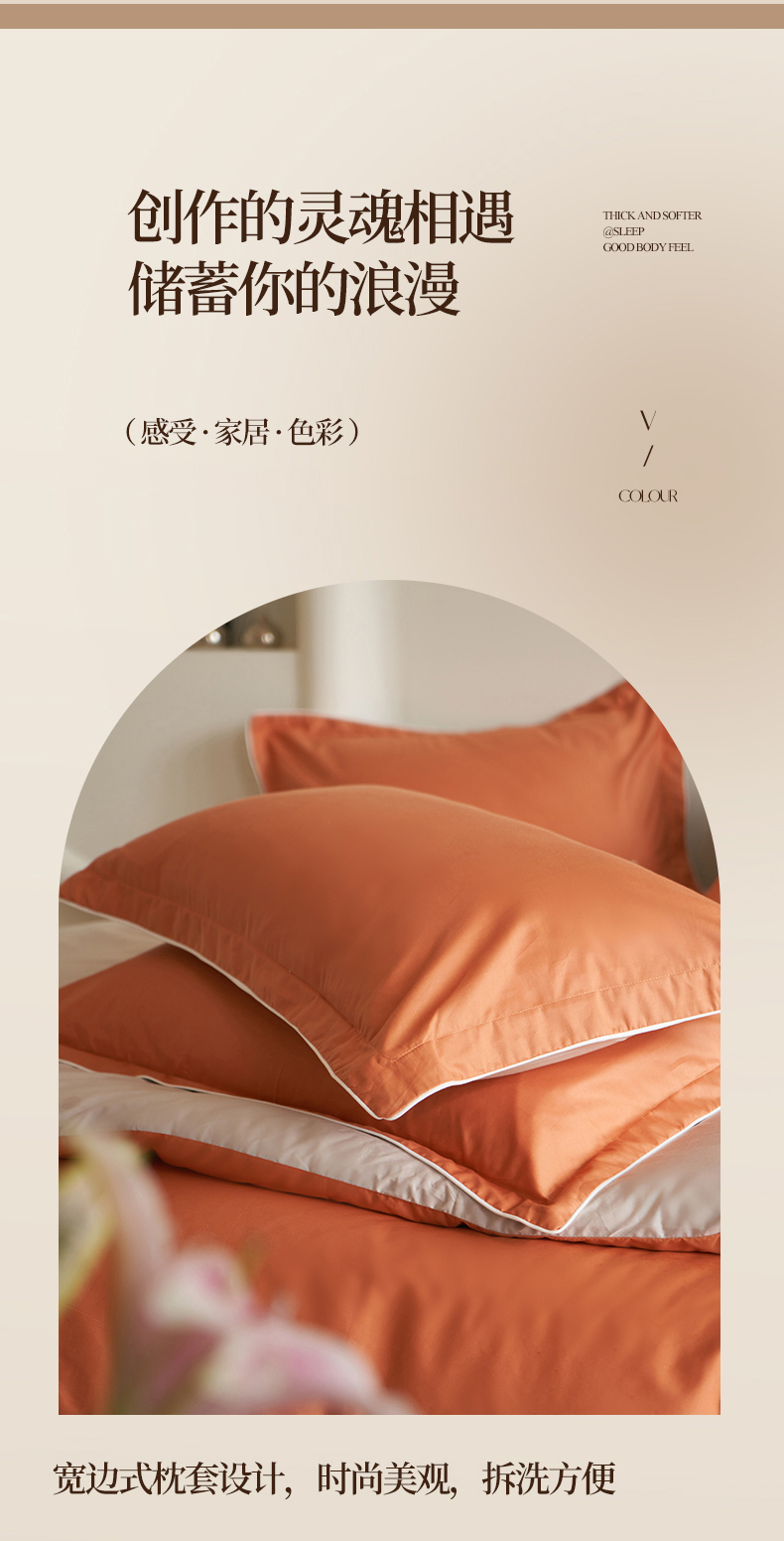 商品名称:盛馨 2024新款40长绒棉美拉德色系纯色双拼全棉四件套纯棉三件套床笠套件 橘橙