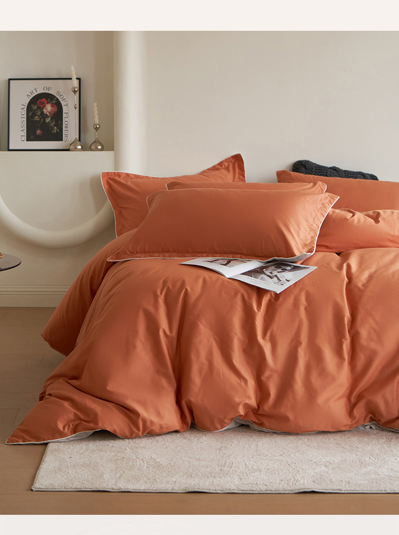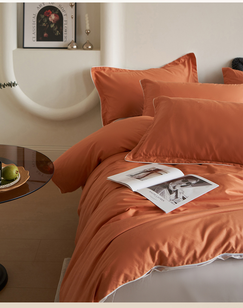 盛馨 2024新款40长绒棉美拉德色系纯色双拼全棉四件套纯棉三件套床笠套件 橘橙
