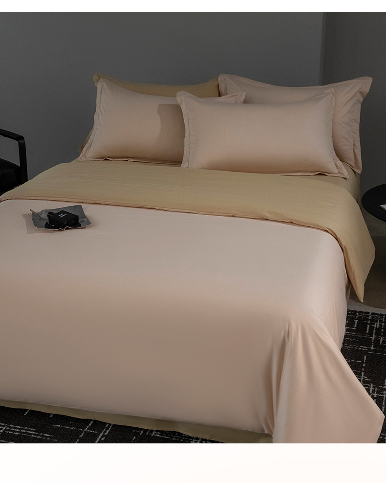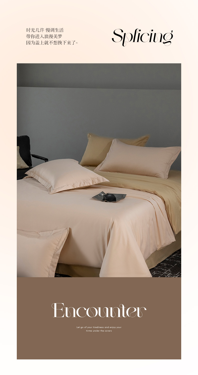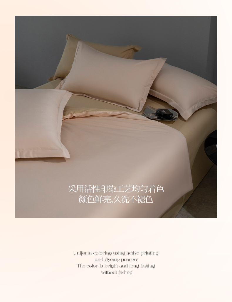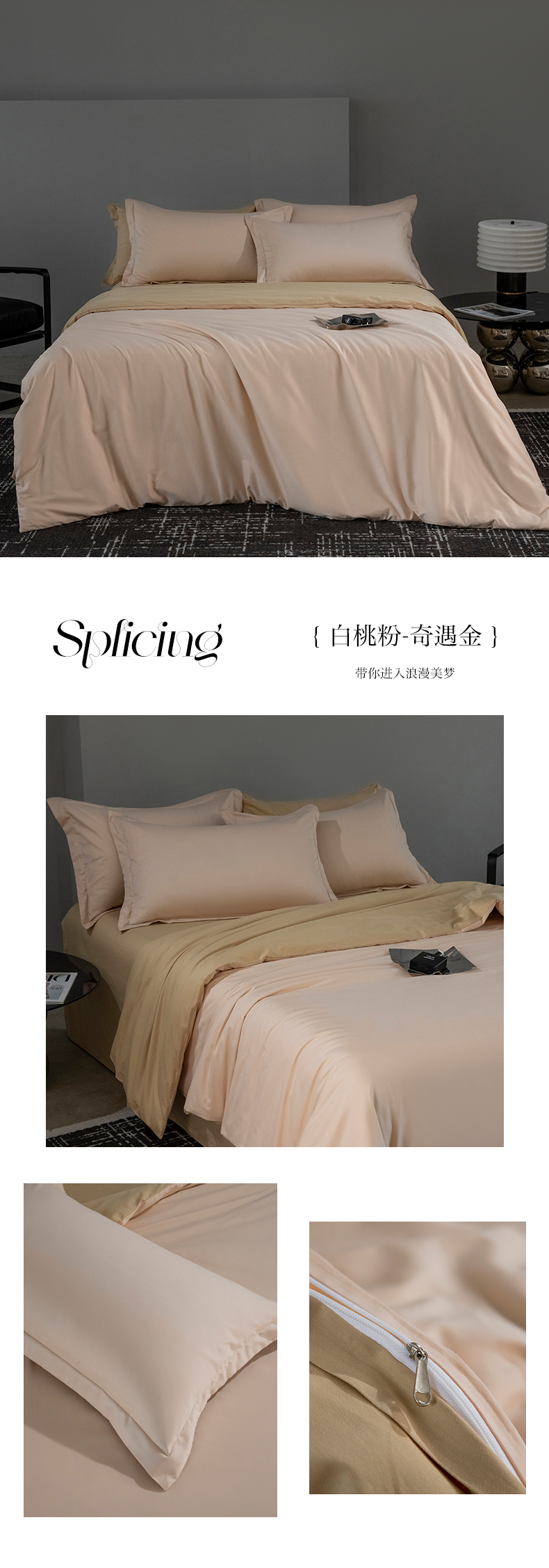 商品名称:小懒猪 2024春夏新款全棉舒适100支长绒棉极简系列四件套 白桃粉-奇遇金