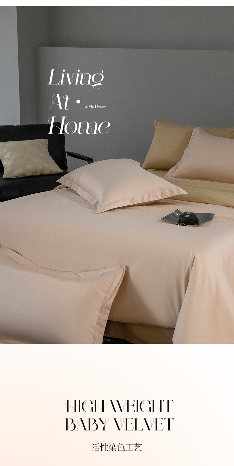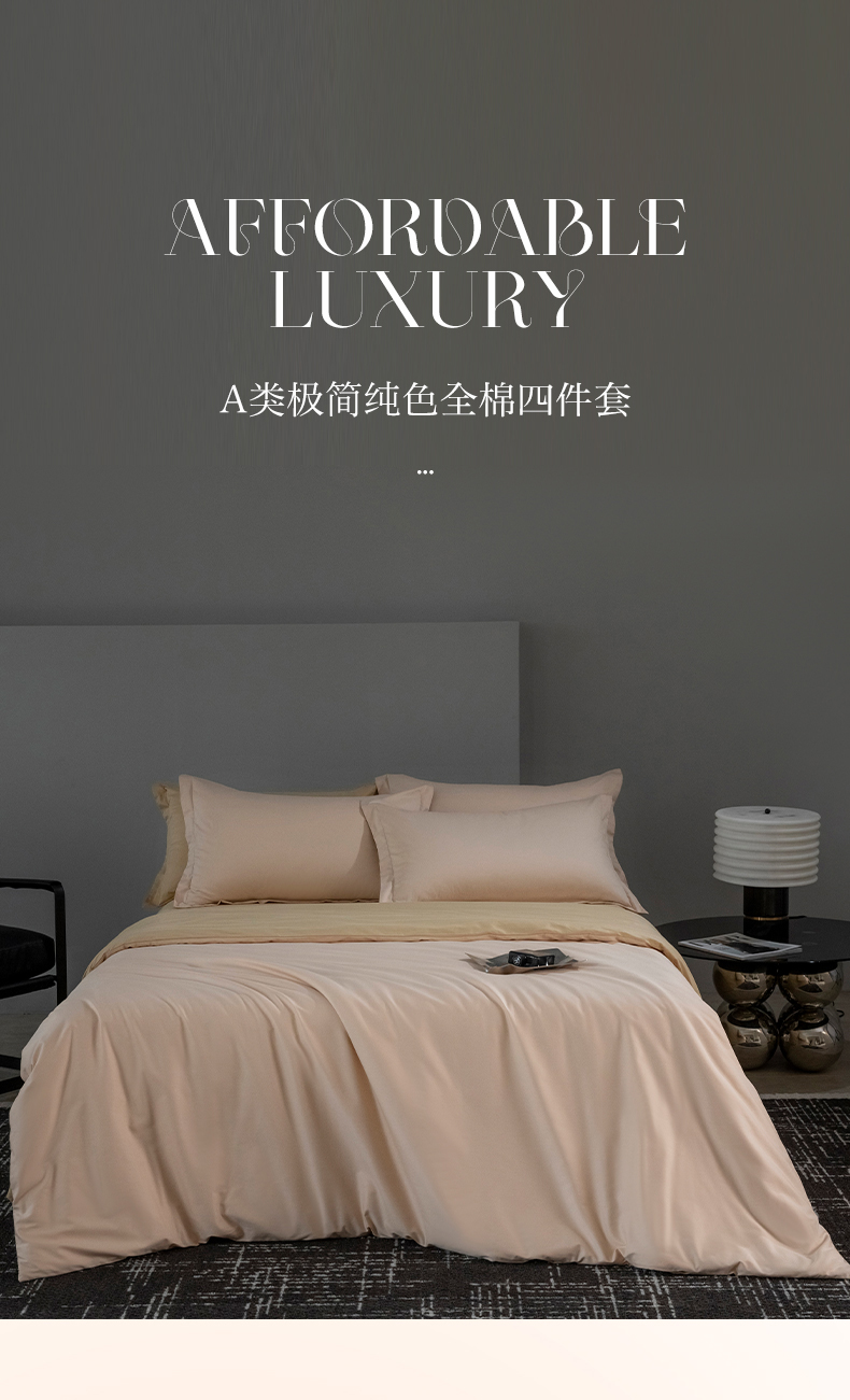 小懒猪 2024春夏新款全棉舒适100支长绒棉极简系列四件套 白桃粉-奇遇金