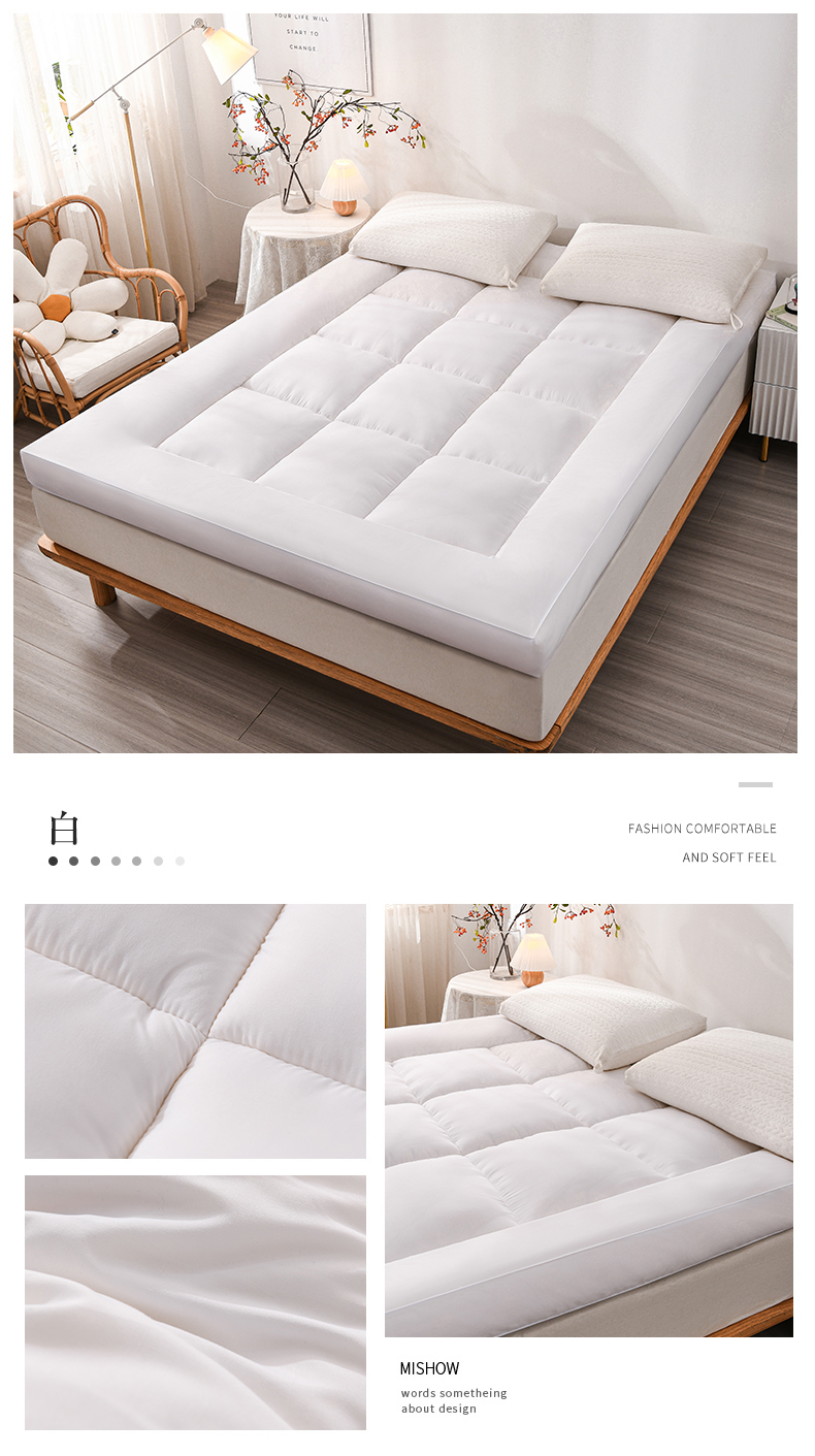 (总)招财狼 2025新款亲肤磨毛床垫,淡雅灰,珍珠白