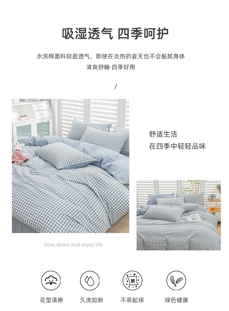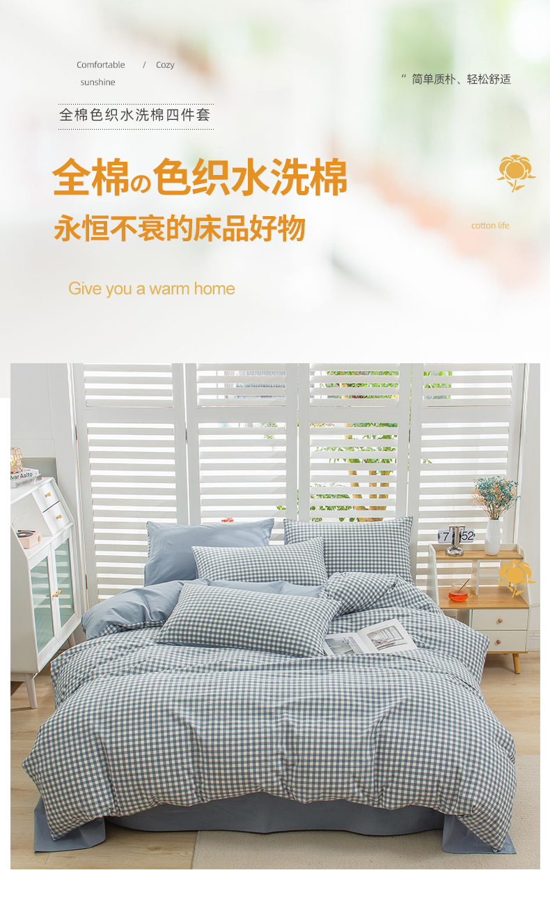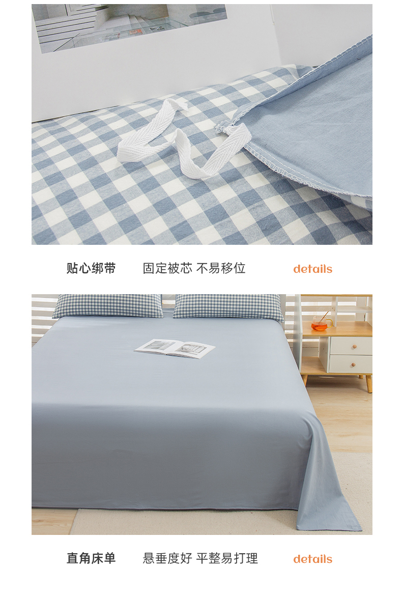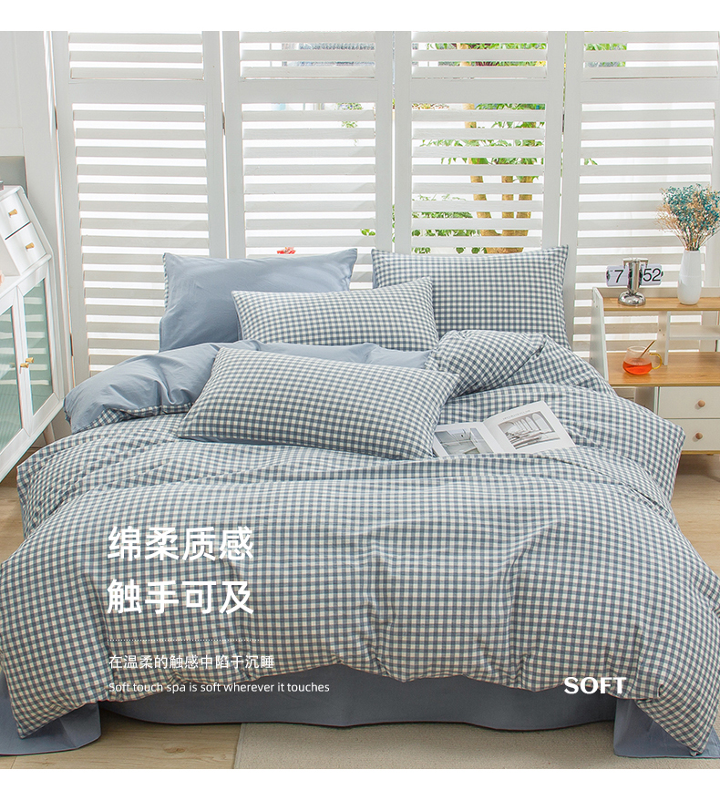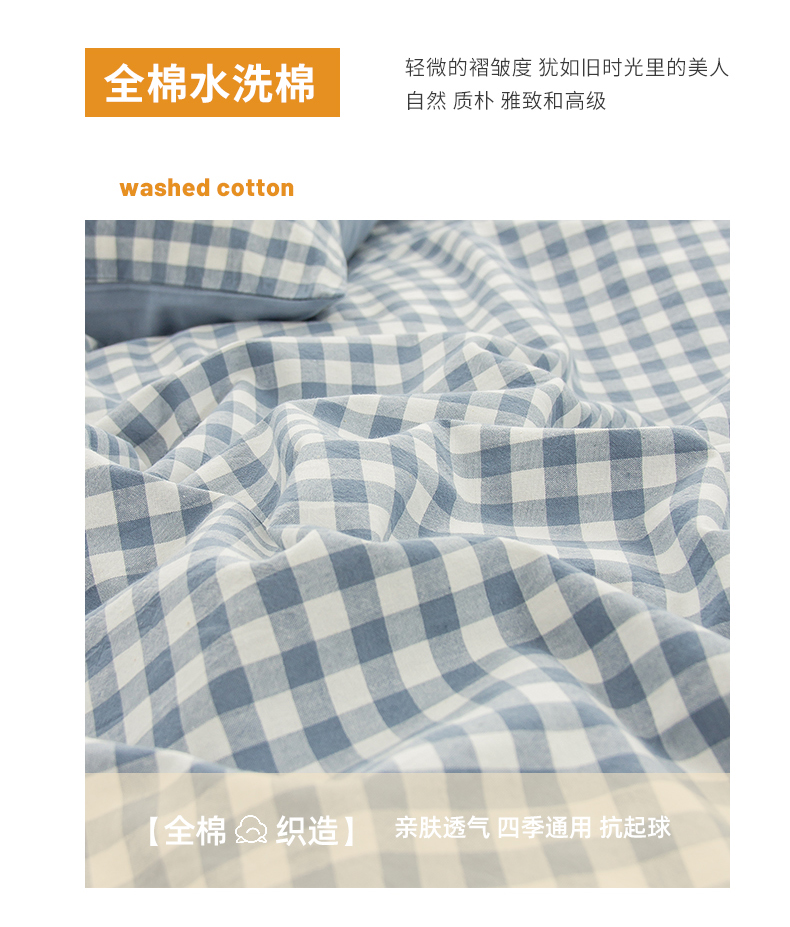 当前位置: 91家纺网 > 商品网购 > 床品套件 > 四件套 > 水洗棉四件套 > 柠萌家居 2024新款无印风A类全棉色织水洗棉四件套 蓝小格