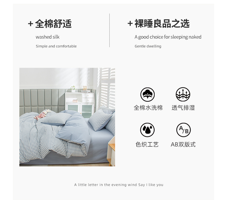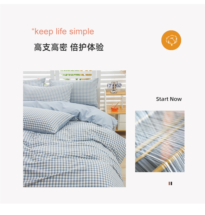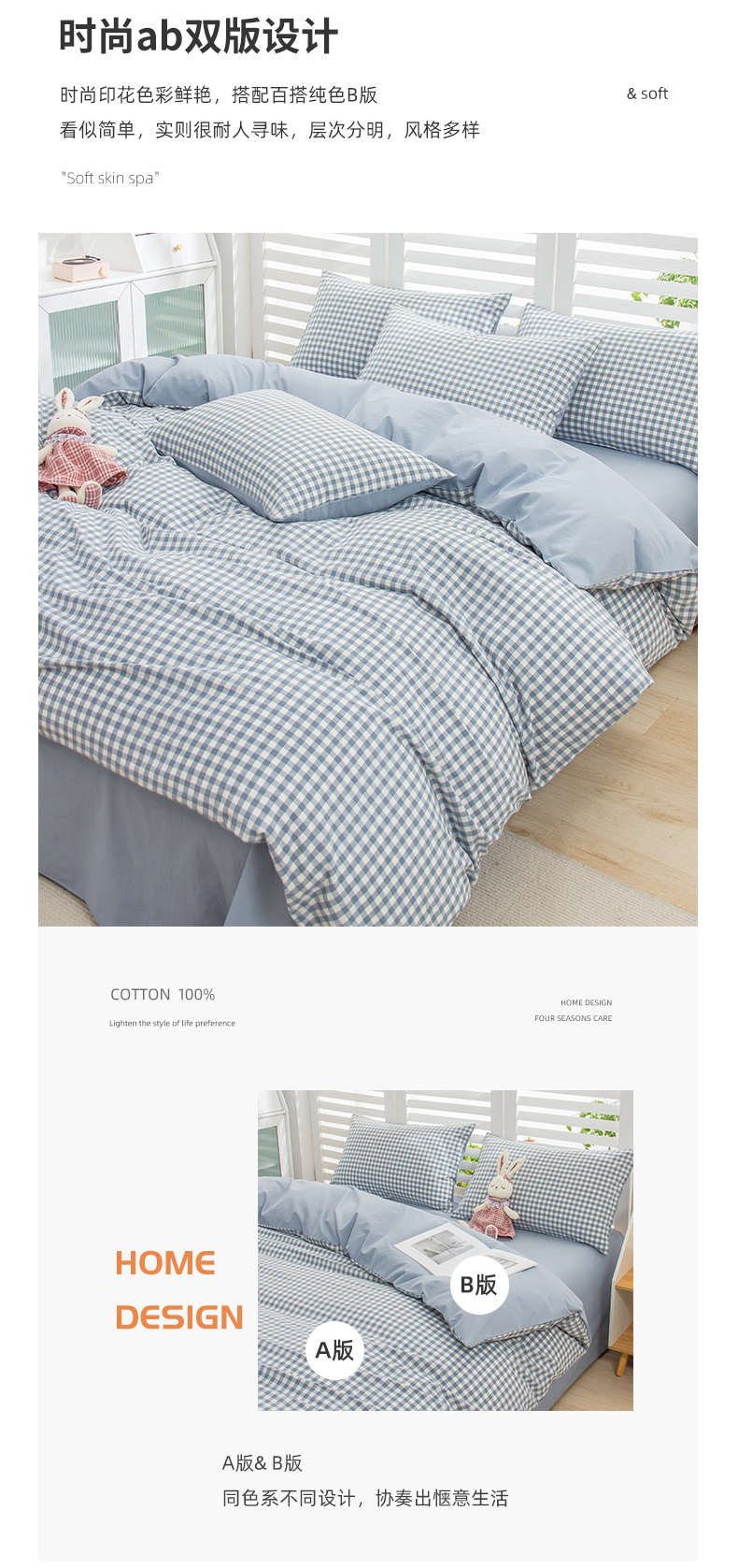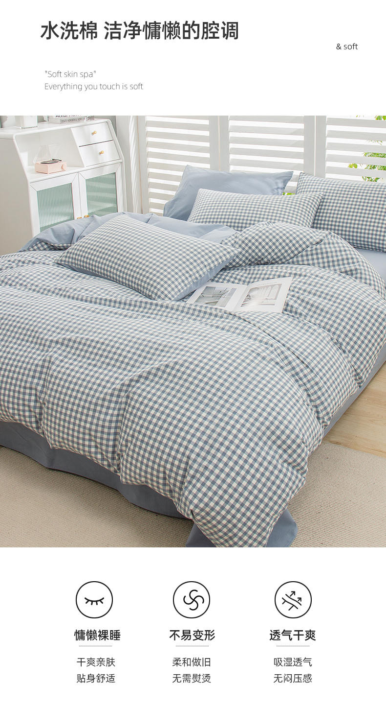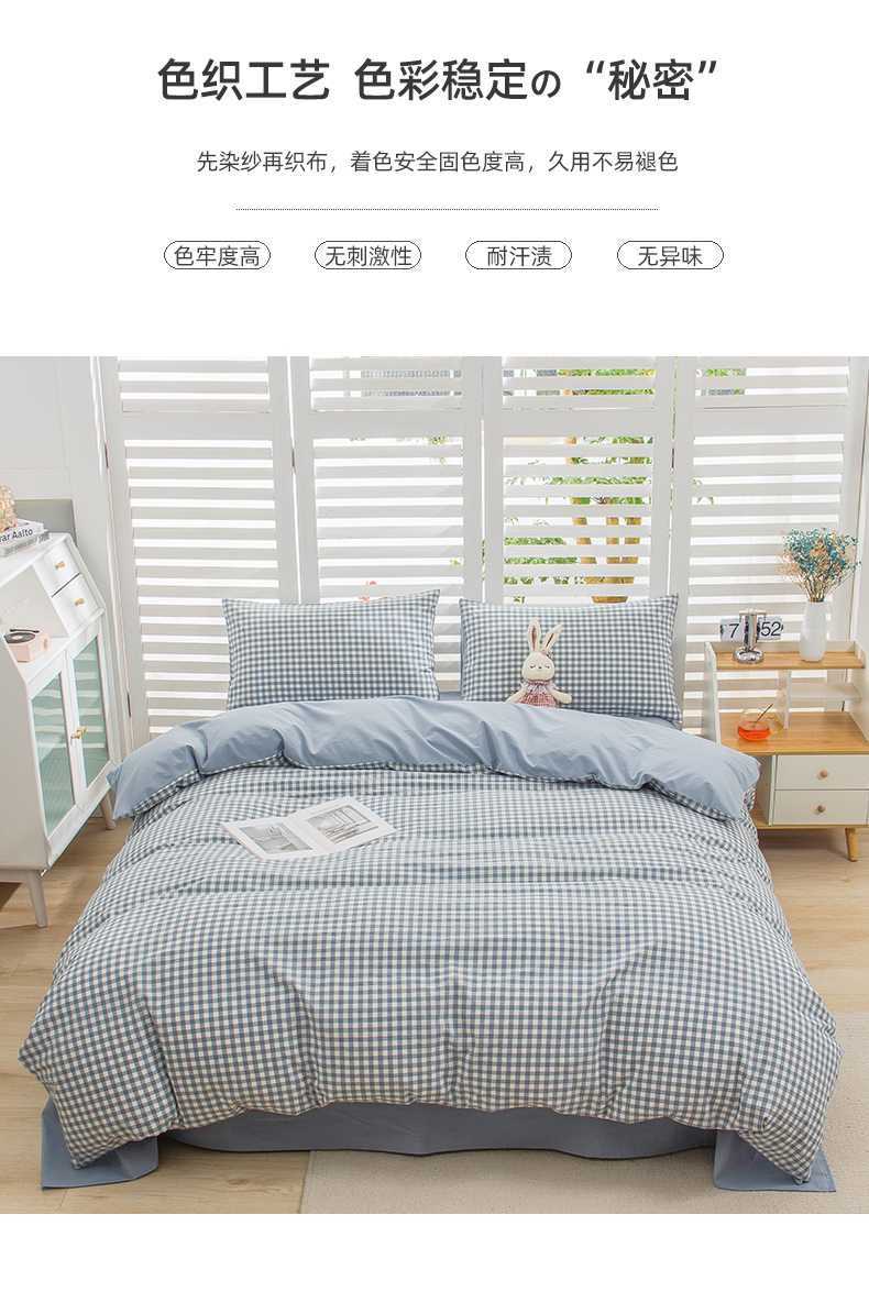 当前位置: 91家纺网 > 商品网购 > 床品套件 > 四件套 > 水洗棉四件套 > 柠萌家居 2024新款无印风A类全棉色织水洗棉四件套 蓝小格