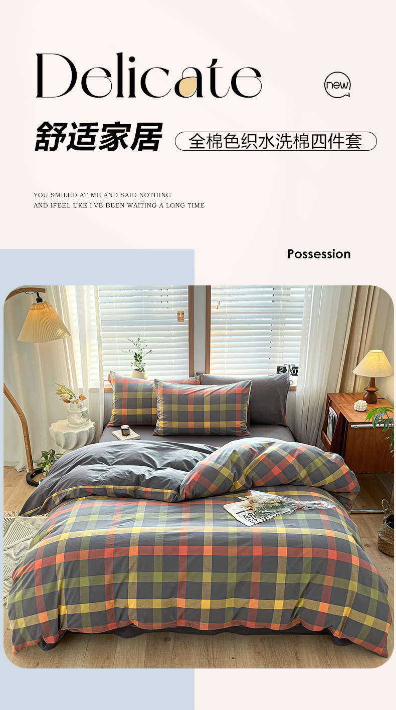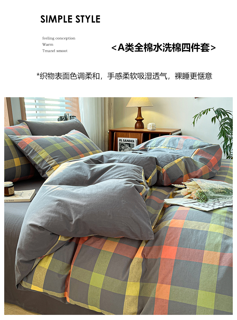 当前位置: 91家纺网 > 商品网购 > 床品套件 > 四件套 > 水洗棉四件套 > 柠萌家居 2024新款无印风A类全棉色织水洗棉四件套 雅蒂-灰