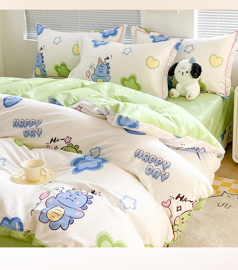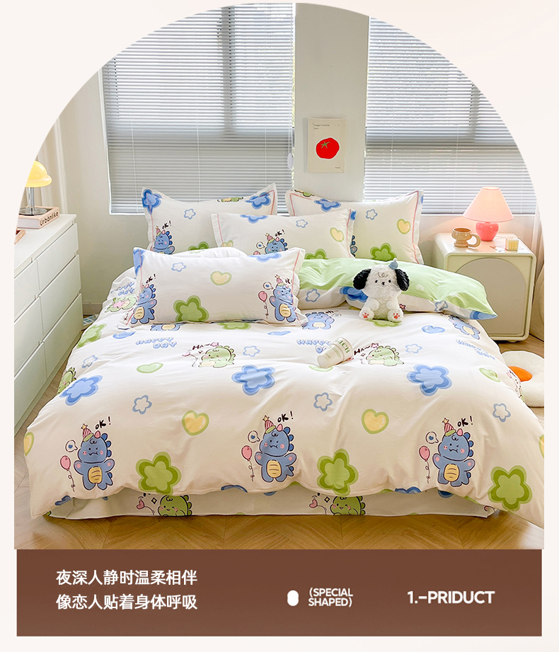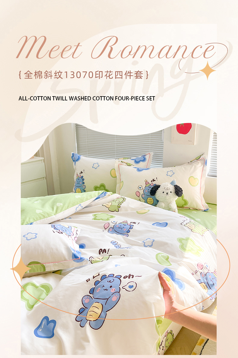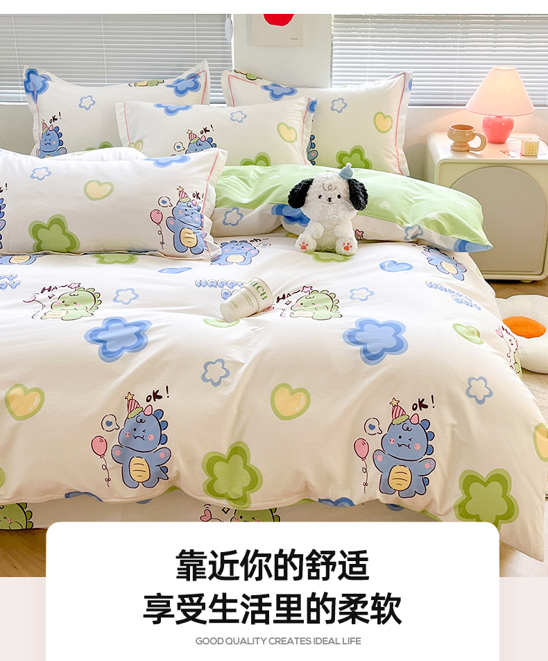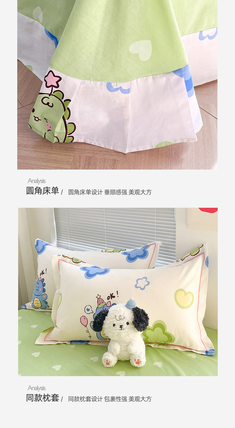 商品名称:简约家纺 2025新款全棉斜纹13070田园风印花四件套 恐龙告白