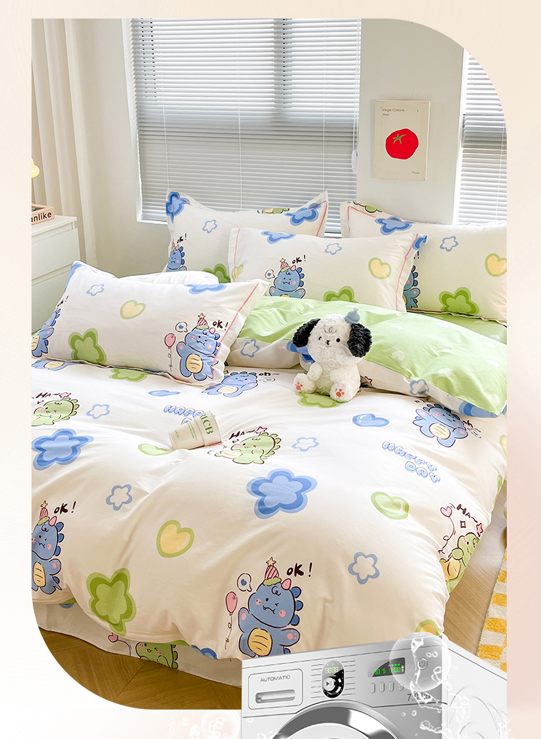 简约家纺 2025新款全棉斜纹13070田园风印花四件套 恐龙告白