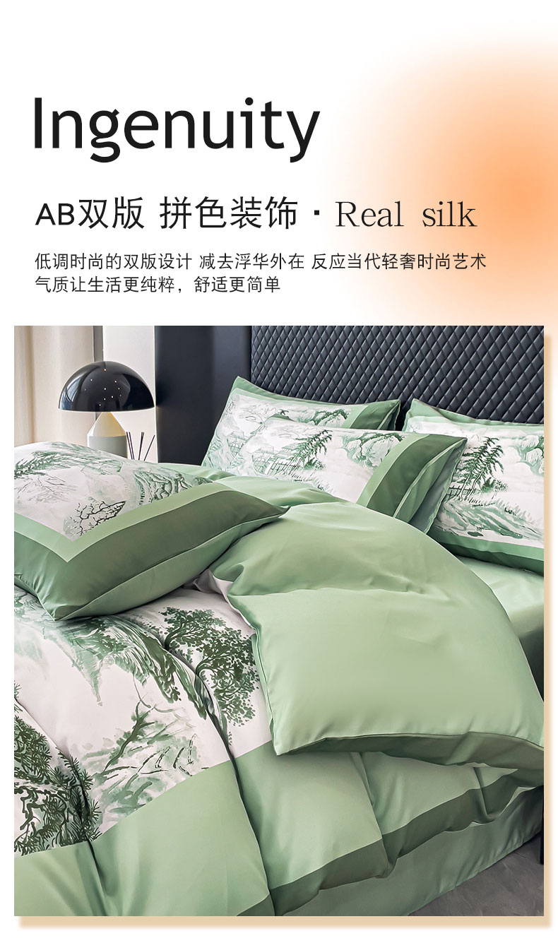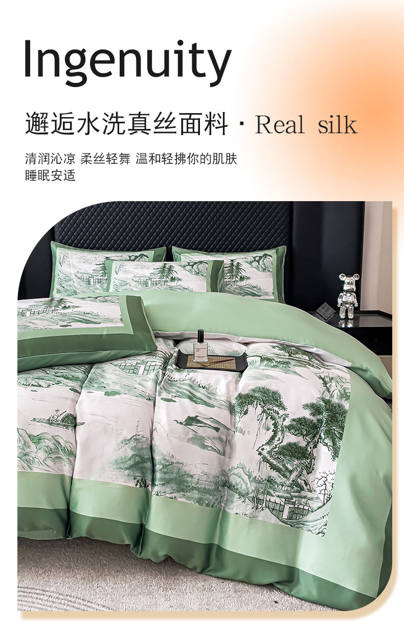 2024新款水洗真丝画意山水系列四件套 画意山水-绿