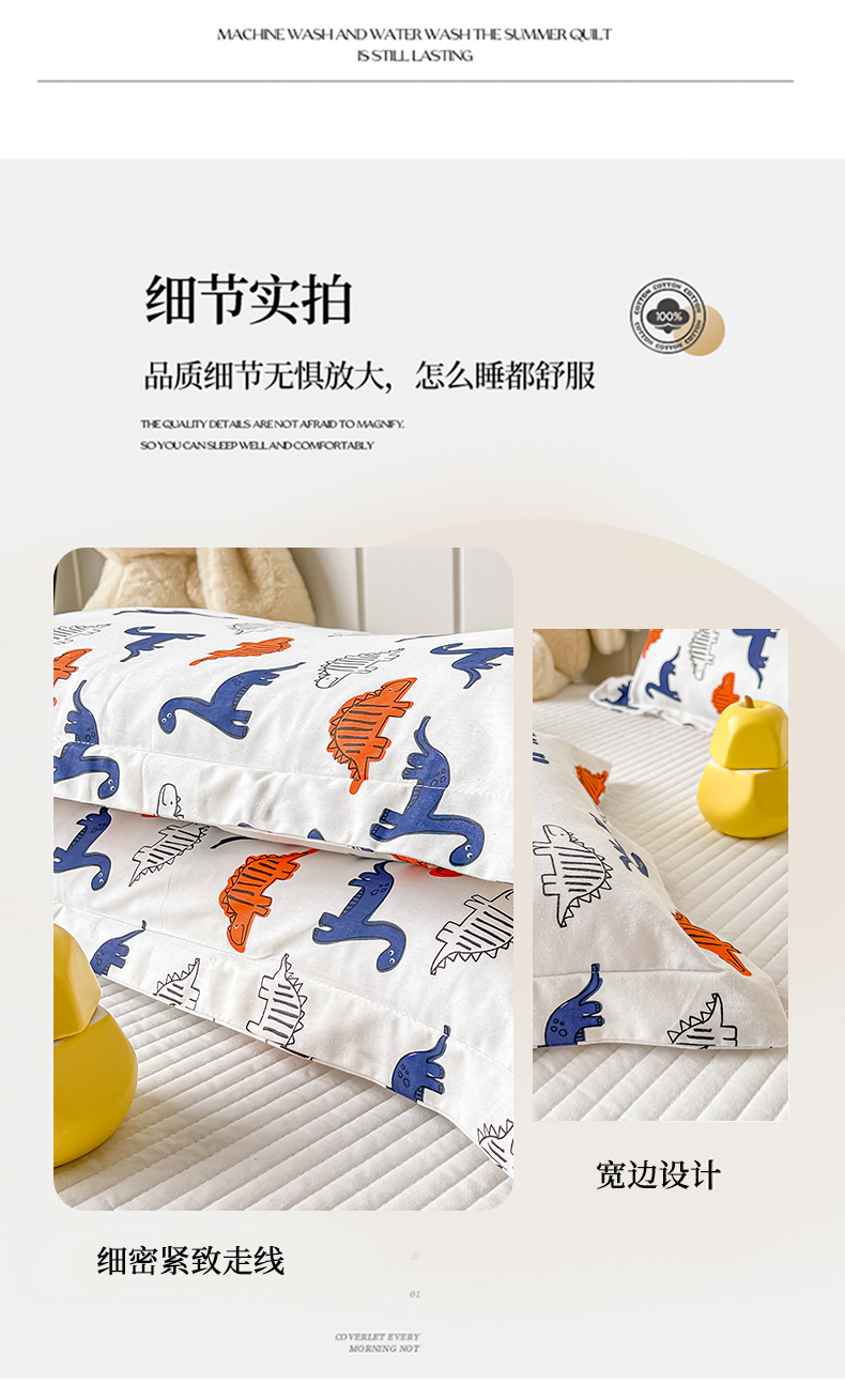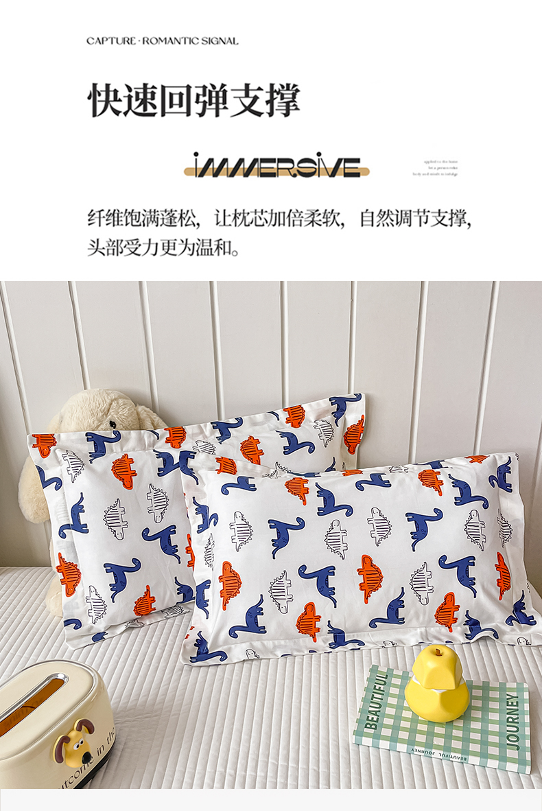 商品名称:金帛坊 2024新款100%全棉信封枕套儿童可拆卸枕芯枕头 恐龙世界