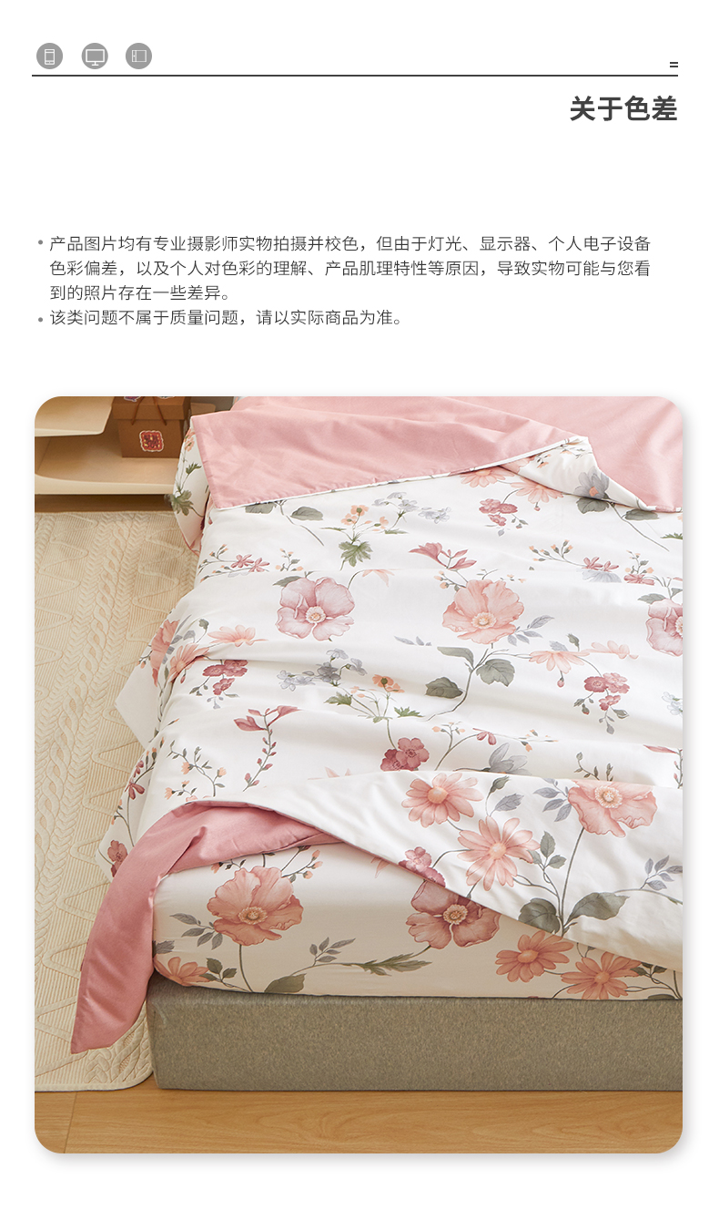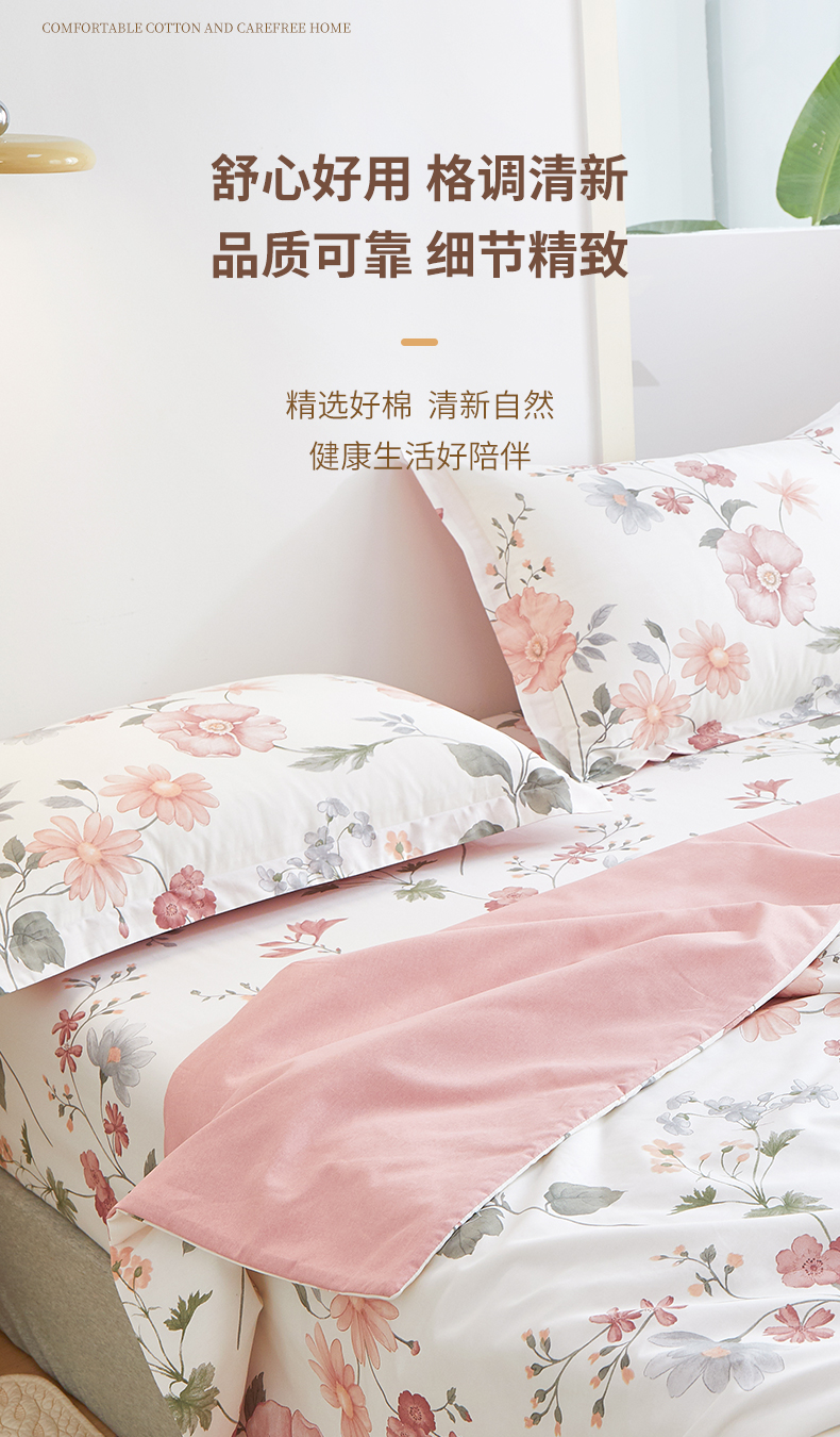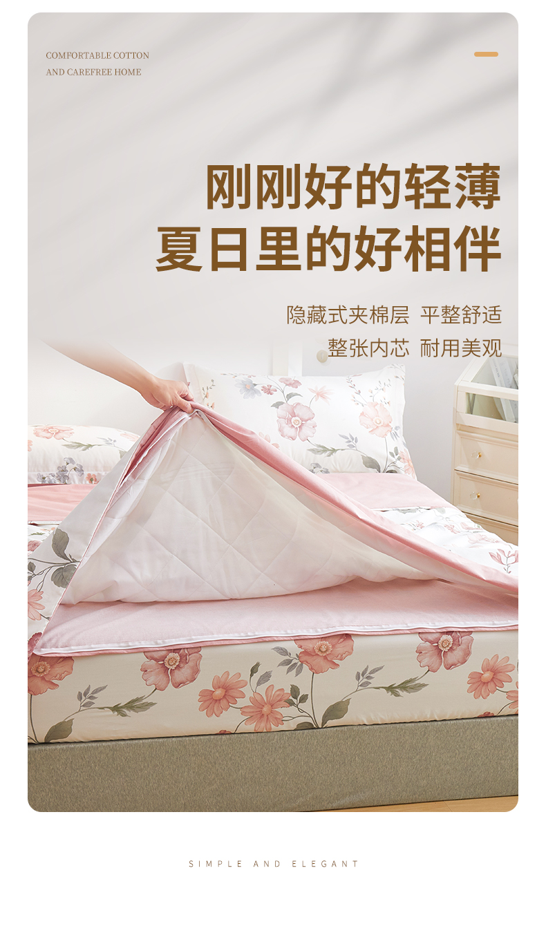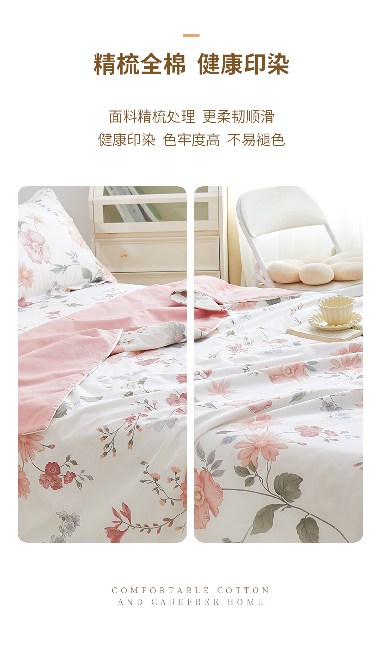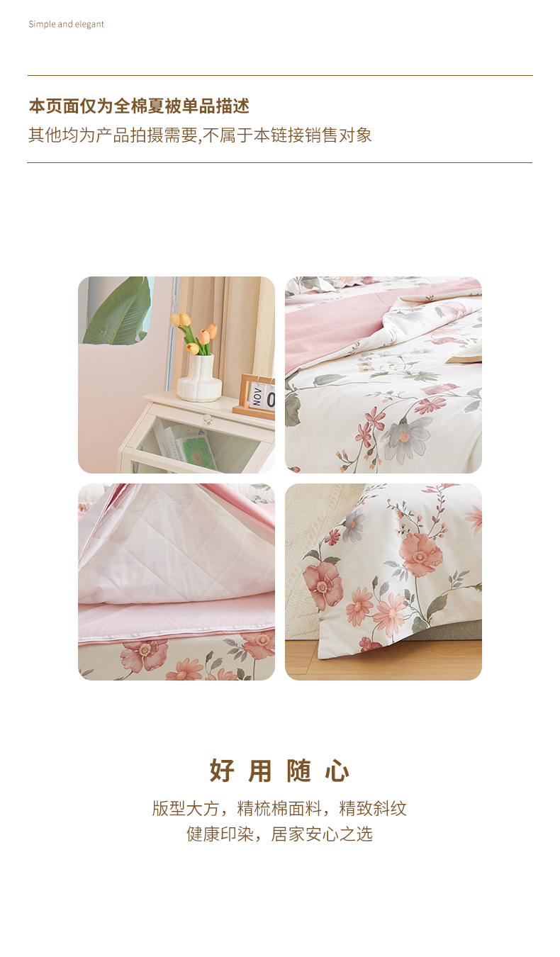 商品名称:元元被芯 2024新款全棉小清新夏被四件套-单夏被 莫兰朵-粉