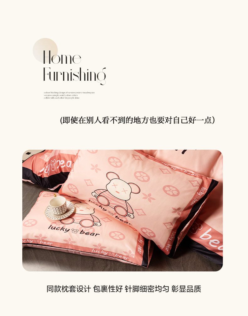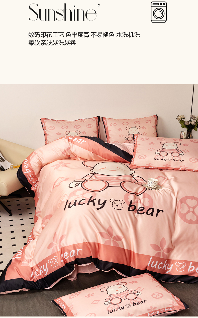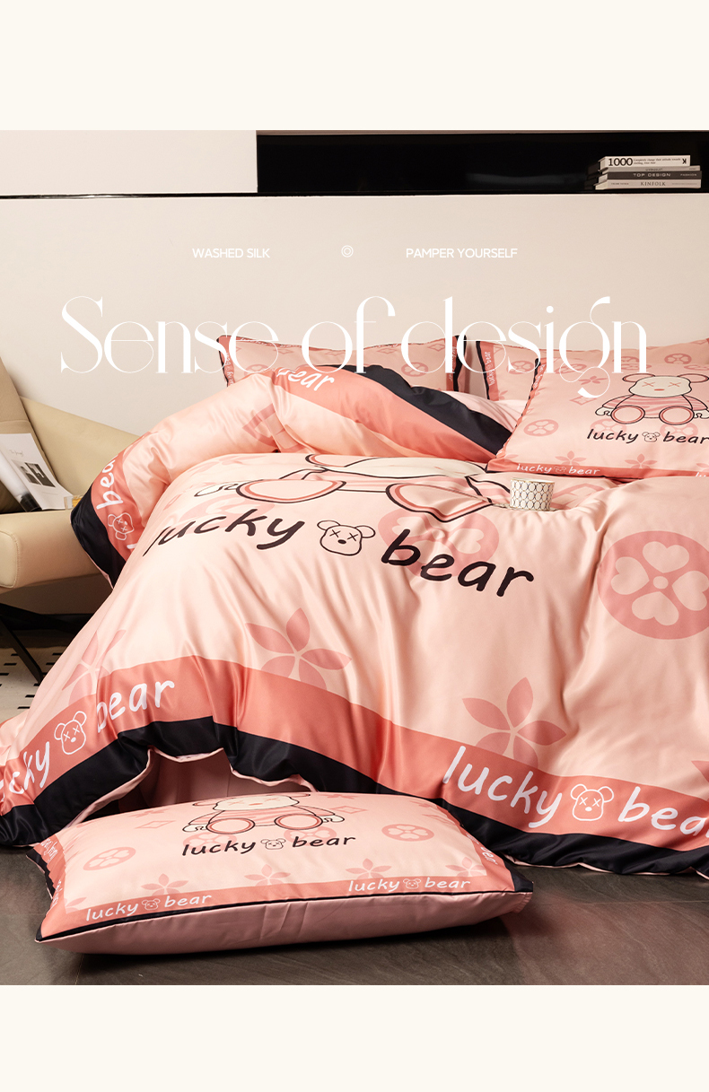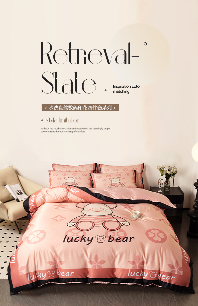 当前位置: 91家纺网 > 商品网购 > 床品套件 > 四件套 > 水洗真丝四件套 > 色鬼布艺 2024新款博主风水洗真丝四件套大牌风四件套 蜜桃熊