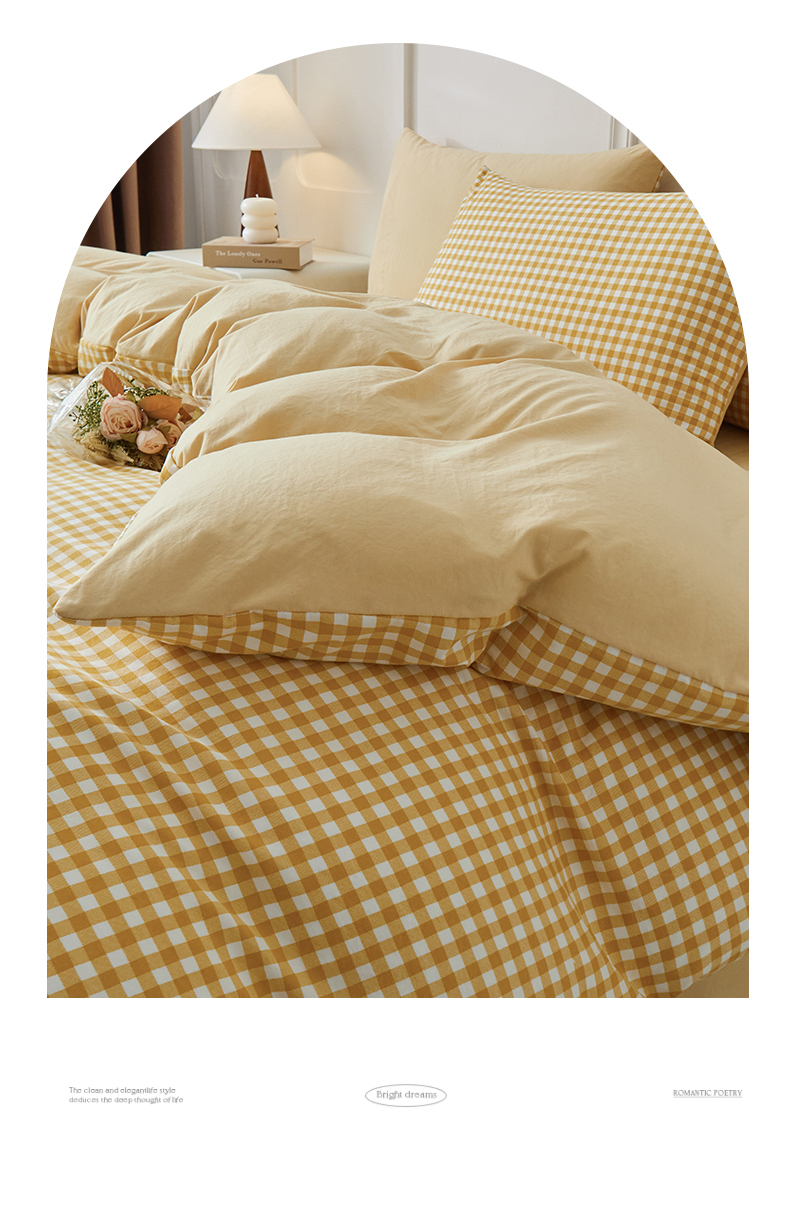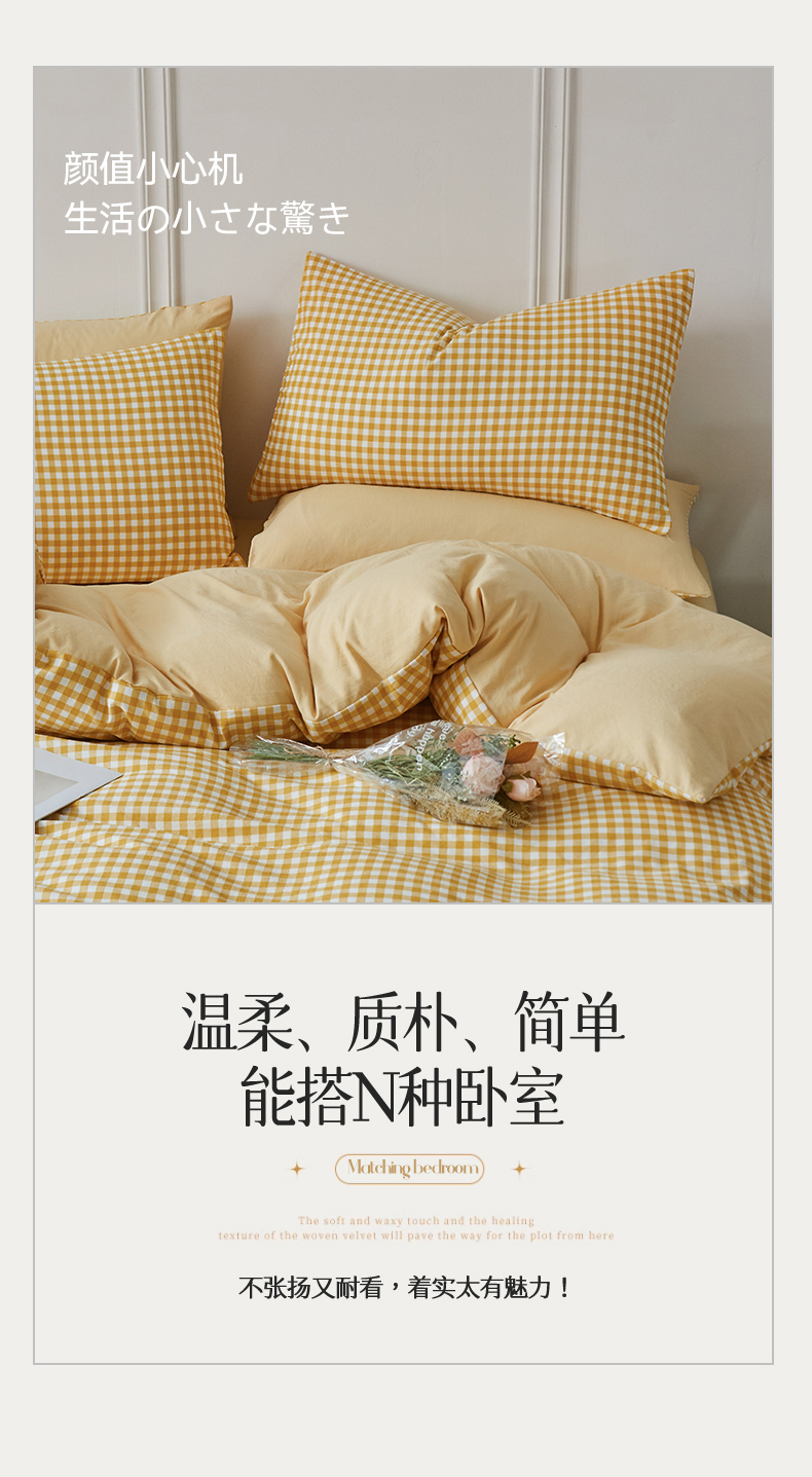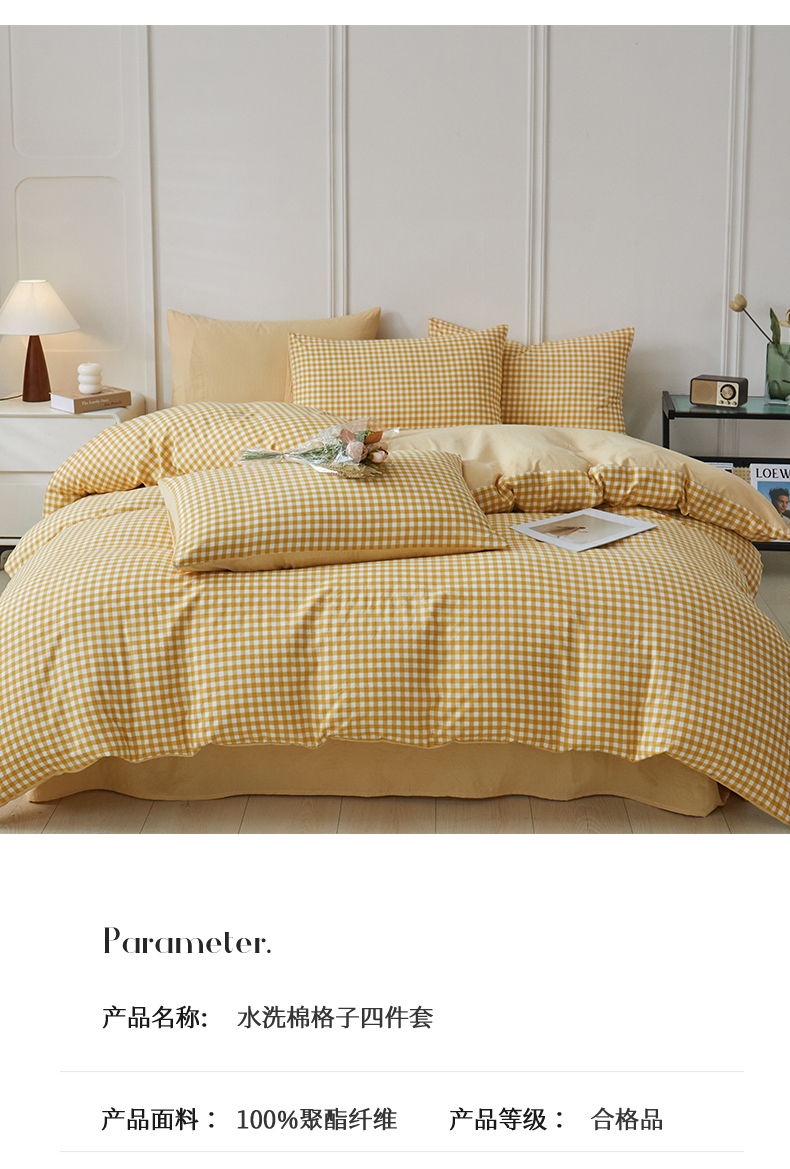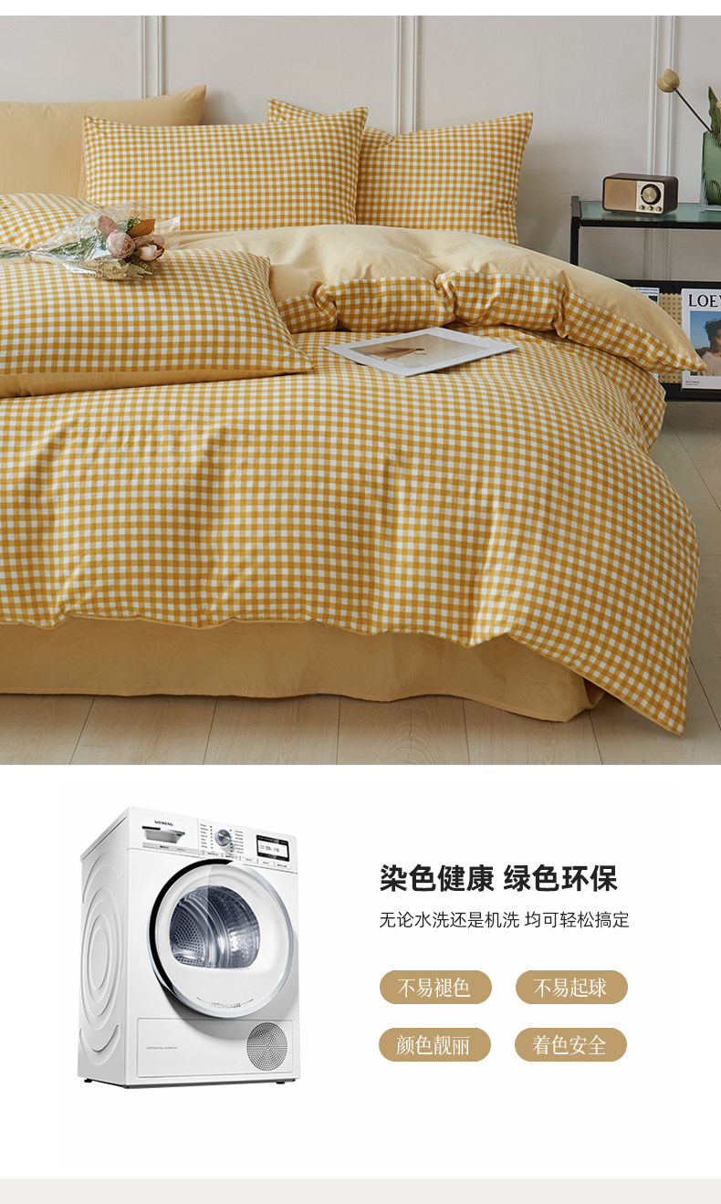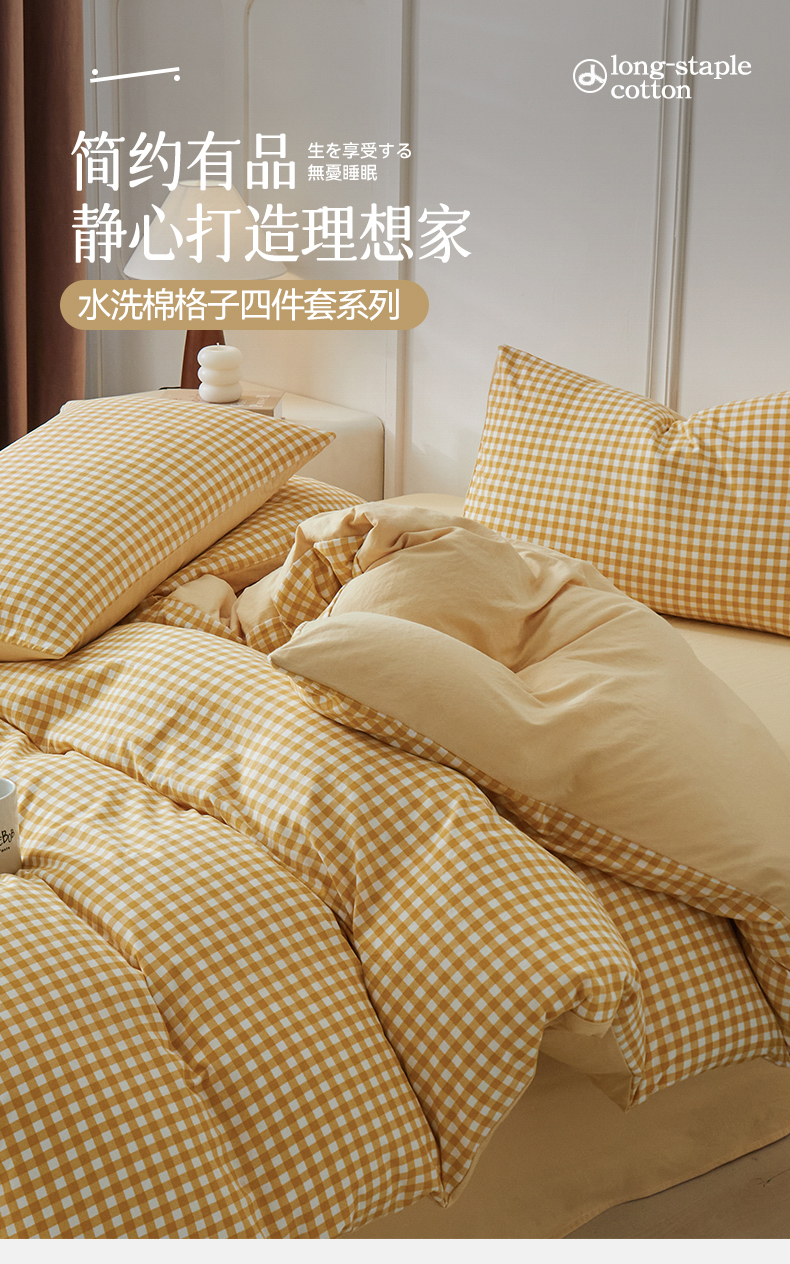 当前位置: 91家纺网 > 商品网购 > 床品套件 > 四件套 > 水洗棉四件套 > 盛秋家纺 2025新款水洗棉格子系列四件套 黄小格+云初黄