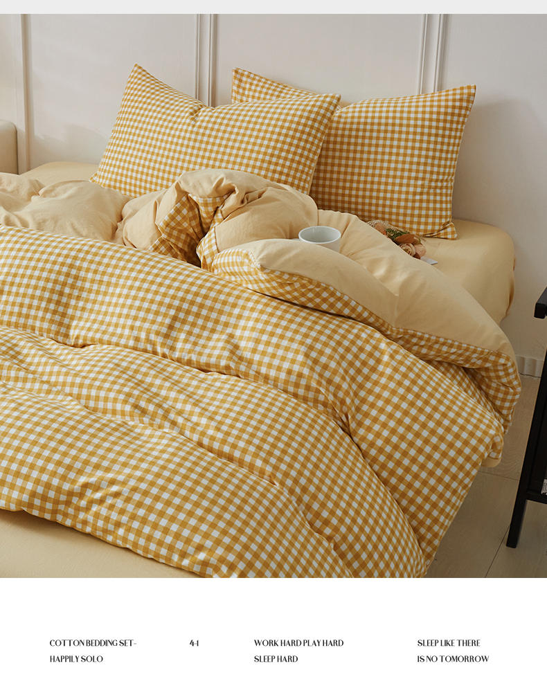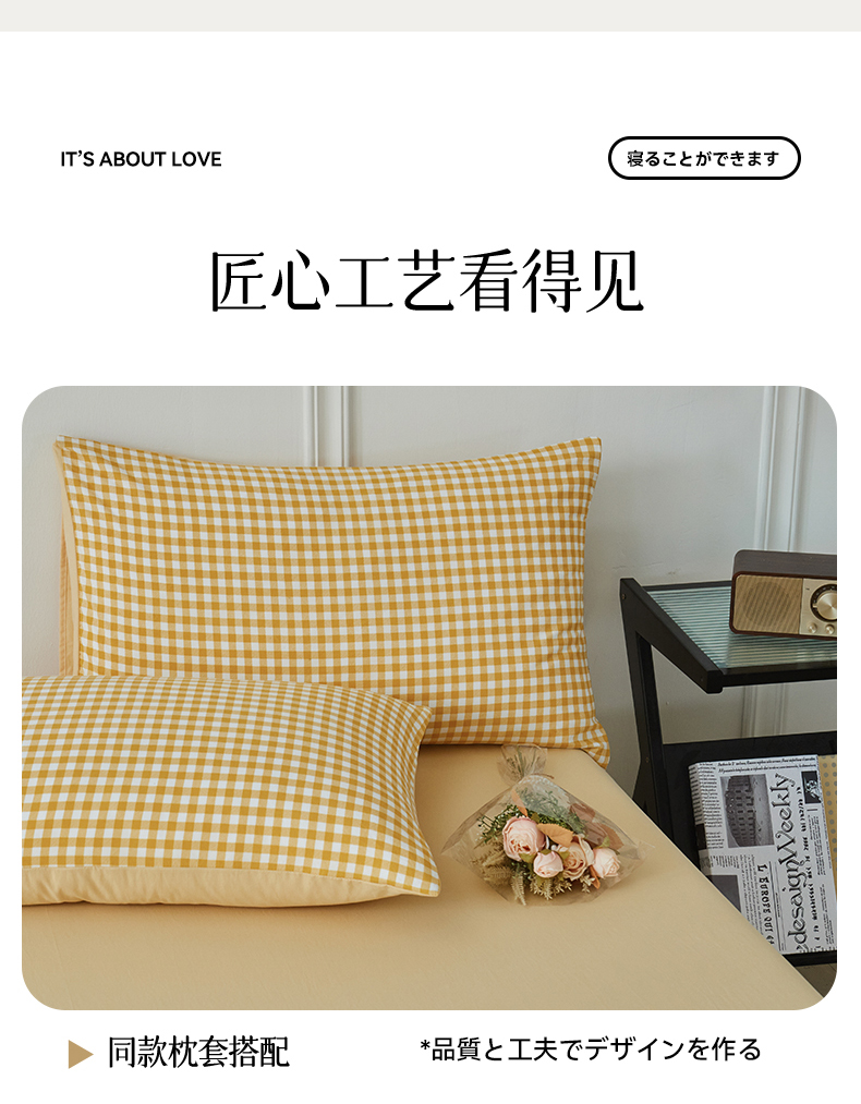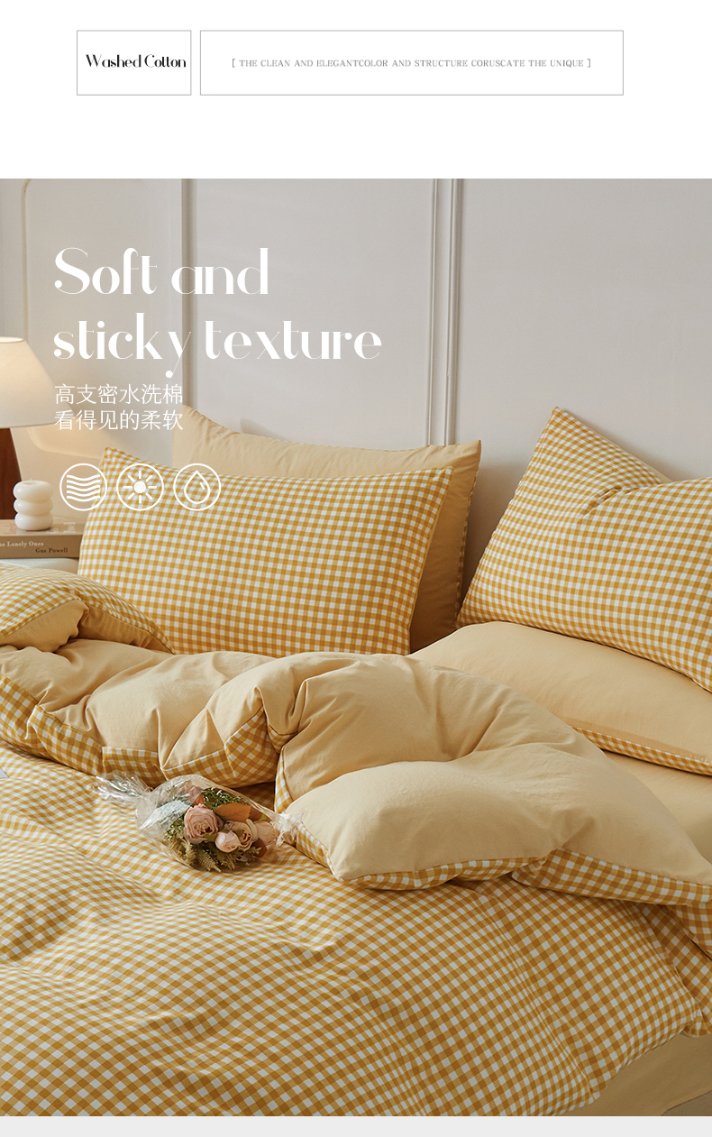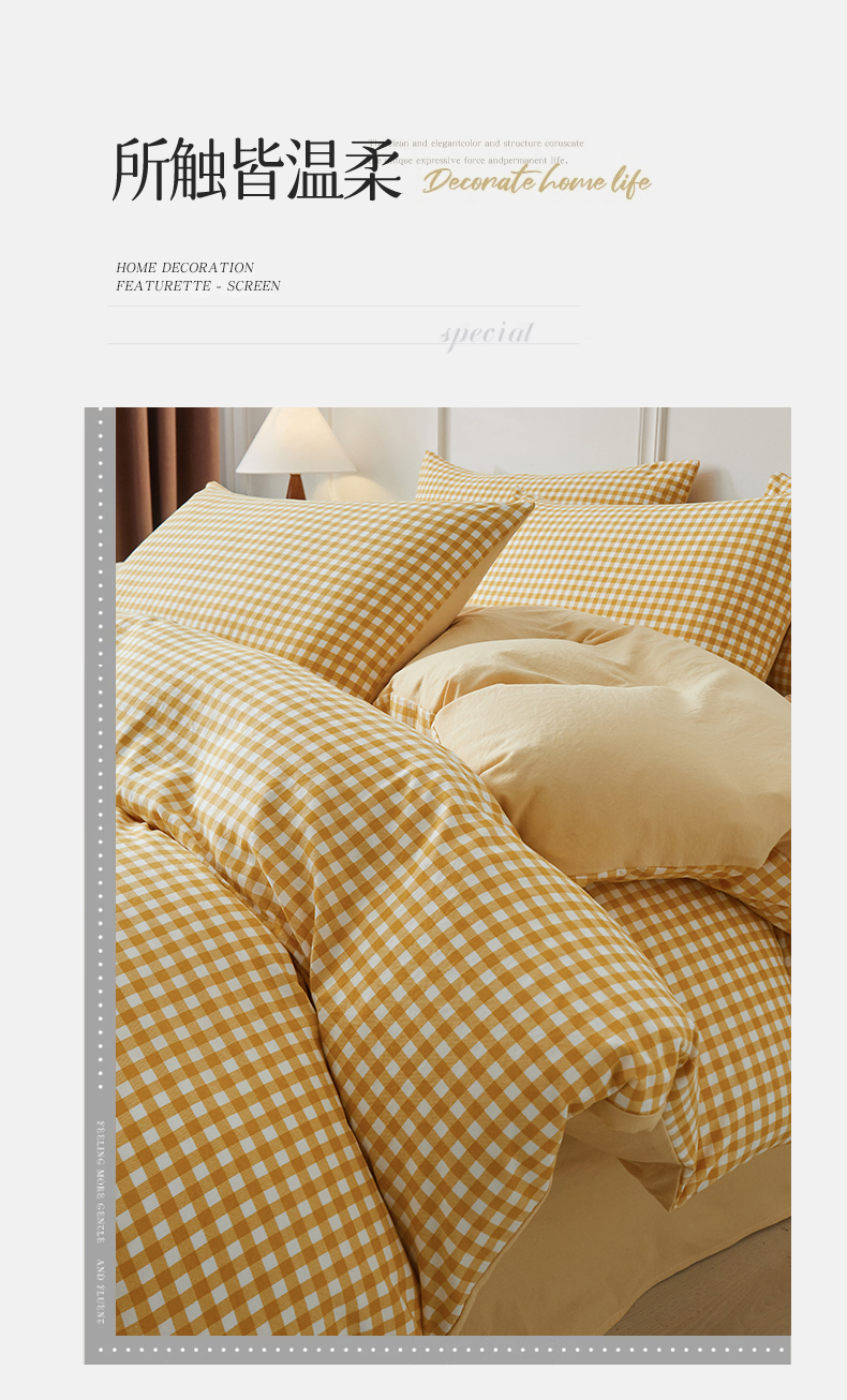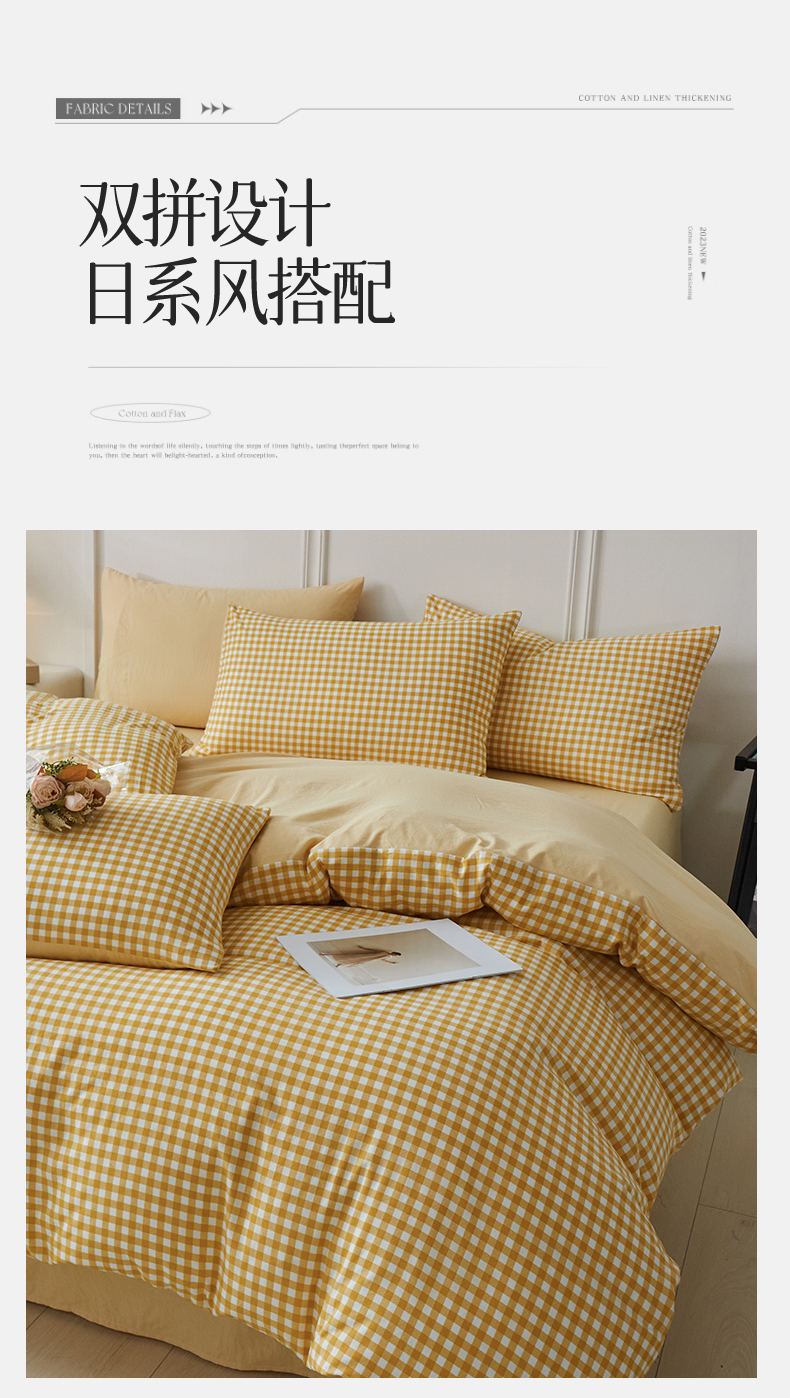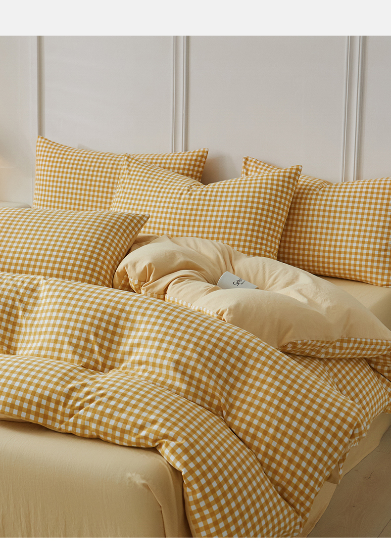 当前位置: 91家纺网 > 商品网购 > 床品套件 > 四件套 > 水洗棉四件套 > 盛秋家纺 2025新款水洗棉格子系列四件套 黄小格+云初黄