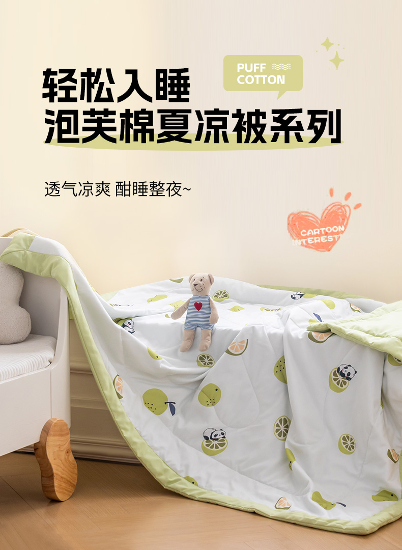 商品名称:嗨生活 2025新款水洗棉手包边幼儿园儿童夏被(爆款)幸运熊猫