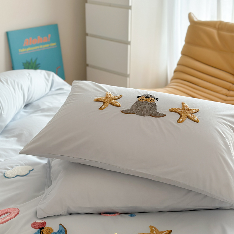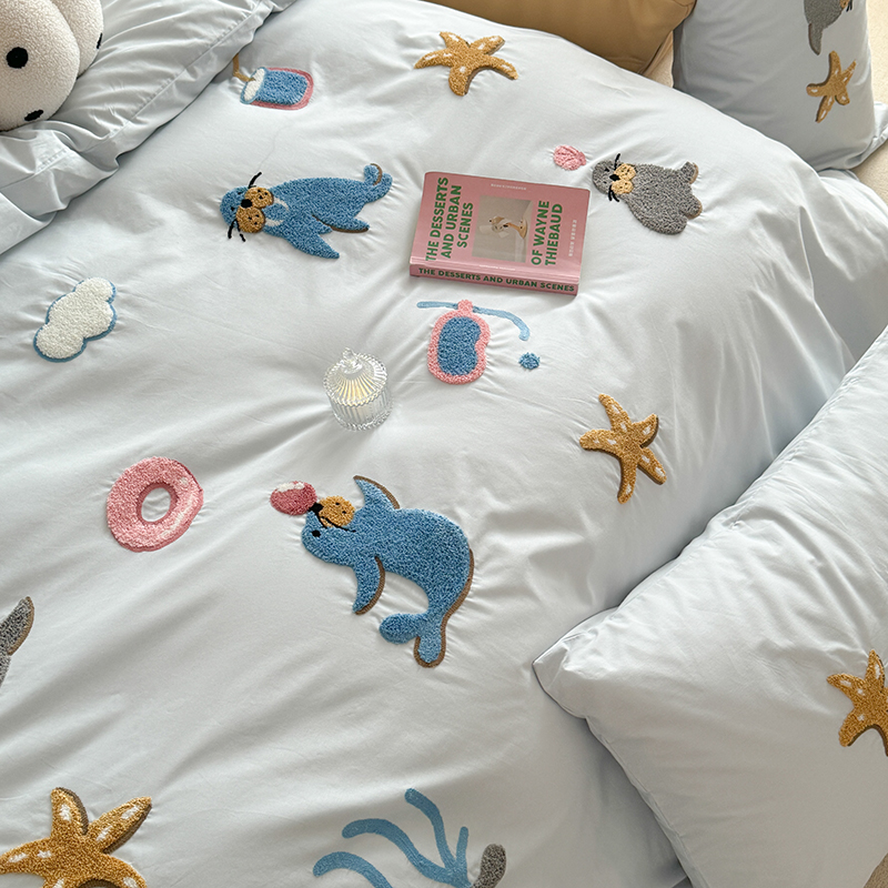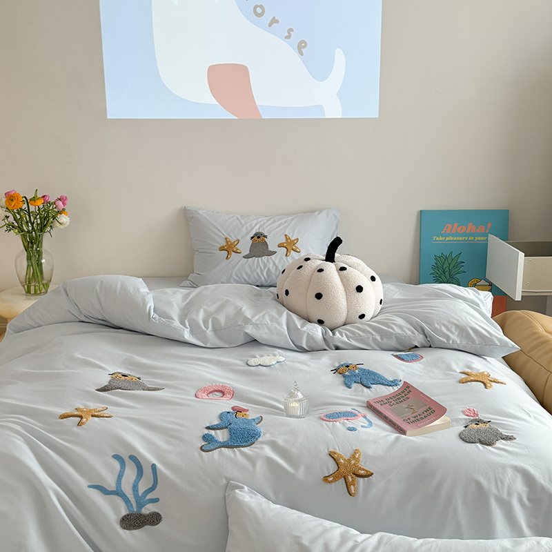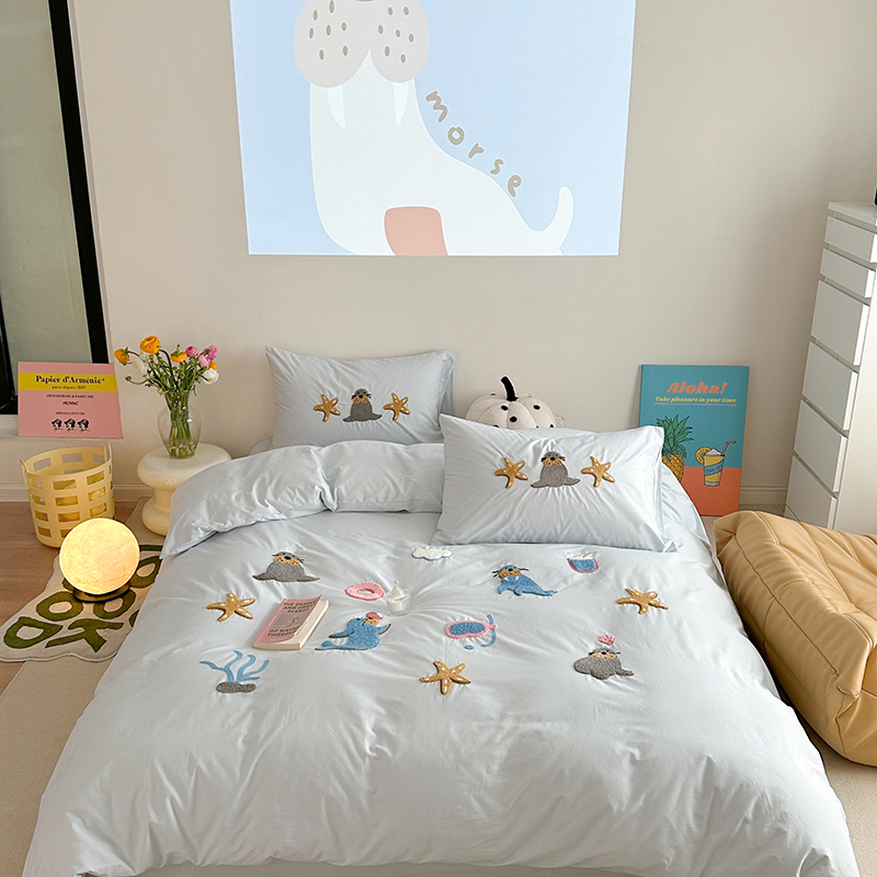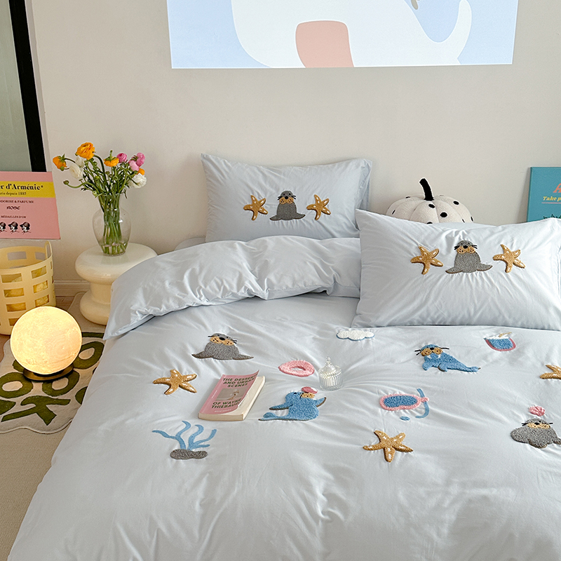 商品名称:柚子YOUTH 2024新款全棉水洗棉毛巾绣散排卡通系列四件套 海狮