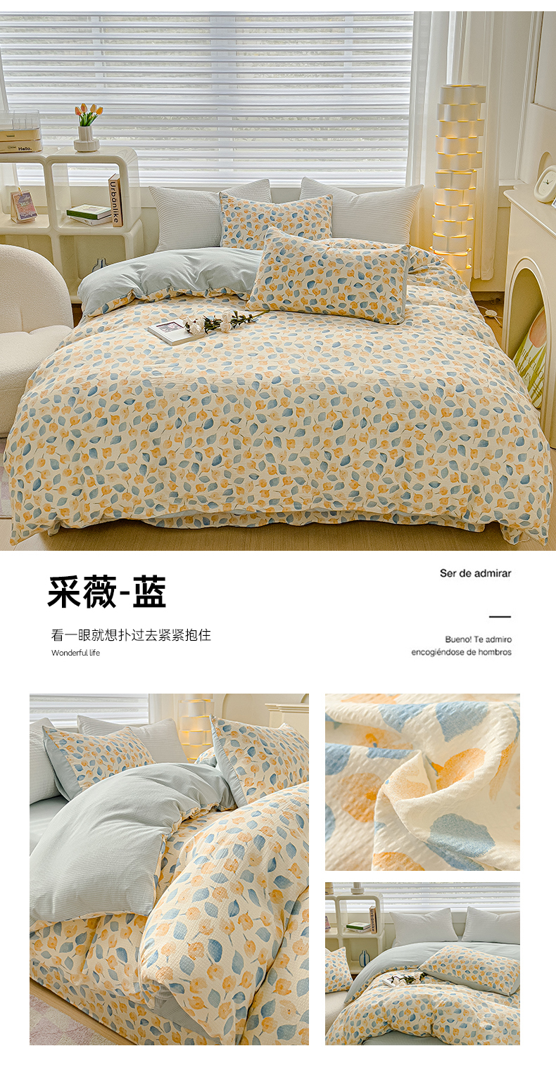 商品名称:可思家纺 2024新款A类水洗泡芙棉泡泡纱四件套 采薇-蓝