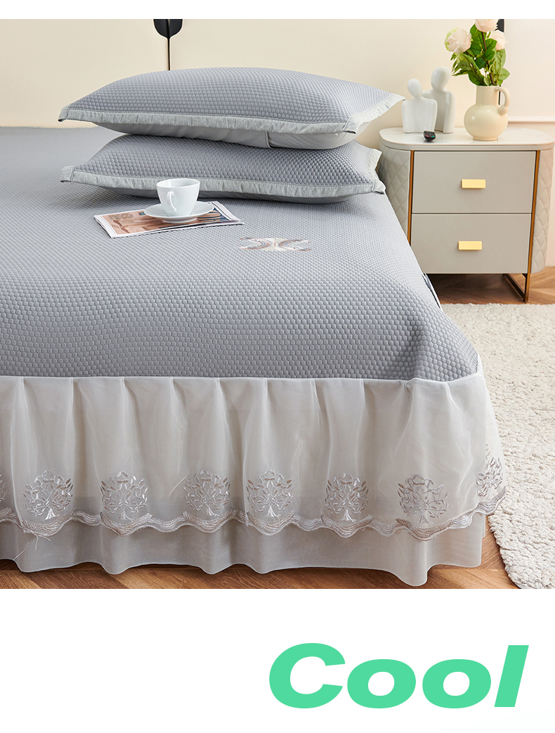 商品名称:宜派家纺 2024新款雪花冷感席三件套床单式床裙款 凤尾-灰