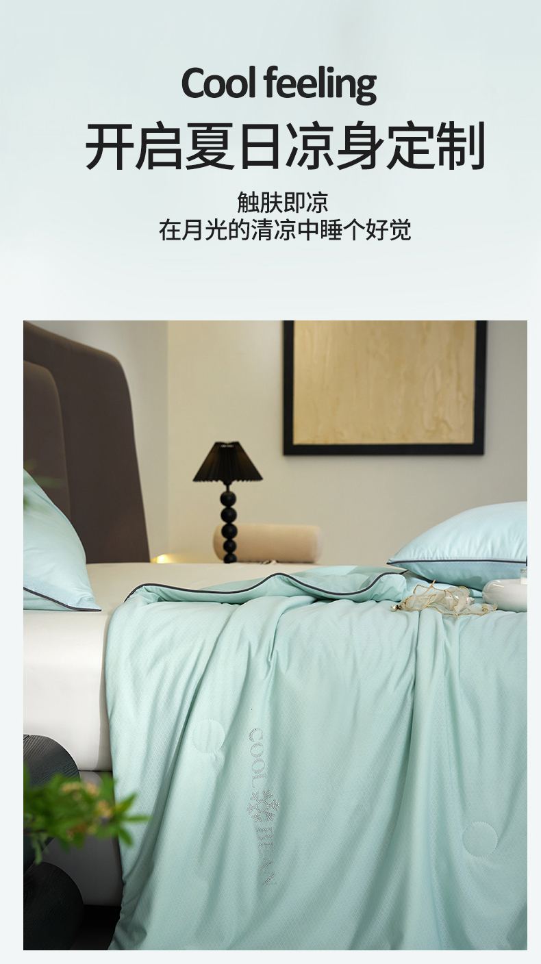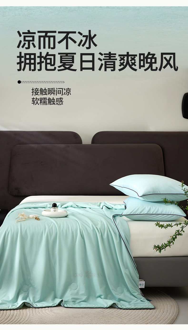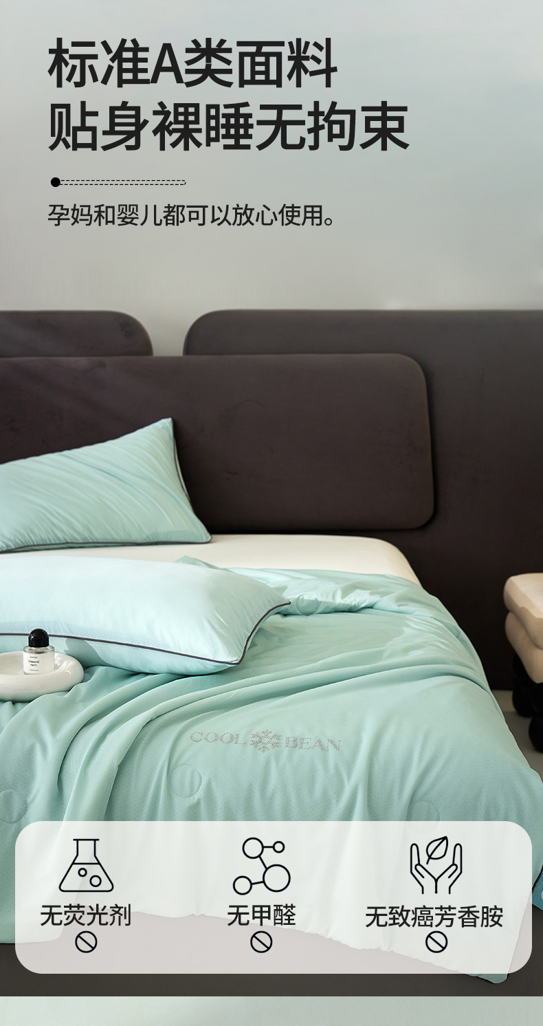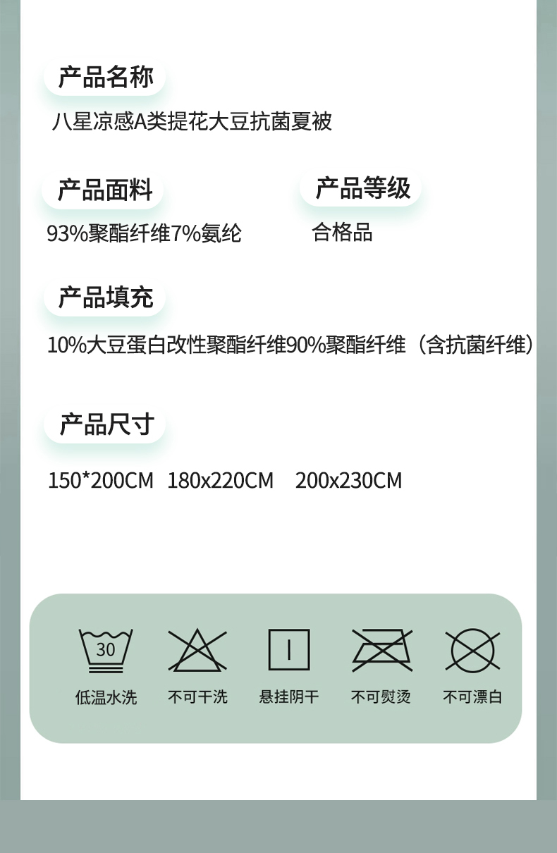 商品名称:头等舱 2025新款八星凉感A类提花大豆抗菌夏被 果绿