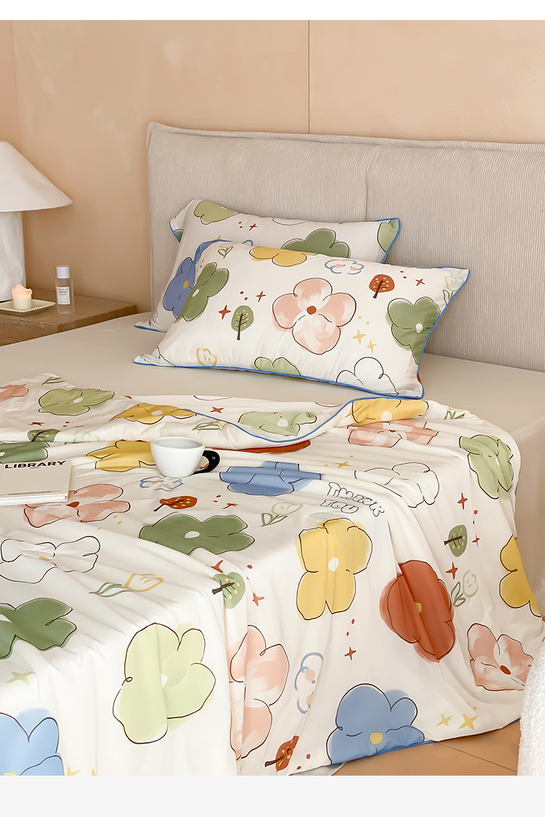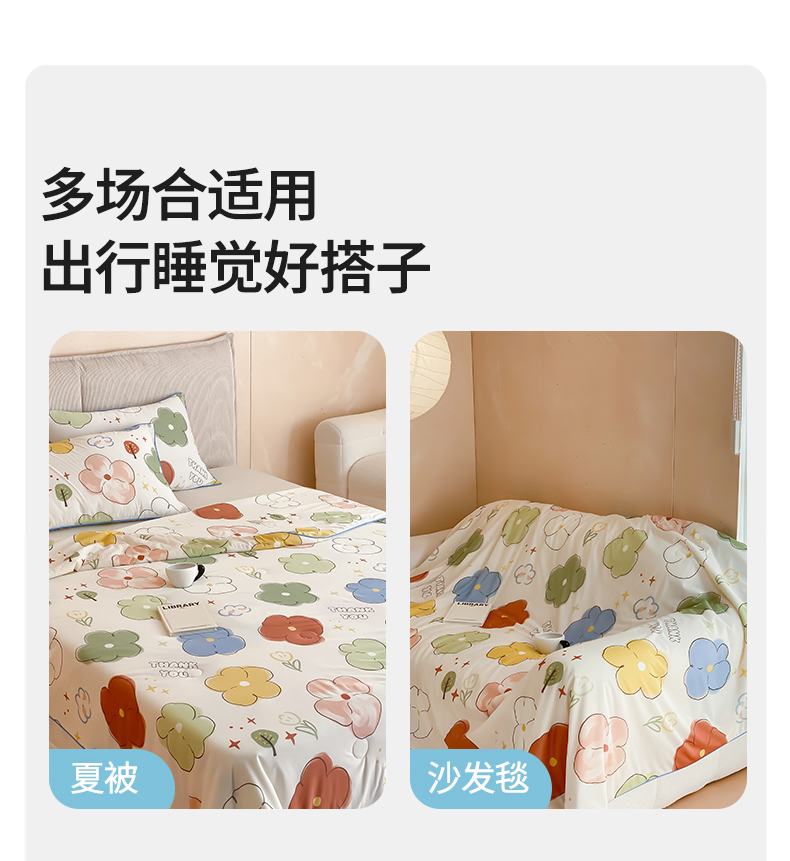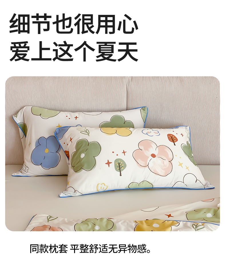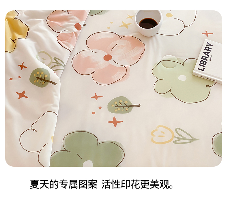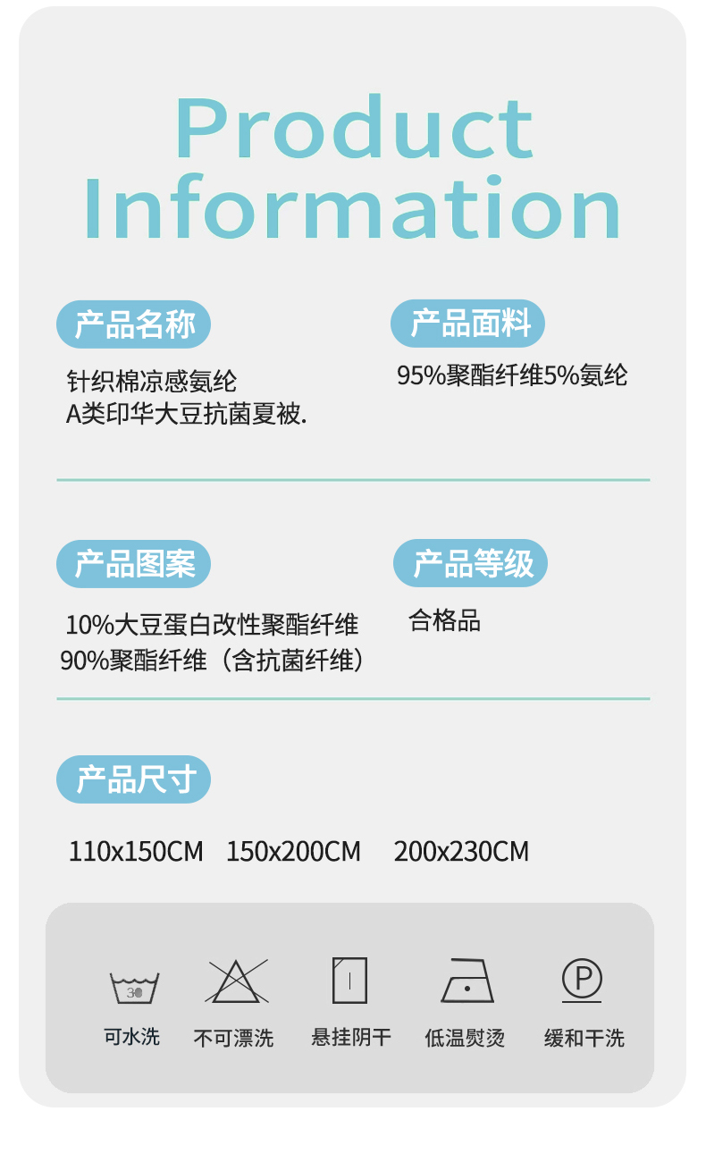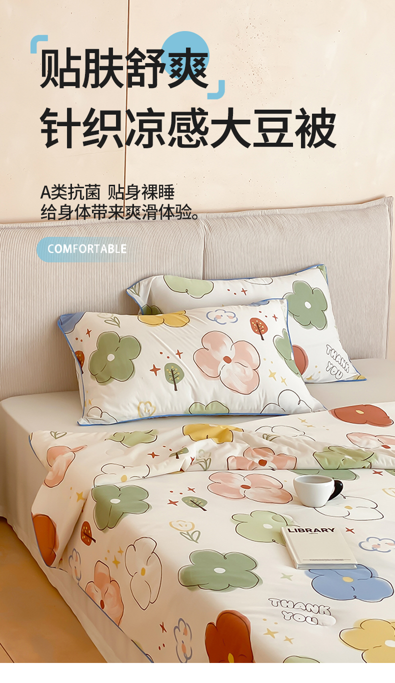商品名称:头等舱 2026新款针织棉凉感氨纶A类印华大豆抗菌夏被 夏日心情