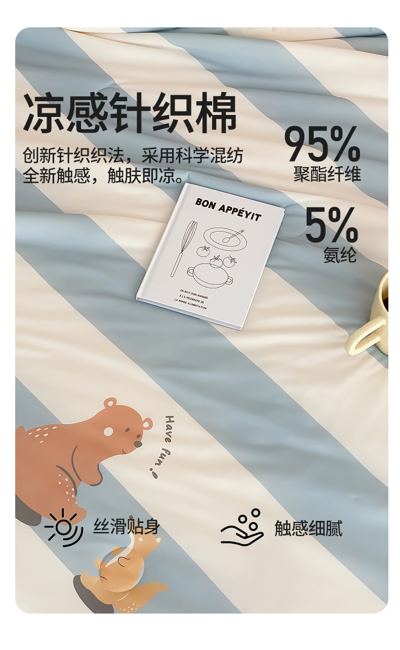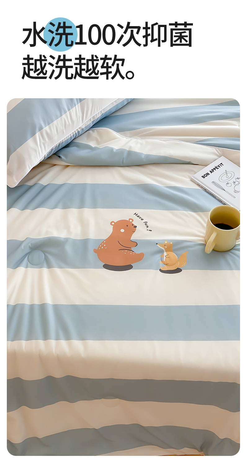 商品名称:头等舱 2025新款针织棉凉感氨纶A类印华大豆抗菌夏被 童话熊
