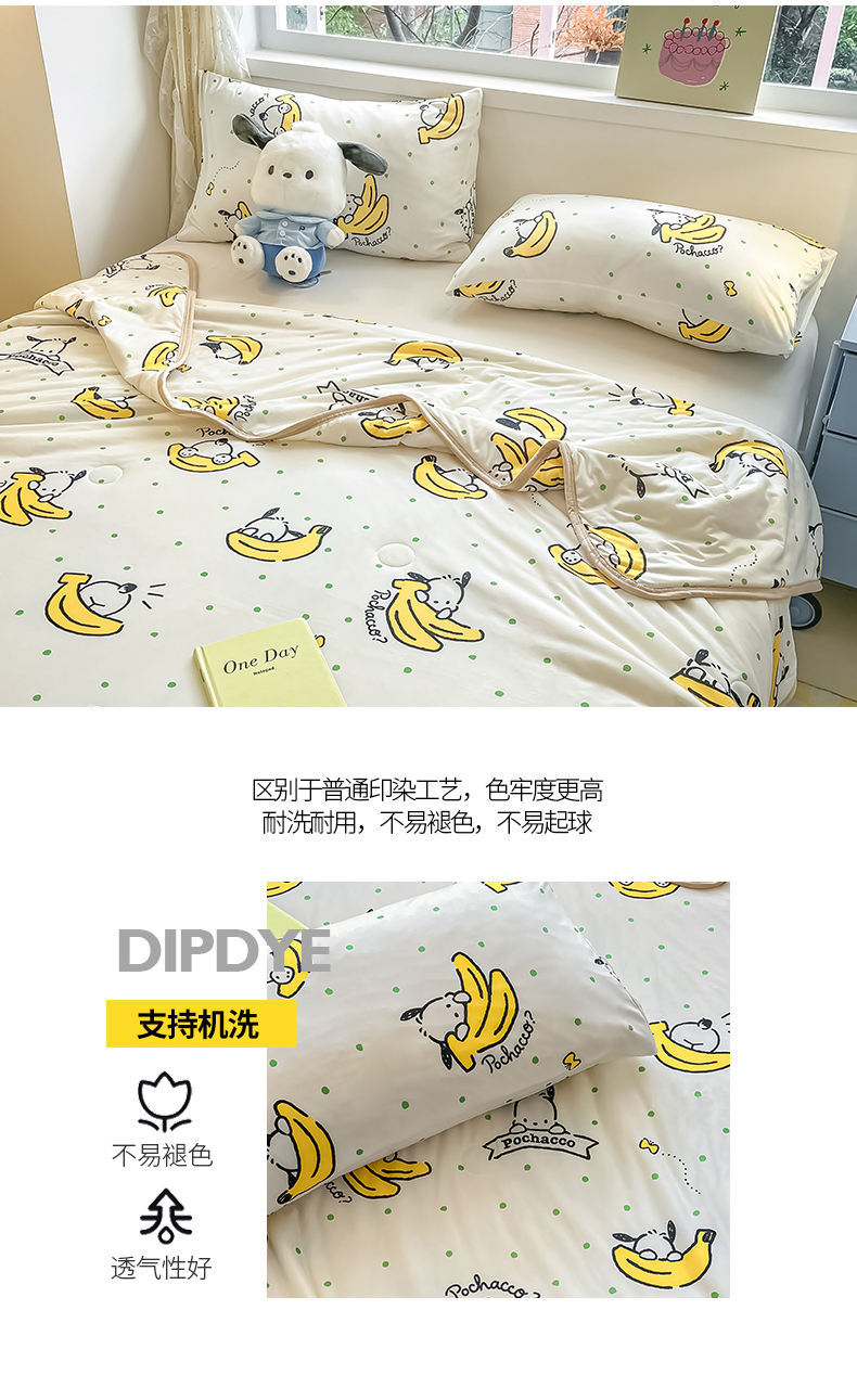 • 91家纺网 家纺一手货源 找家纺 桃子家居 2024新款A类三丽鸥正版授权高品质牛奶丝软糯针织棉夏被系列 针织棉三丽鸥-香蕉多多帕恰狗
