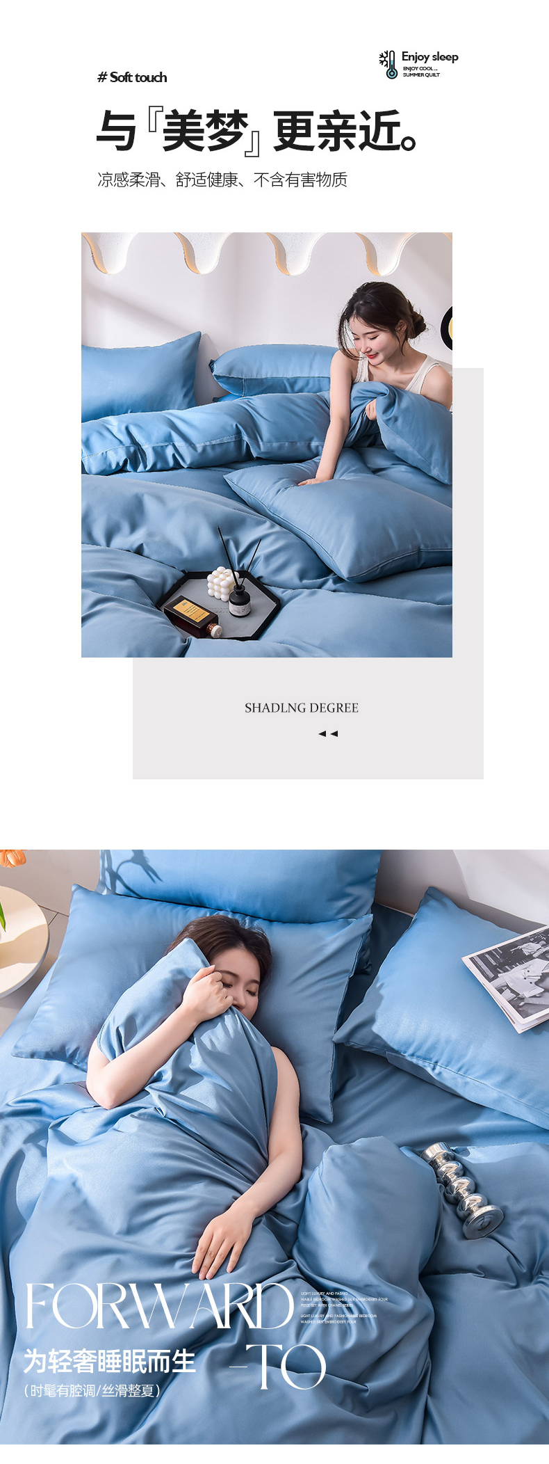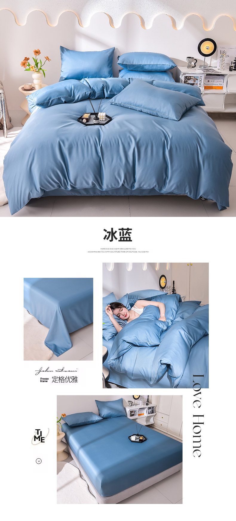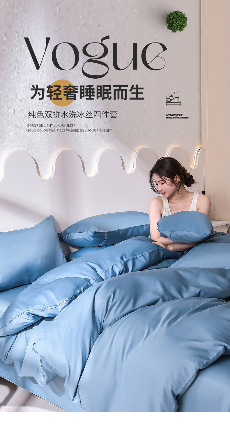 当前位置: 91家纺网 > 商品网购 > 床品套件 > 四件套 > 真丝四件套 > 简爱家纺 2025新款水洗真丝四件套 冰蓝