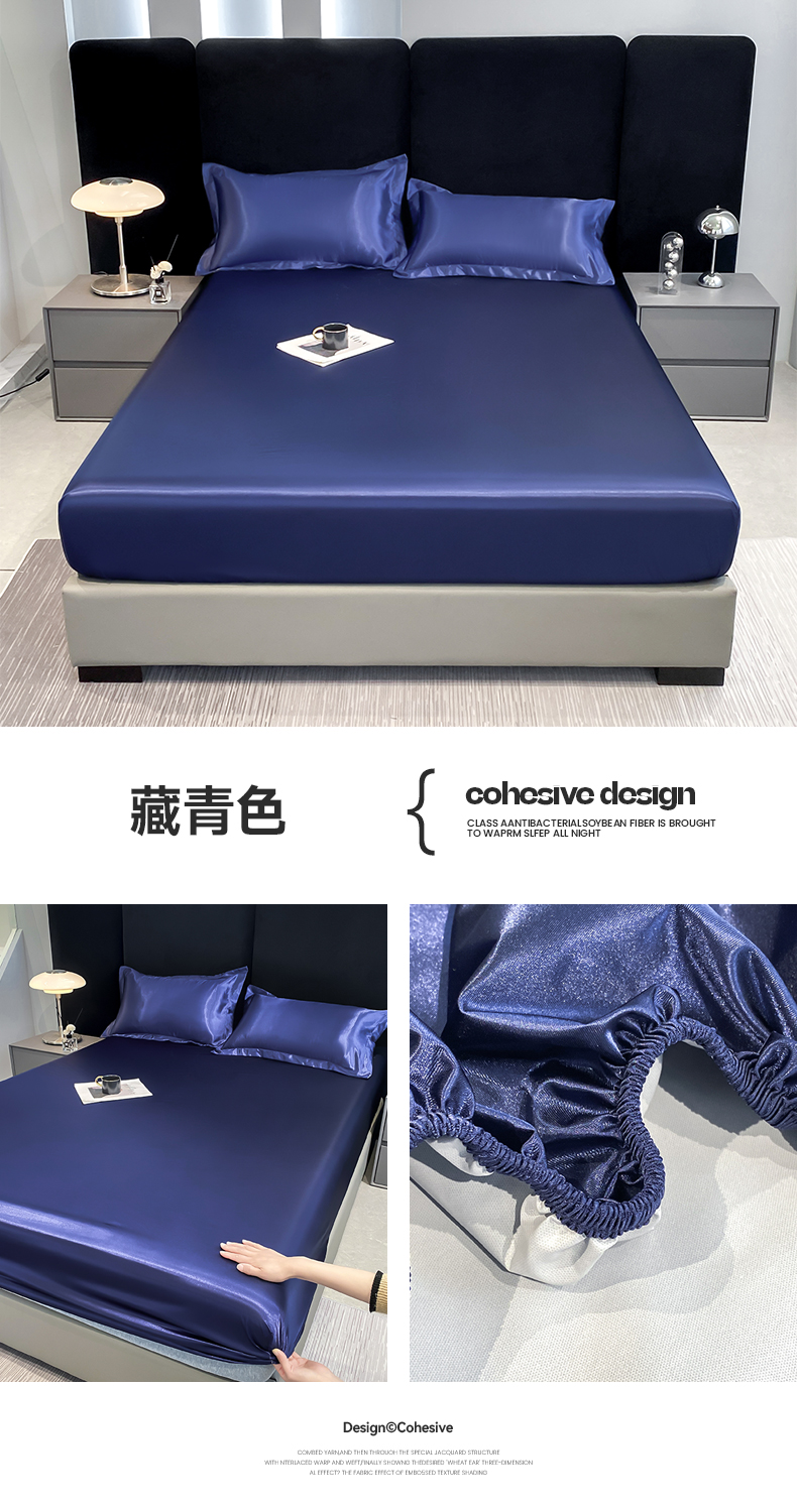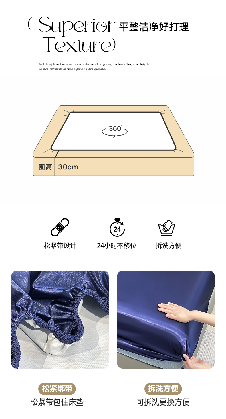 • 91家纺网 家纺一手货源 找家纺 梦尚舒 2025新款水洗真丝防水床笠隔尿床单床垫保护套 藏青色