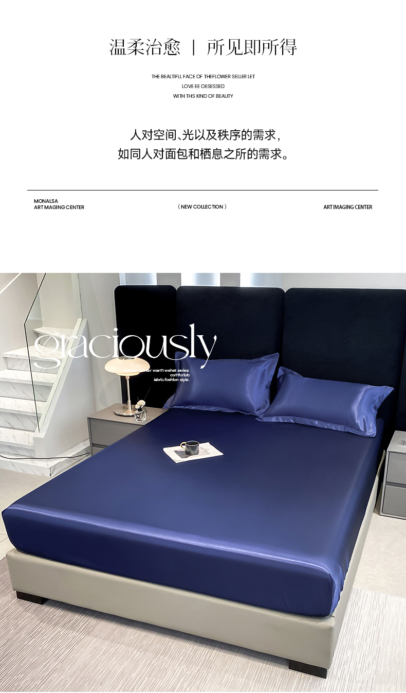 (总)梦尚舒 2025新款水洗真丝防水床笠隔尿床单床垫保护套,巴黎蓝,天之蓝,月光蓝,樱花粉,淡雅玉,玛瑙红,珍珠白,紫罗兰,翡翠绿,胭脂玉,至尊黑,藏青色,银灰色,香槟金